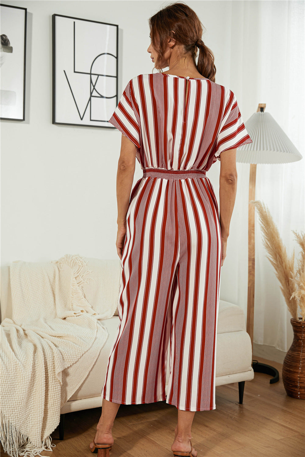 El mono de rayas de Anna-Kaci tiene detalles como escote en V, pernera ancha, mangas cortas y lindas líneas verticales por todas partes. Tiene rayas alternas y dobladillo hasta la pantorrilla. Es increíblemente lindo y está hecho con 100 % poliéster suave, liviano y apto para usar a diario bajo el sol. Consigue ese look moderno y contemporáneo. Combínalo fácilmente con una chaqueta o un cárdigan durante la primavera y solo durante el verano.