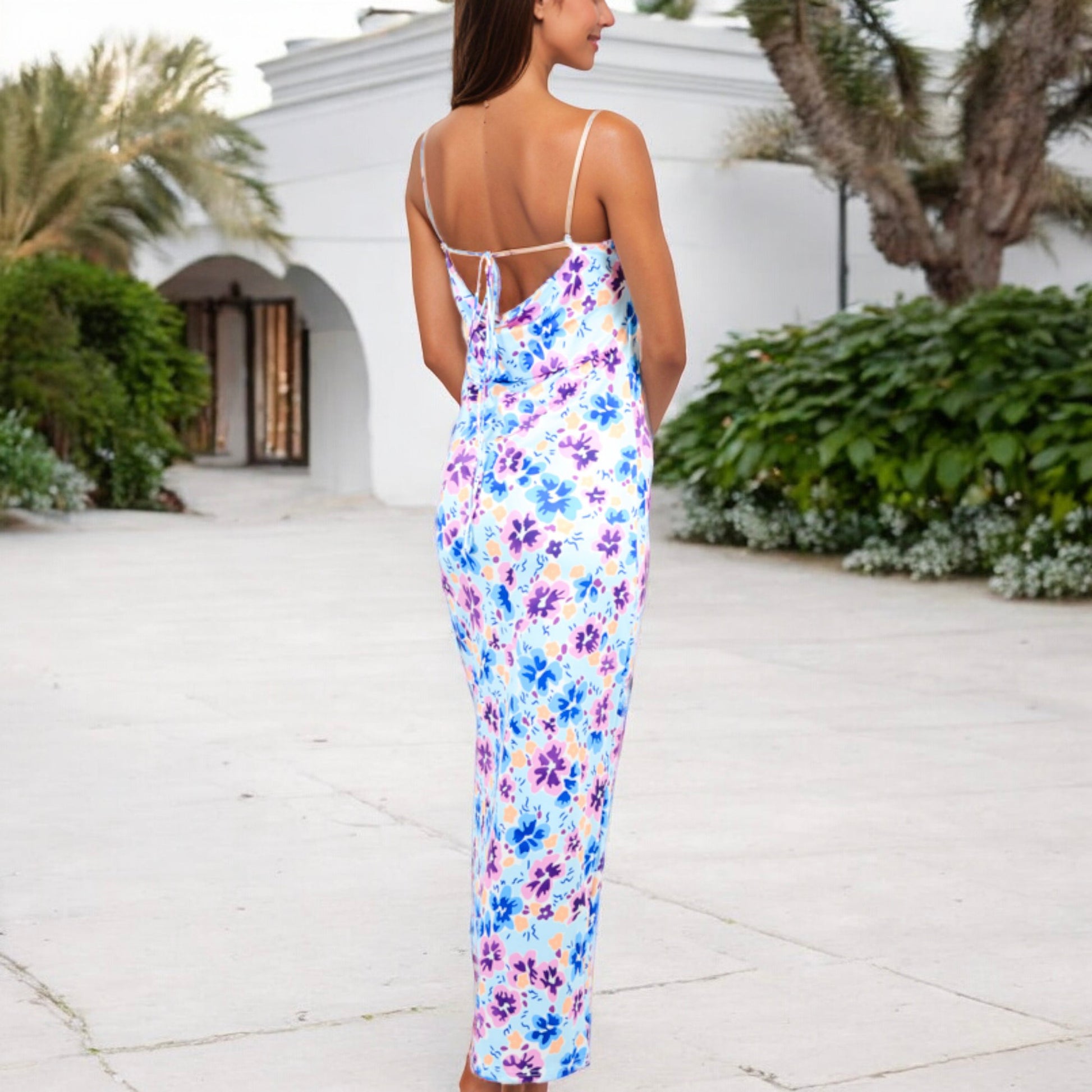 The Anna-Kaci Women's Floral Print Spaghetti Strap Maxi Dress is the perfect blend of elegance and comfort, making it a must-have for warm-weather occasions. This stunning maxi dress features a vibrant floral print that exudes feminine charm, while the spaghetti straps and open back detail add a touch of allure. The flowy silhouette and lightweight fabric ensure all-day comfort, whether you're attending a summer wedding, a garden party, or a beach getaway. Pair it with your favorite sandals or heels for a look that's effortlessly chic.