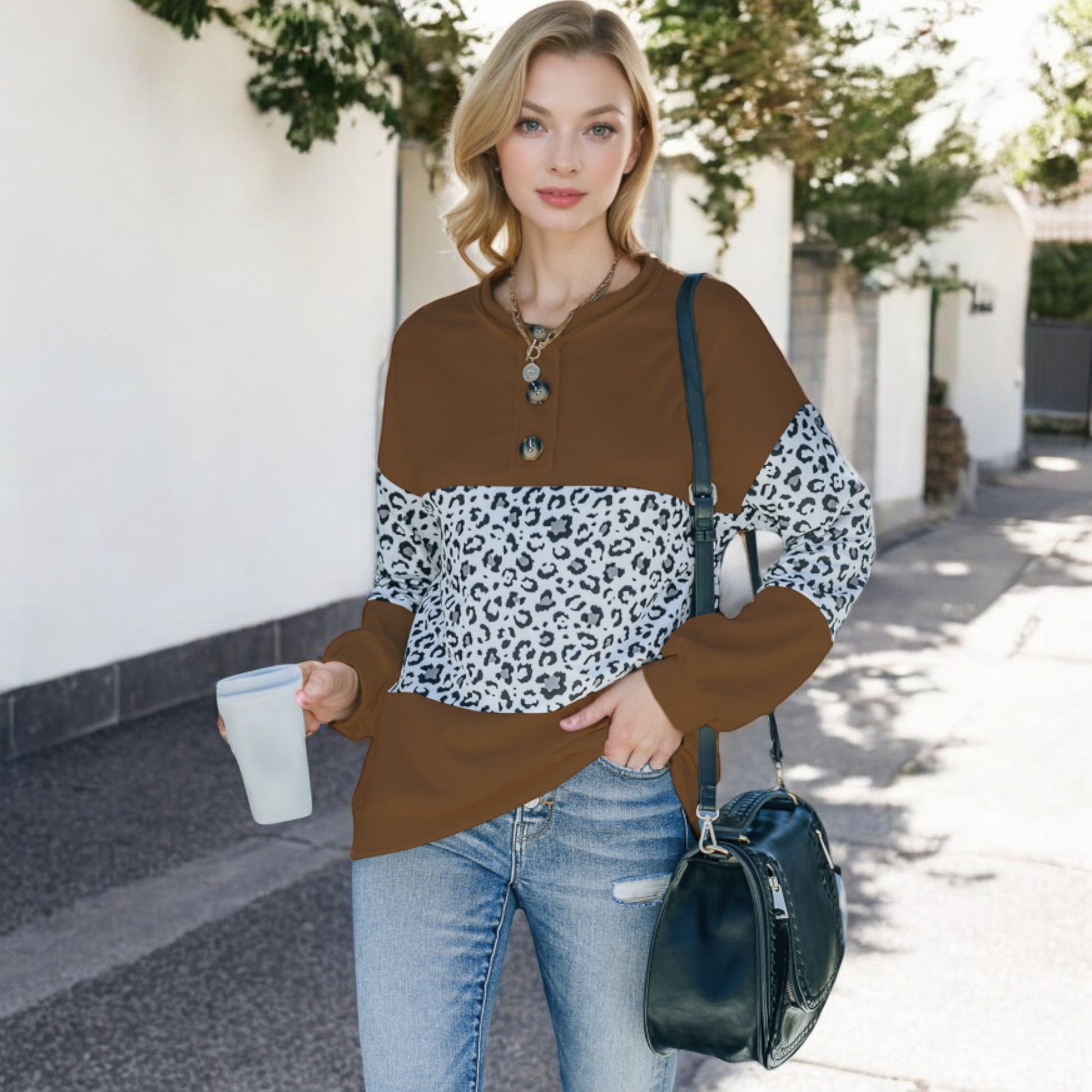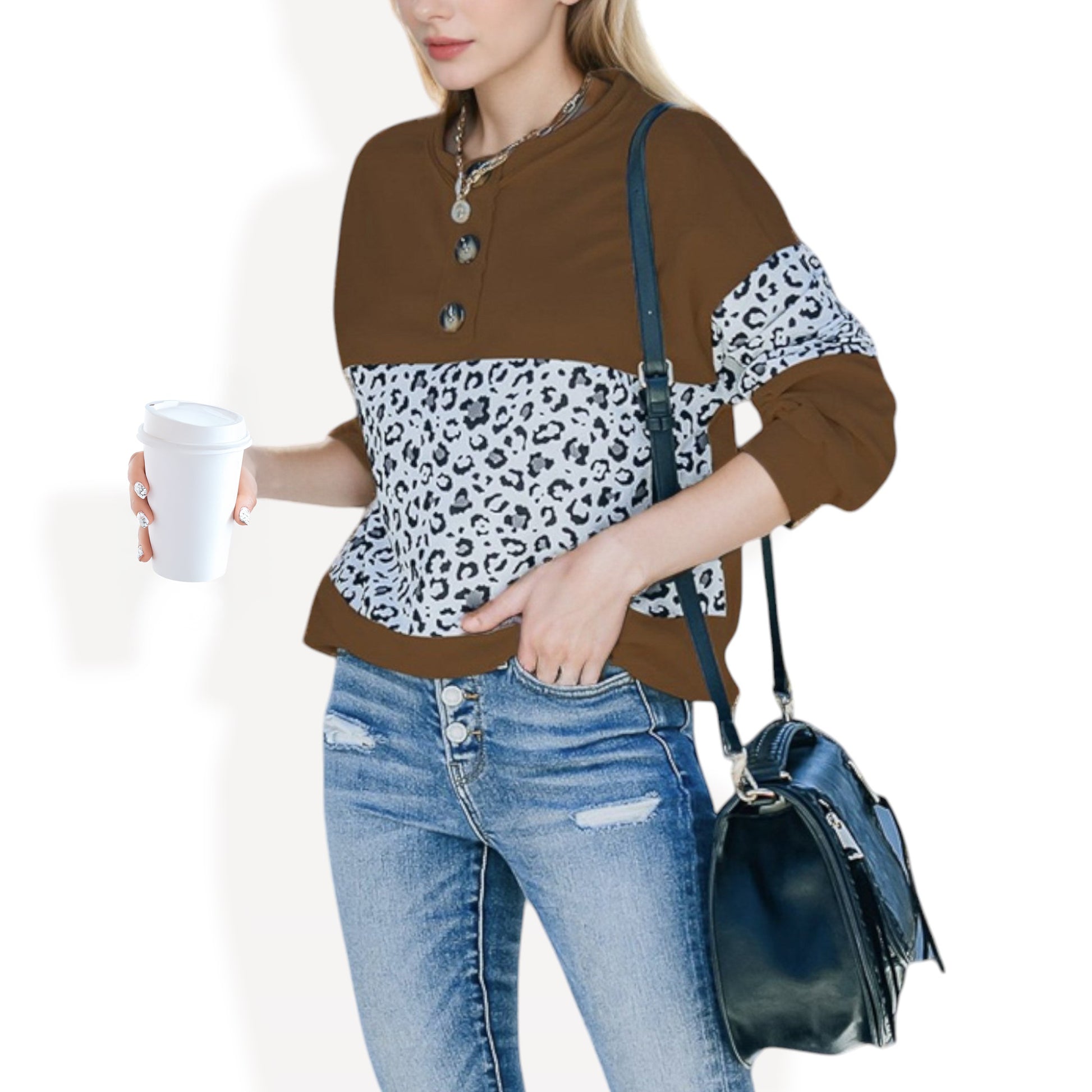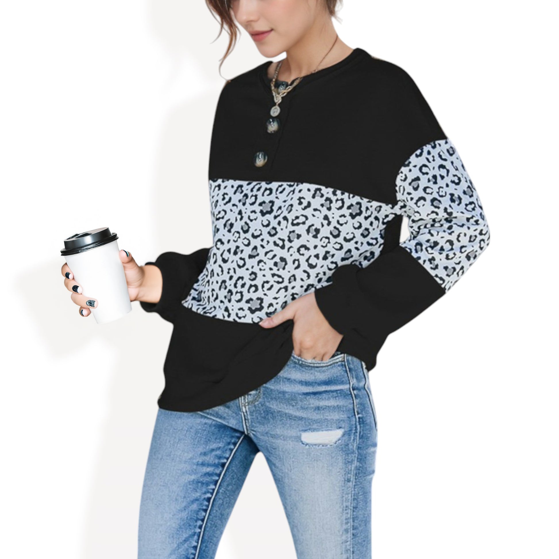 Anna-Kaci Women's Leopard Print Pullover Sweatshirt with Long Sleeves and Ribbed Cuffs