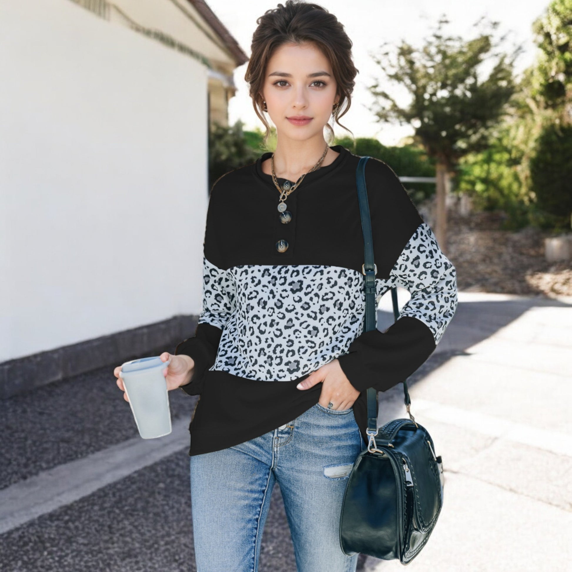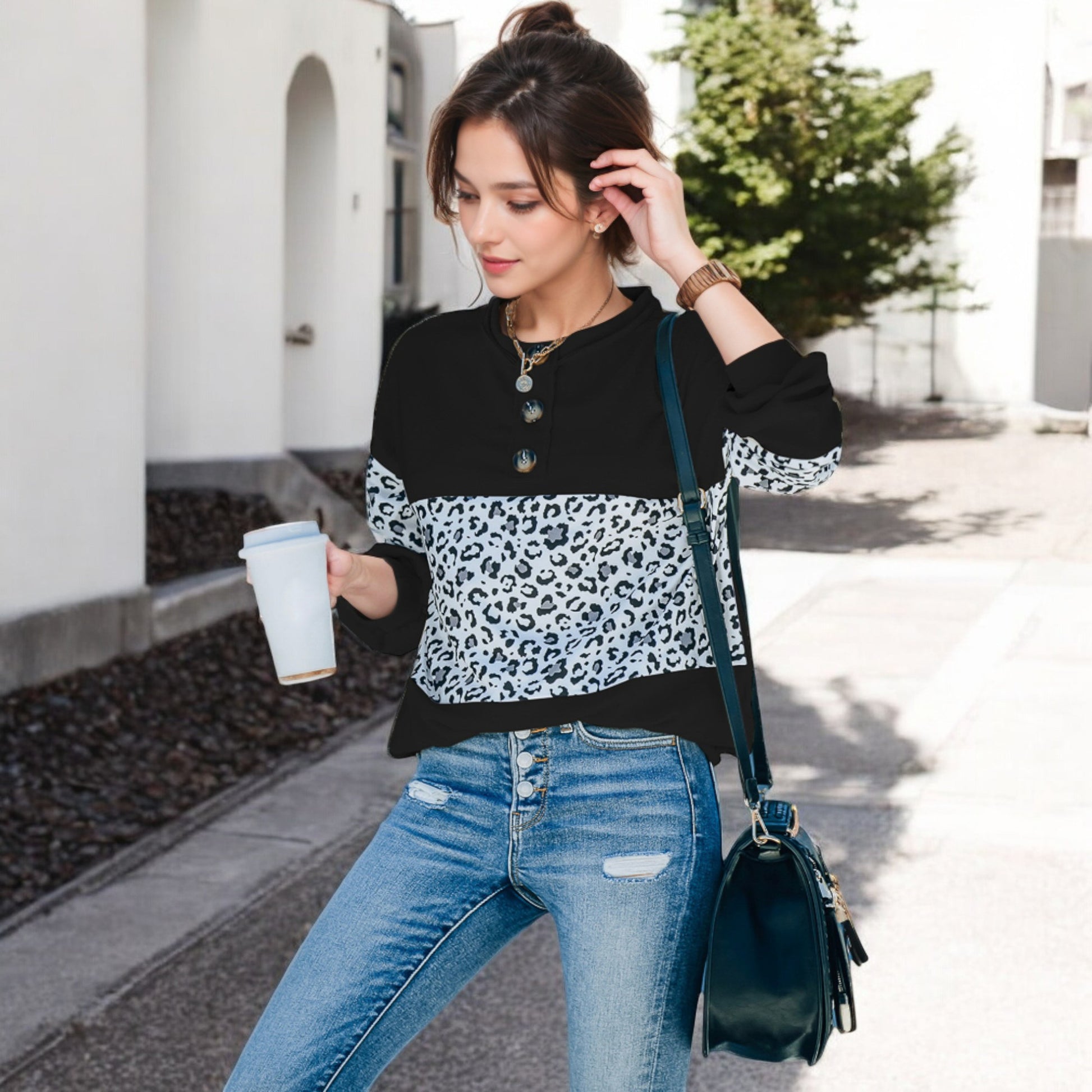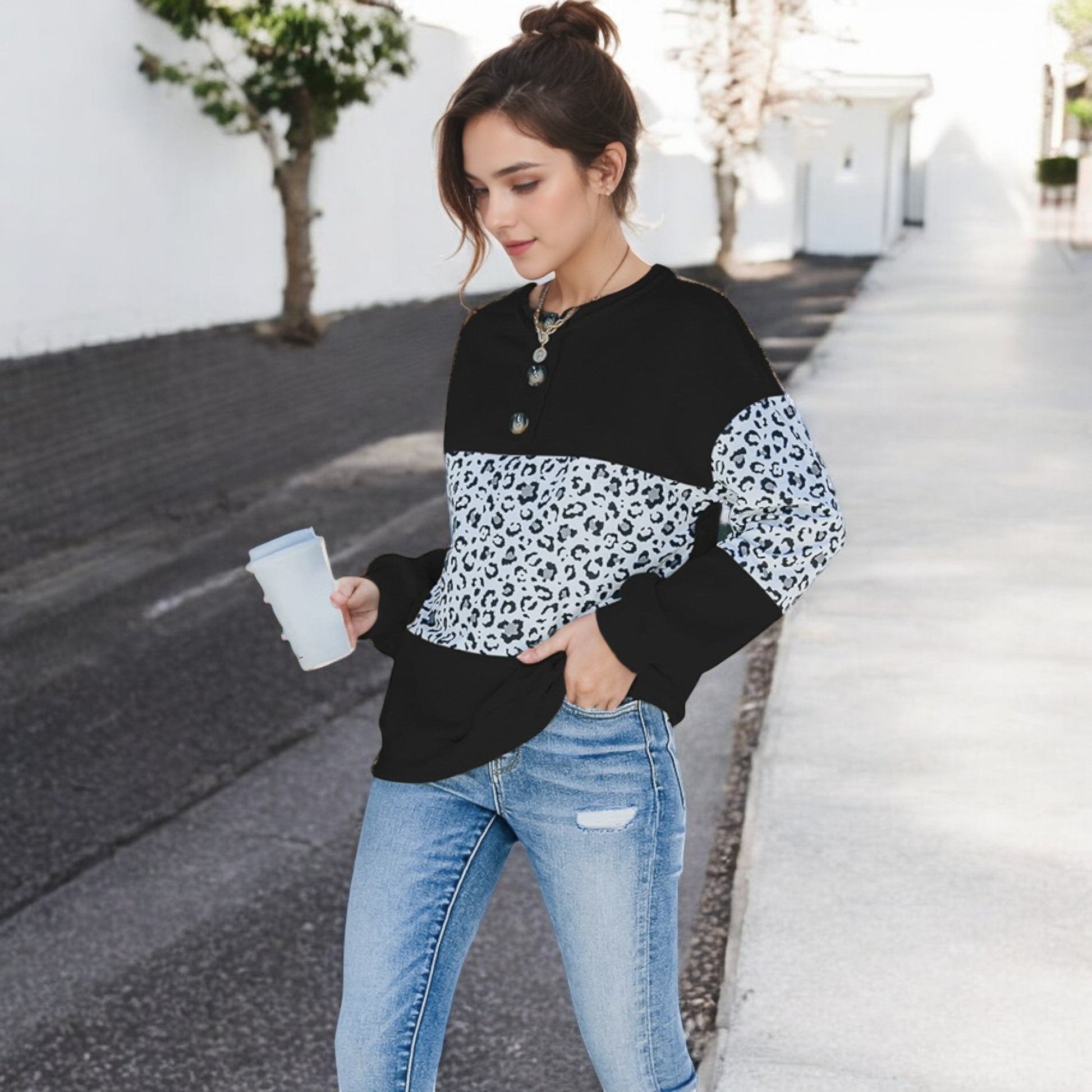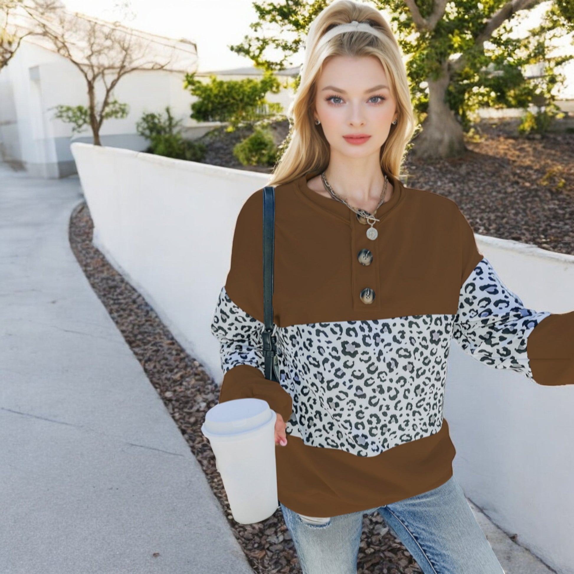 Anna-Kaci Women's Leopard Print Pullover Sweatshirt with Long Sleeves and Ribbed Cuffs