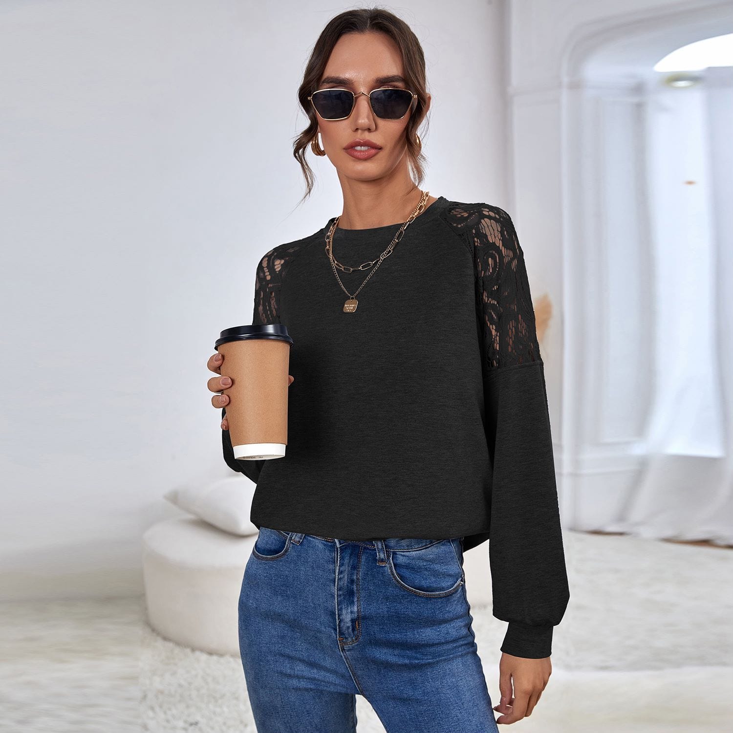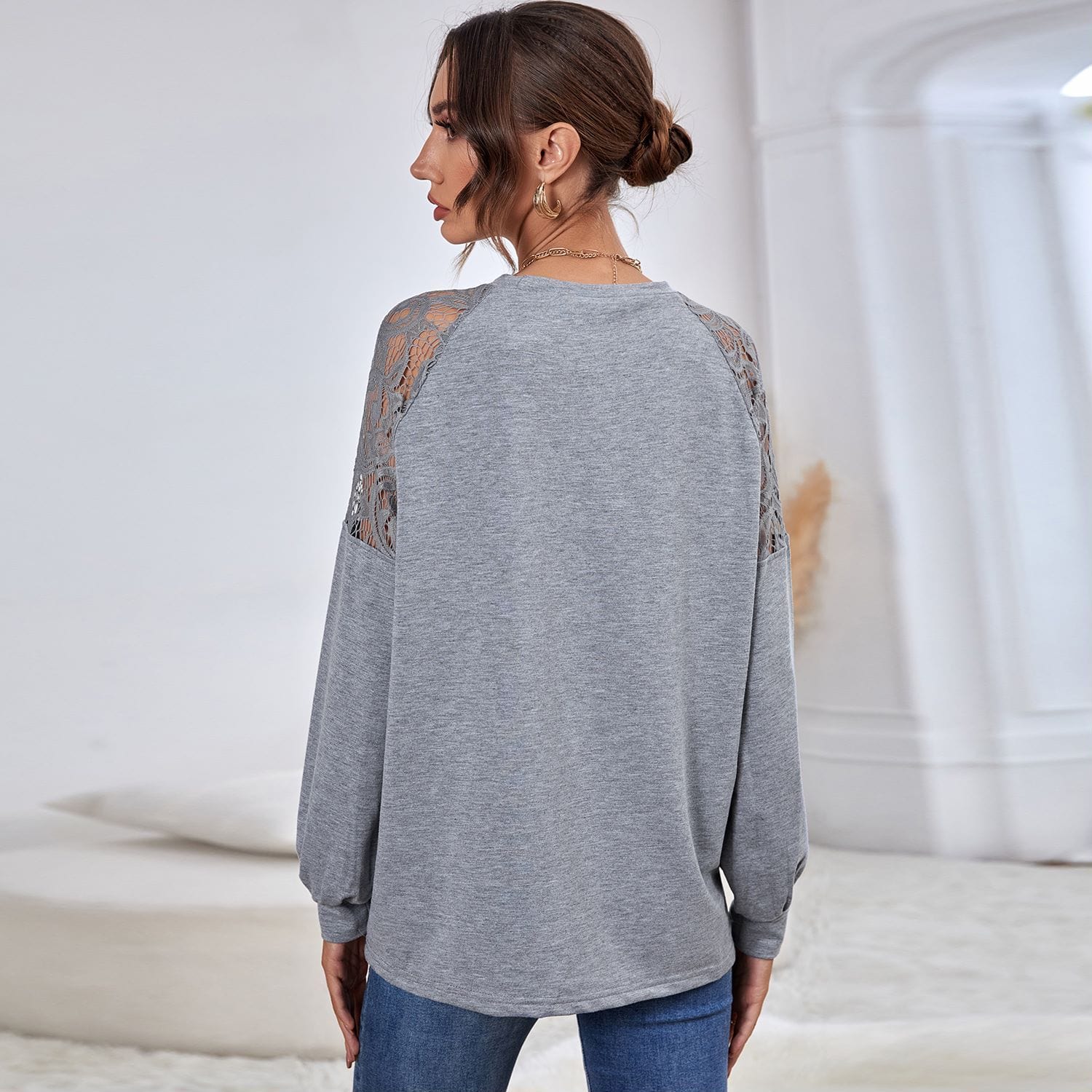 El suéter Anna-Kaci tiene delicados detalles de encaje en los hombros y las mangas. Tiene cuello redondo, mangas raglán largas y corte holgado. Combínalo con jeans y zapatillas para lograr un lindo look.