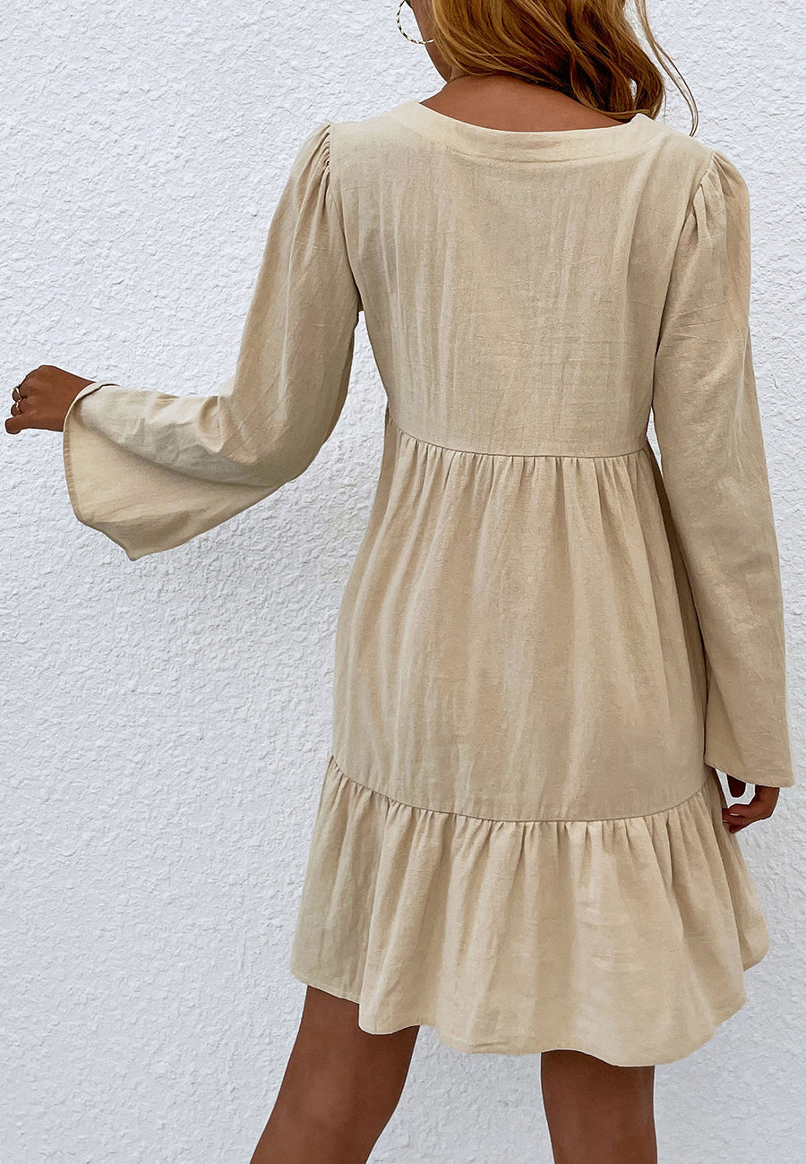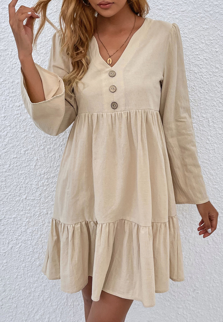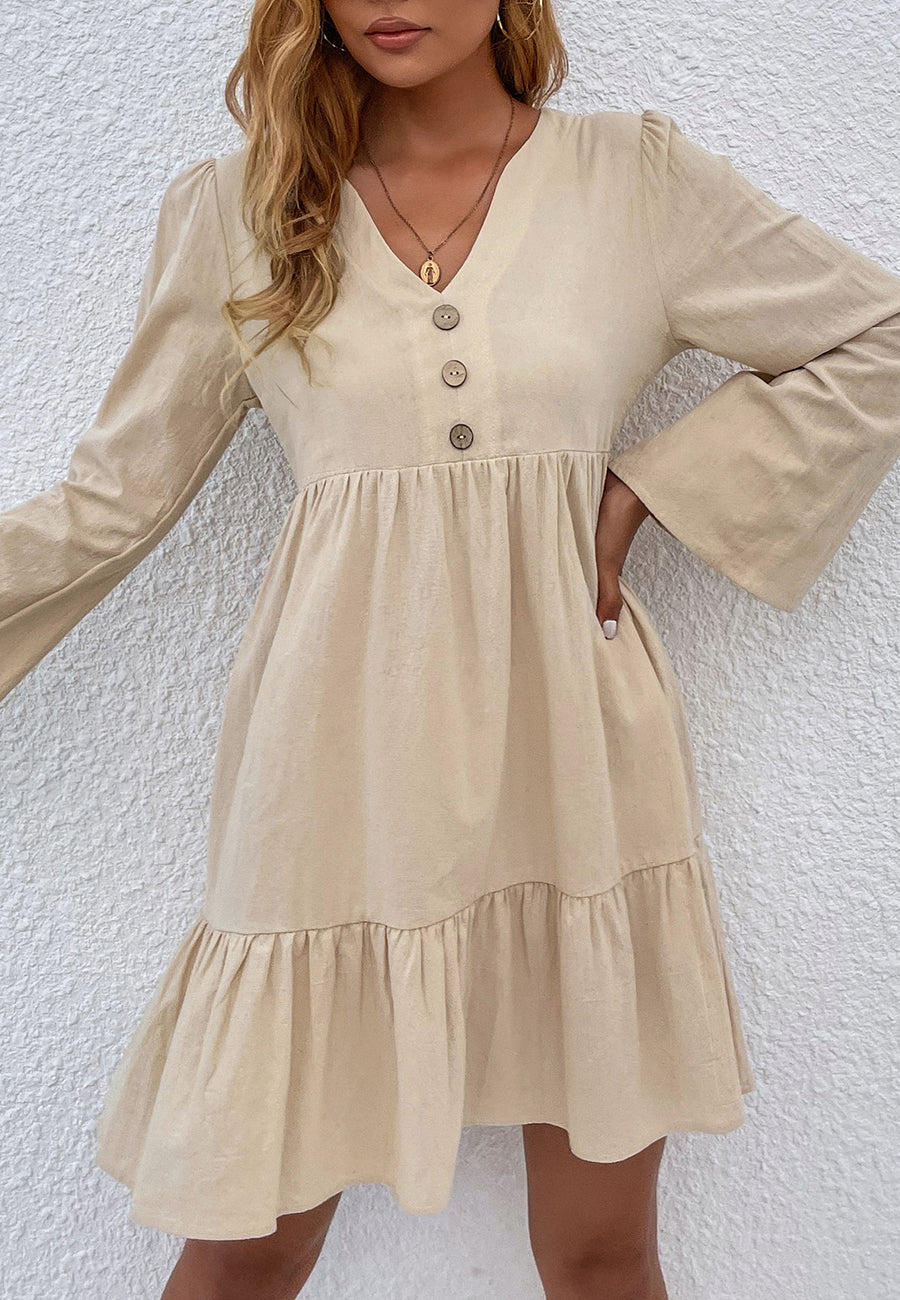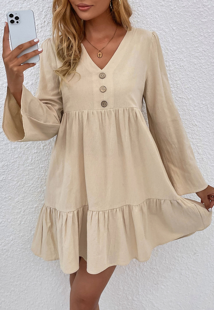 El vestido Anna-Kaci tiene un diseño femenino con dobladillo con volados. Tiene escote en V, medio botón en la parte delantera, falda vaporosa, mangas largas, dobladillo con volados y largo por encima de la rodilla. Combínalo con sandalias de gladiador y gafas de sol para lograr un estilo bohemio atrevido.