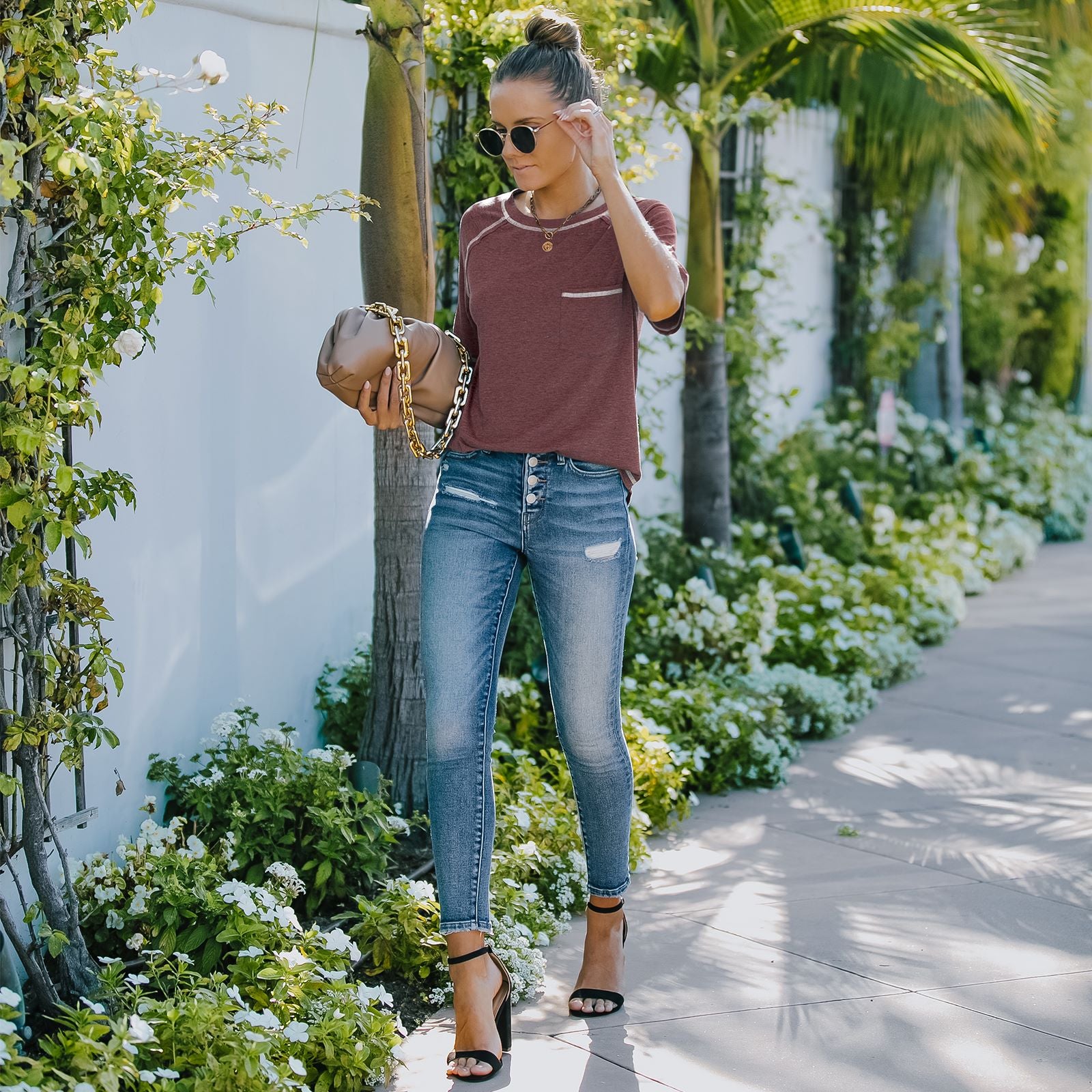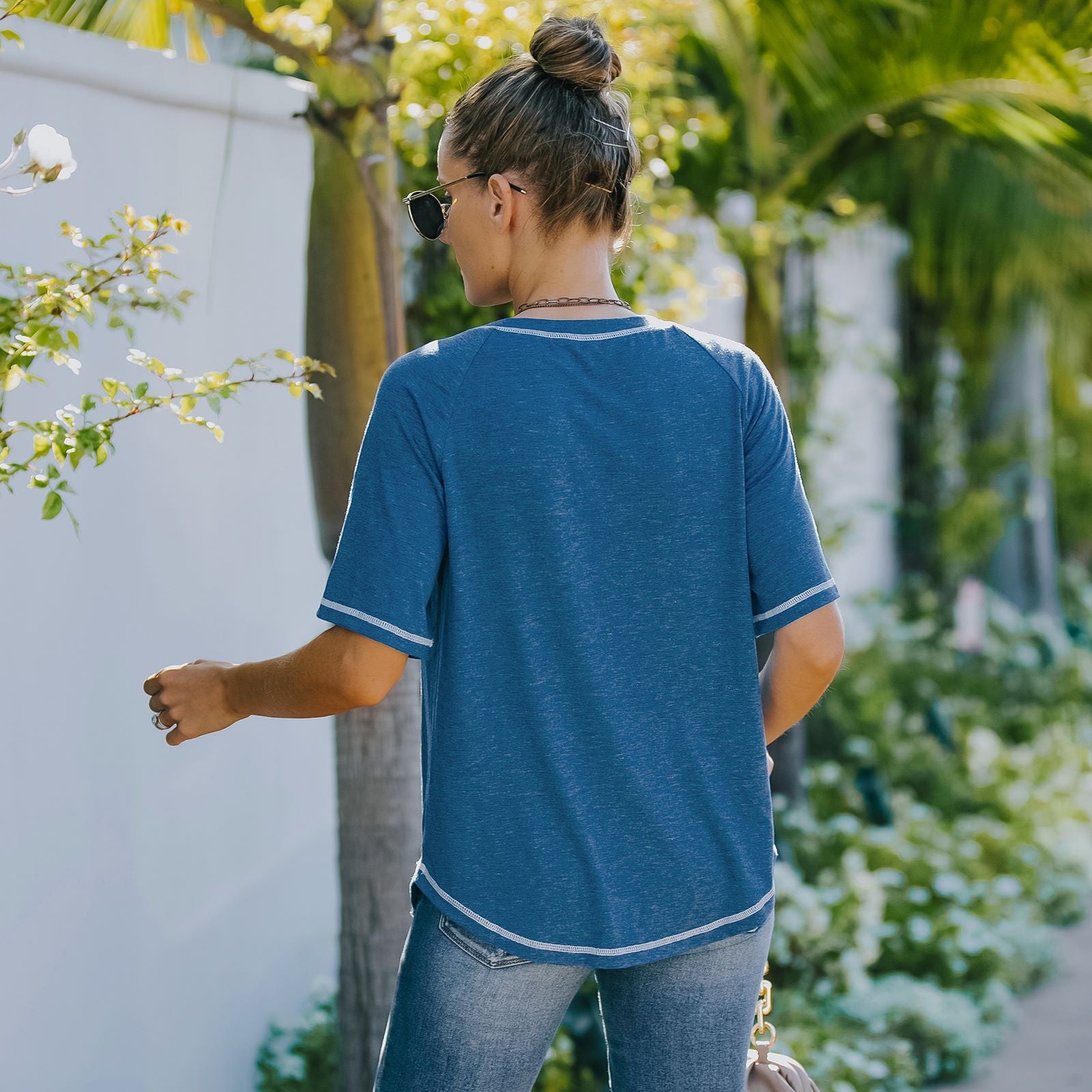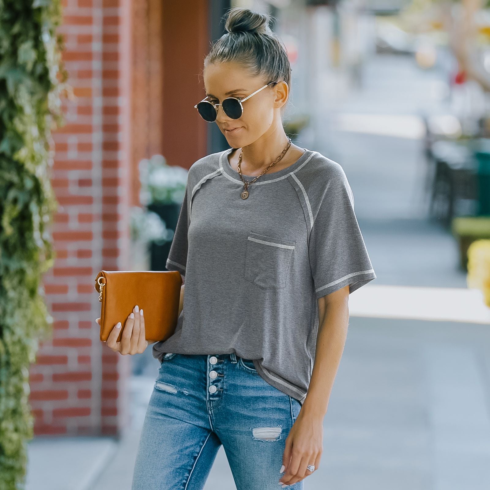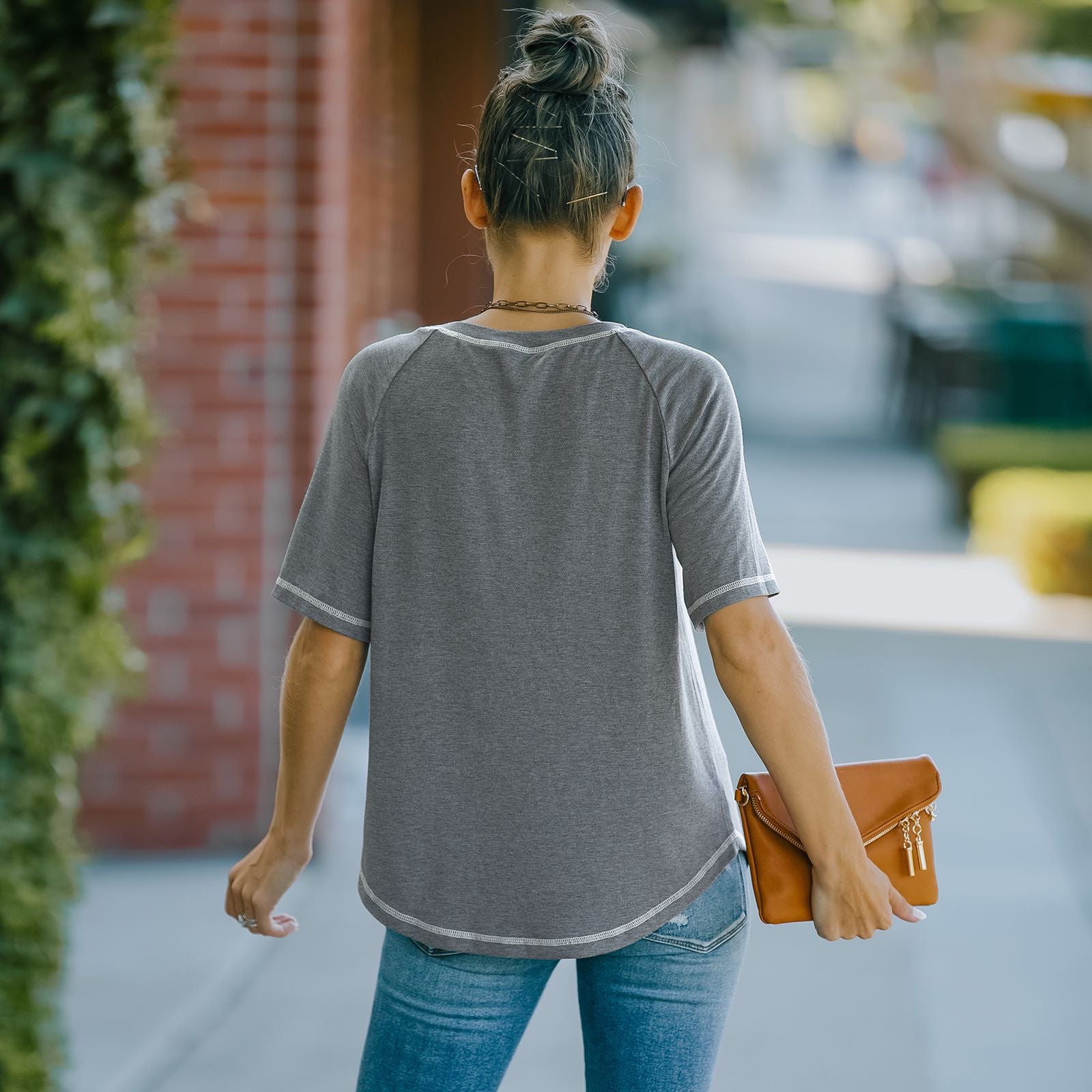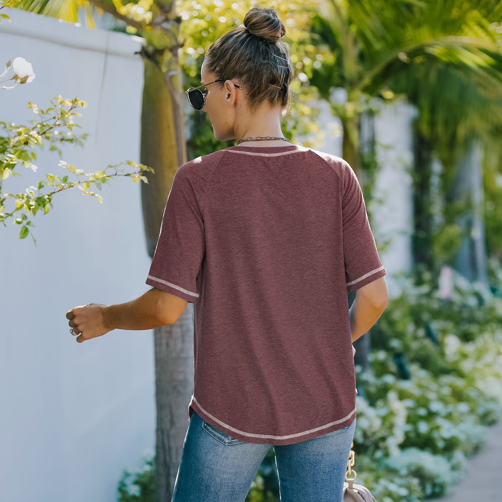 Camiseta básica de verano con cuello redondo, manga corta y bolsillo en el pecho
