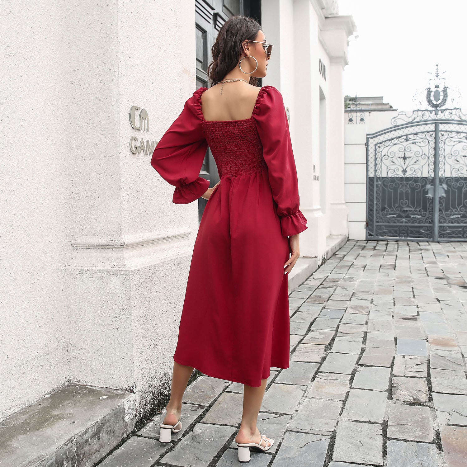 El vestido Anna-Kaci tiene un corpiño fruncido estilo vintage. Tiene escote cuadrado, mangas largas, falda vaporosa, color liso y largo por debajo de la rodilla. Combínalo con un bolso y tacones para lograr un look magnífico.