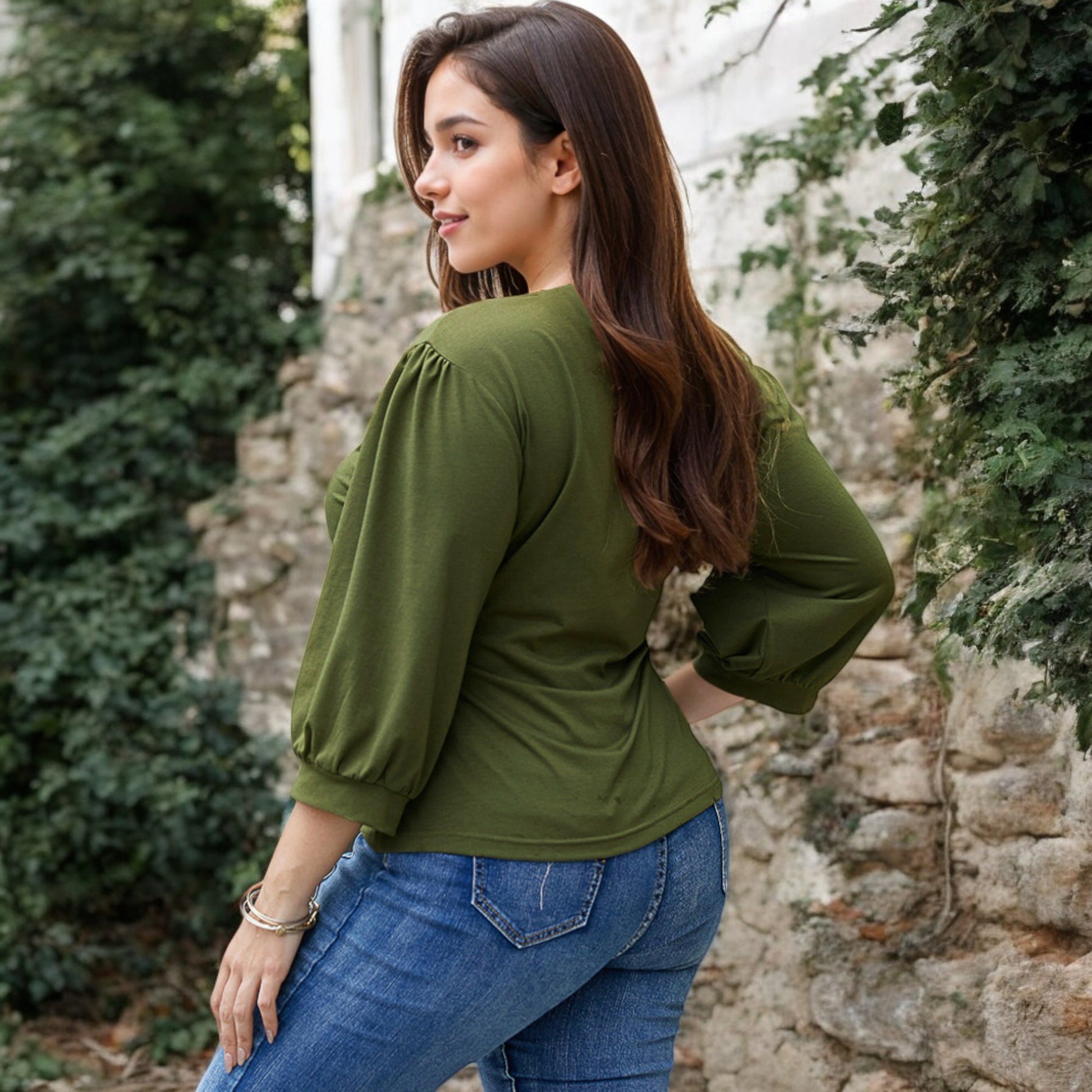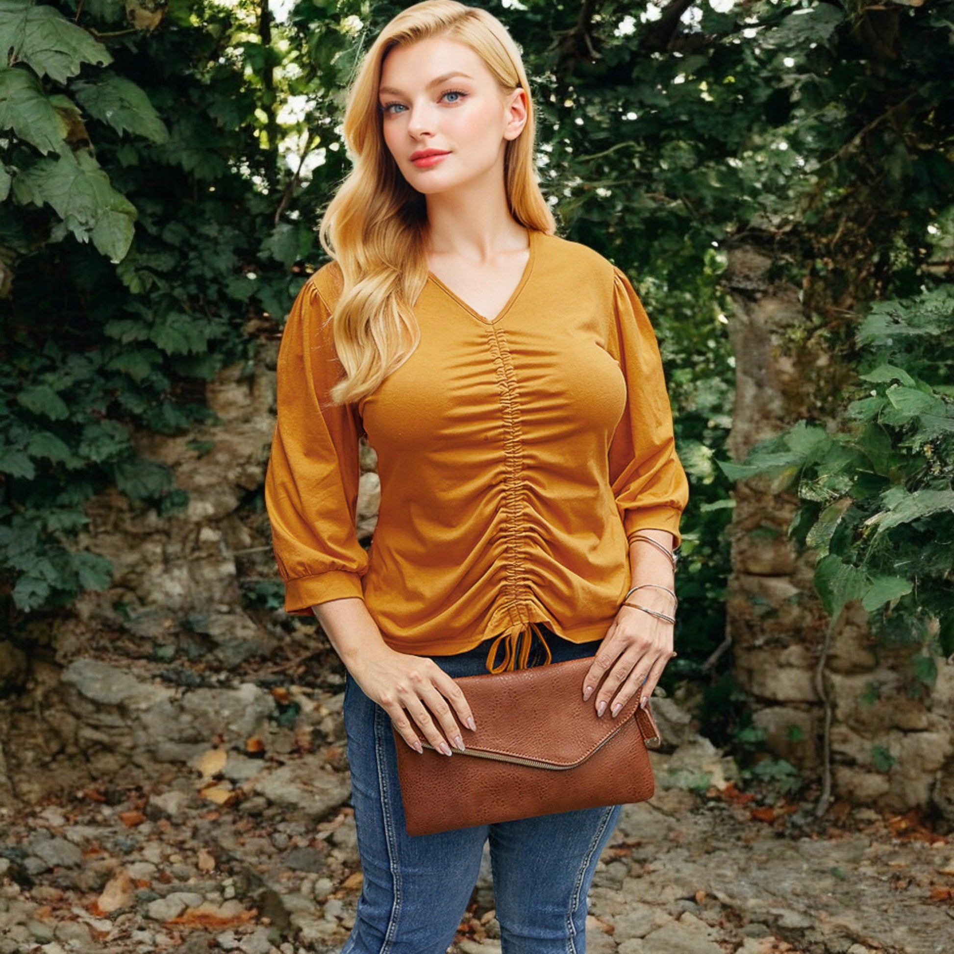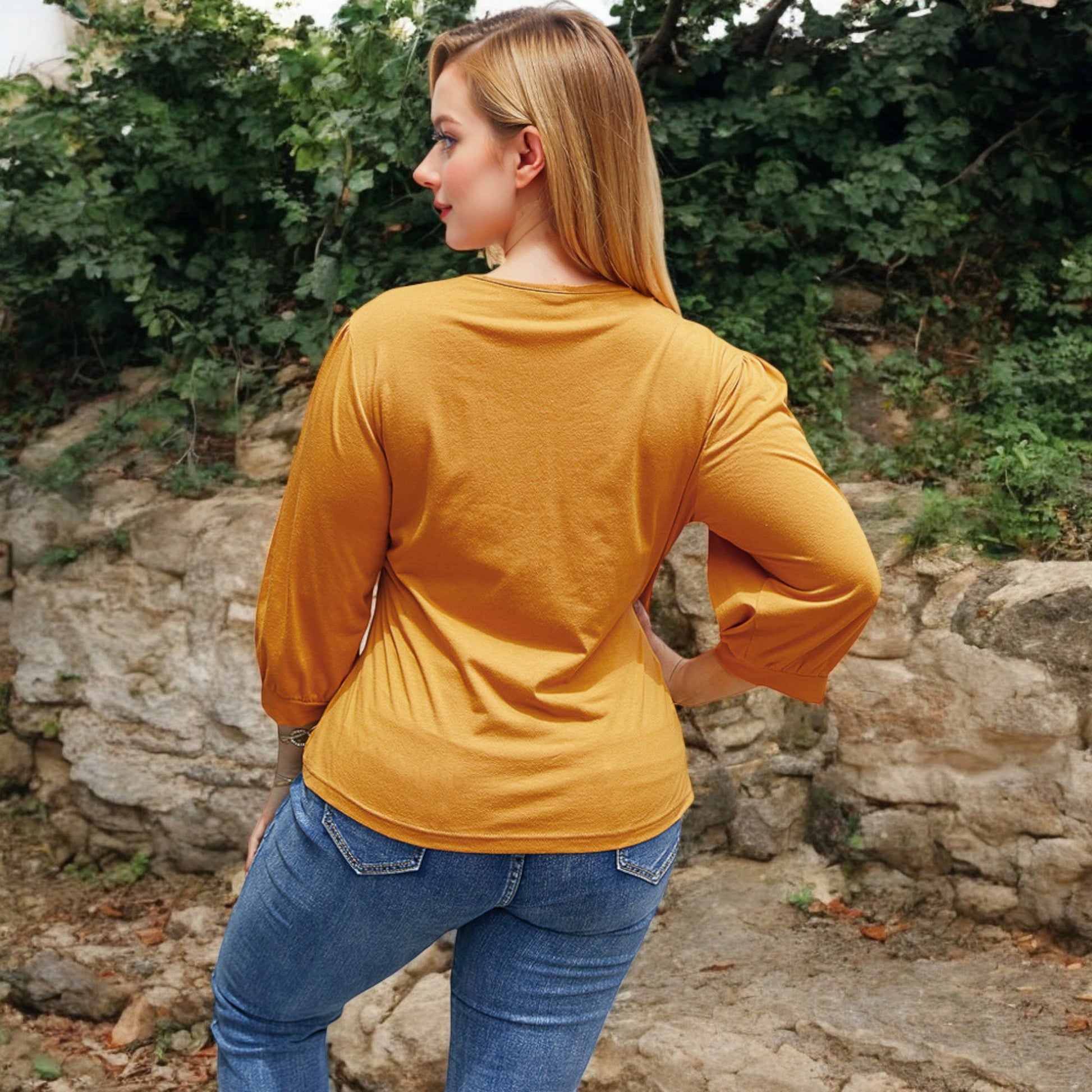 Anna-Kaci Women's Long Sleeve Blouse with V-Neck and Drawstring Detail