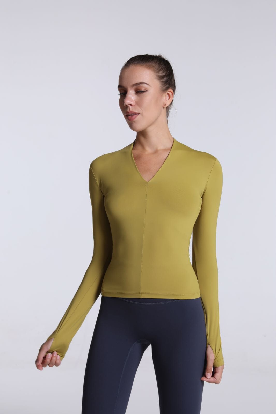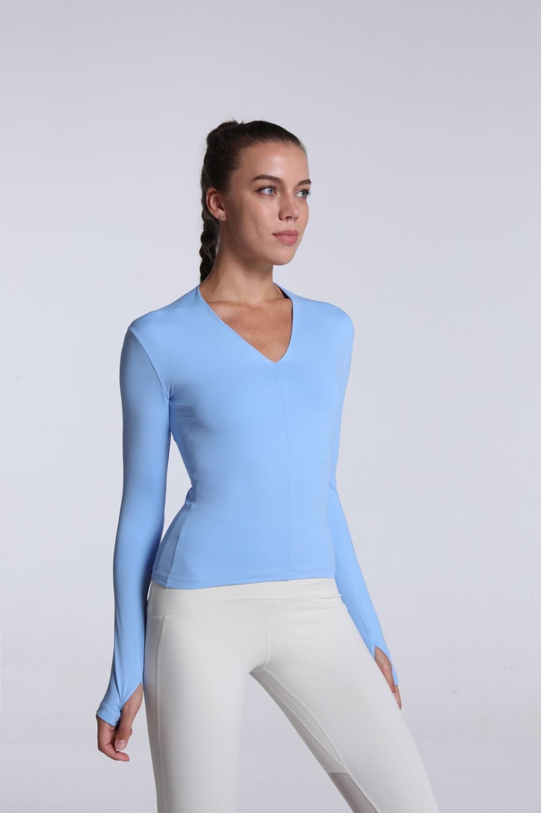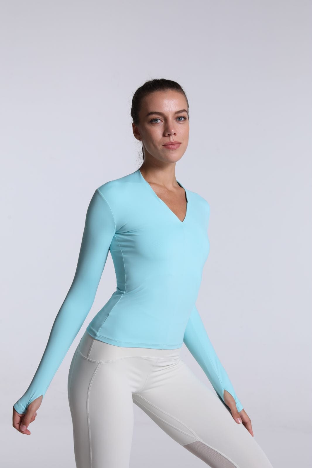 La camiseta Anna-Kaci tiene mangas largas y aberturas para los pulgares. Tiene un escote en forma de V y un largo completo que llega más allá de la cintura. Combina esta camiseta deportiva suave, liviana y de secado rápido con tus leggings y zapatillas favoritas para lograr un atuendo fácil para correr por la mañana.
