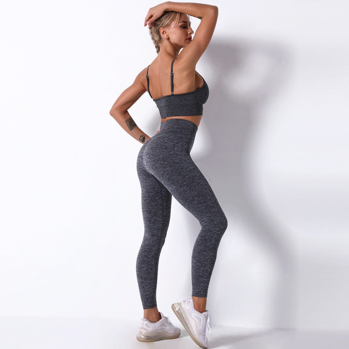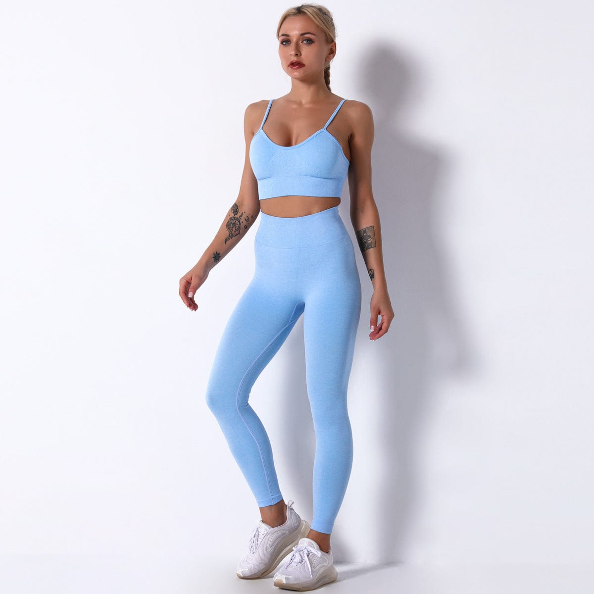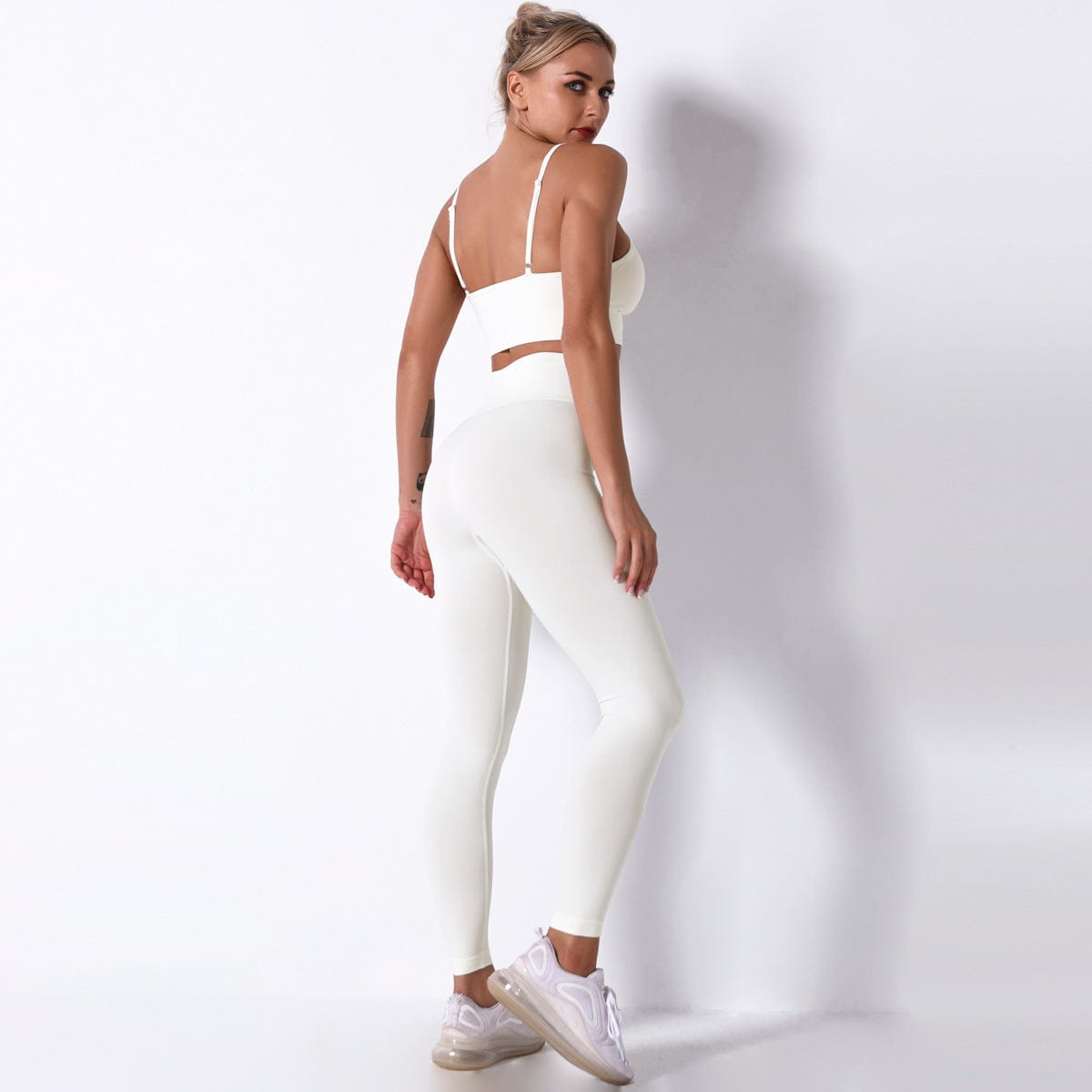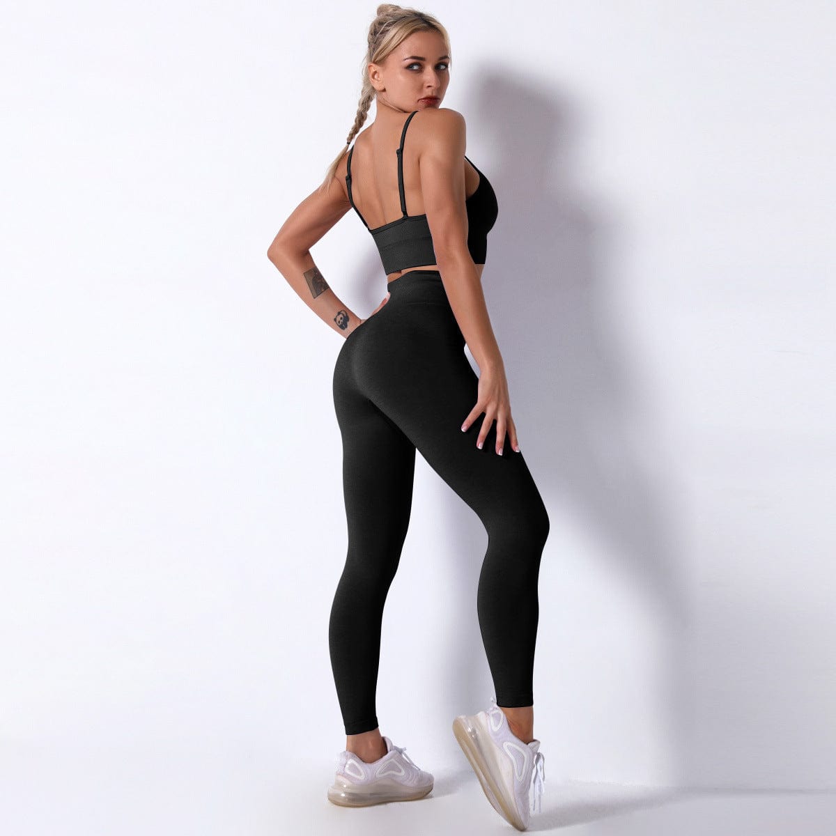 El conjunto de dos piezas Anna-Kaci incluye una parte superior e inferior de un solo color a juego. El sujetador deportivo tiene un escote redondo y un diseño de espalda cruzada. Las mallas tienen cintura alta con una costura elevada y contorneada que se ajusta cómodamente a las piernas.
