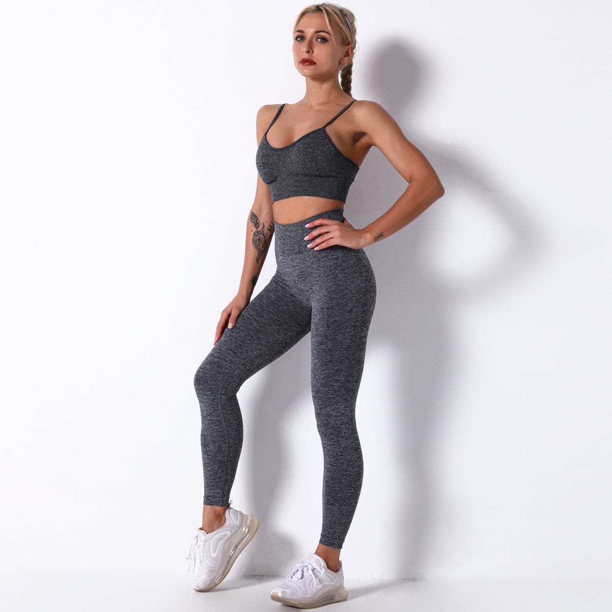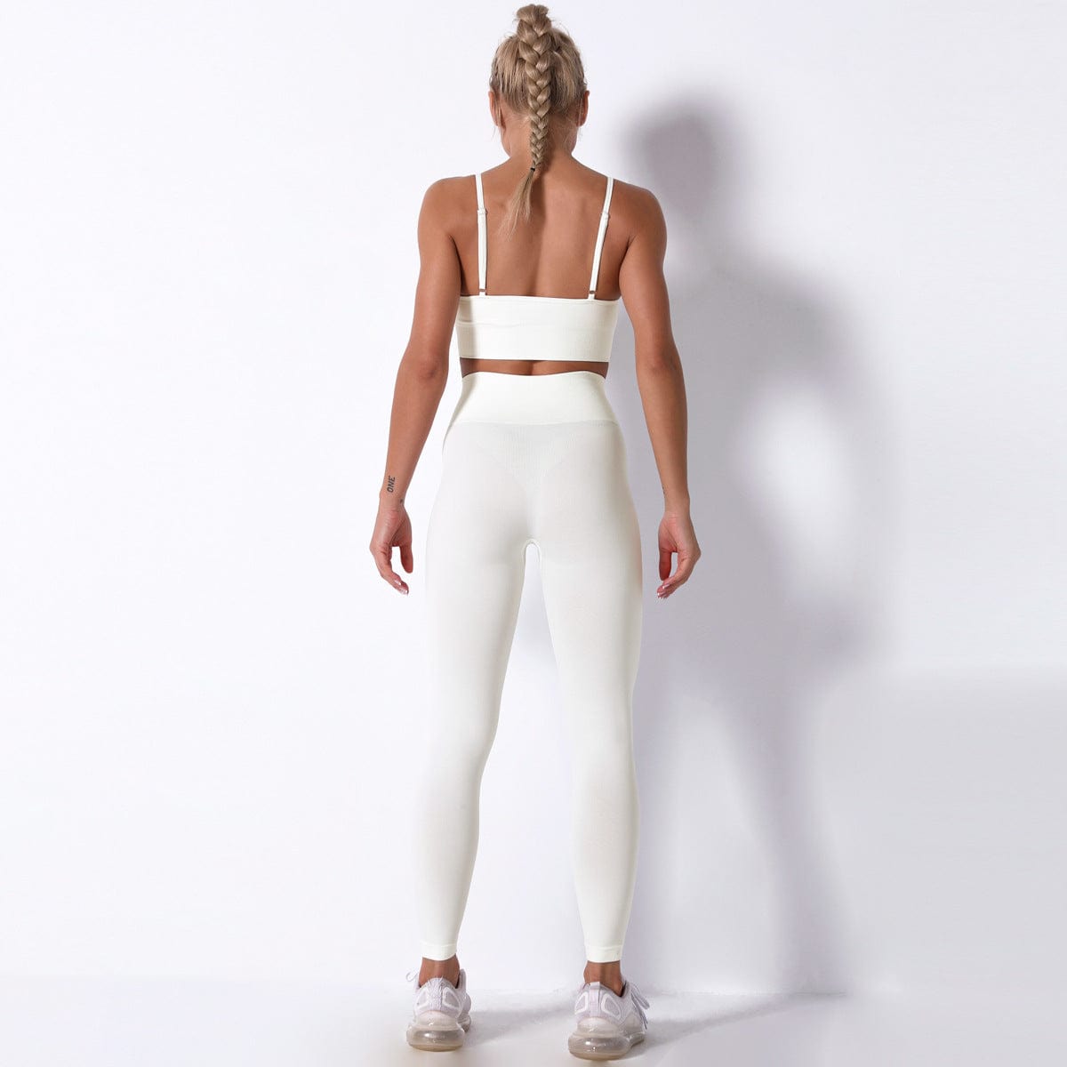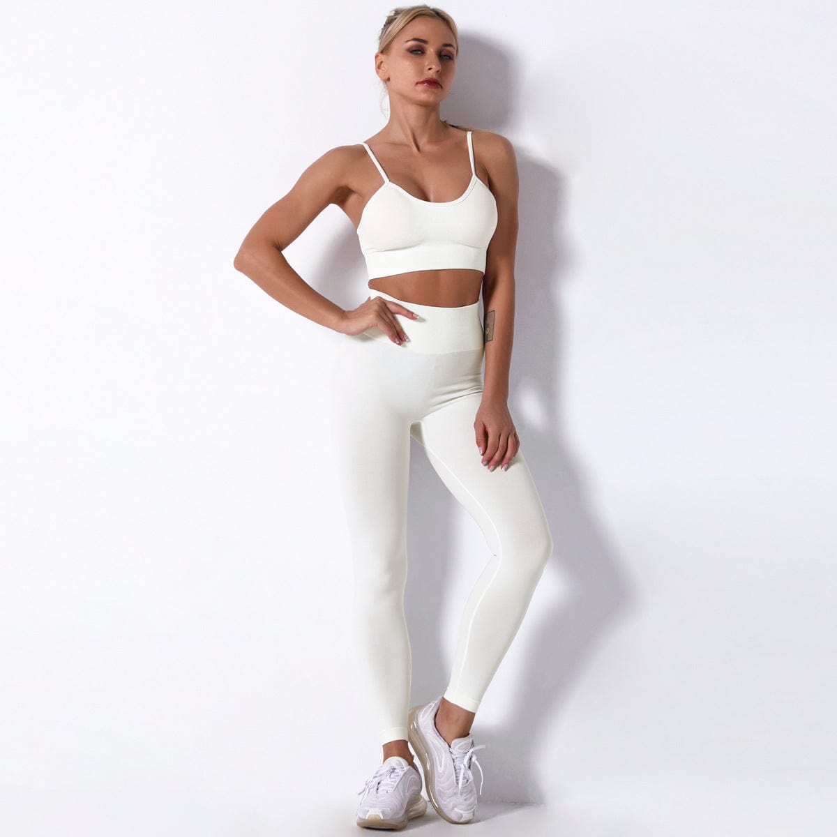 El conjunto de dos piezas Anna-Kaci incluye una parte superior e inferior de un solo color a juego. El sujetador deportivo tiene un escote redondo y un diseño de espalda cruzada. Las mallas tienen cintura alta con una costura elevada y contorneada que se ajusta cómodamente a las piernas.