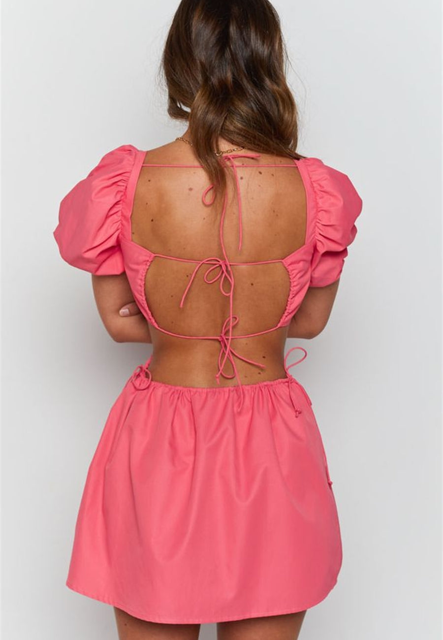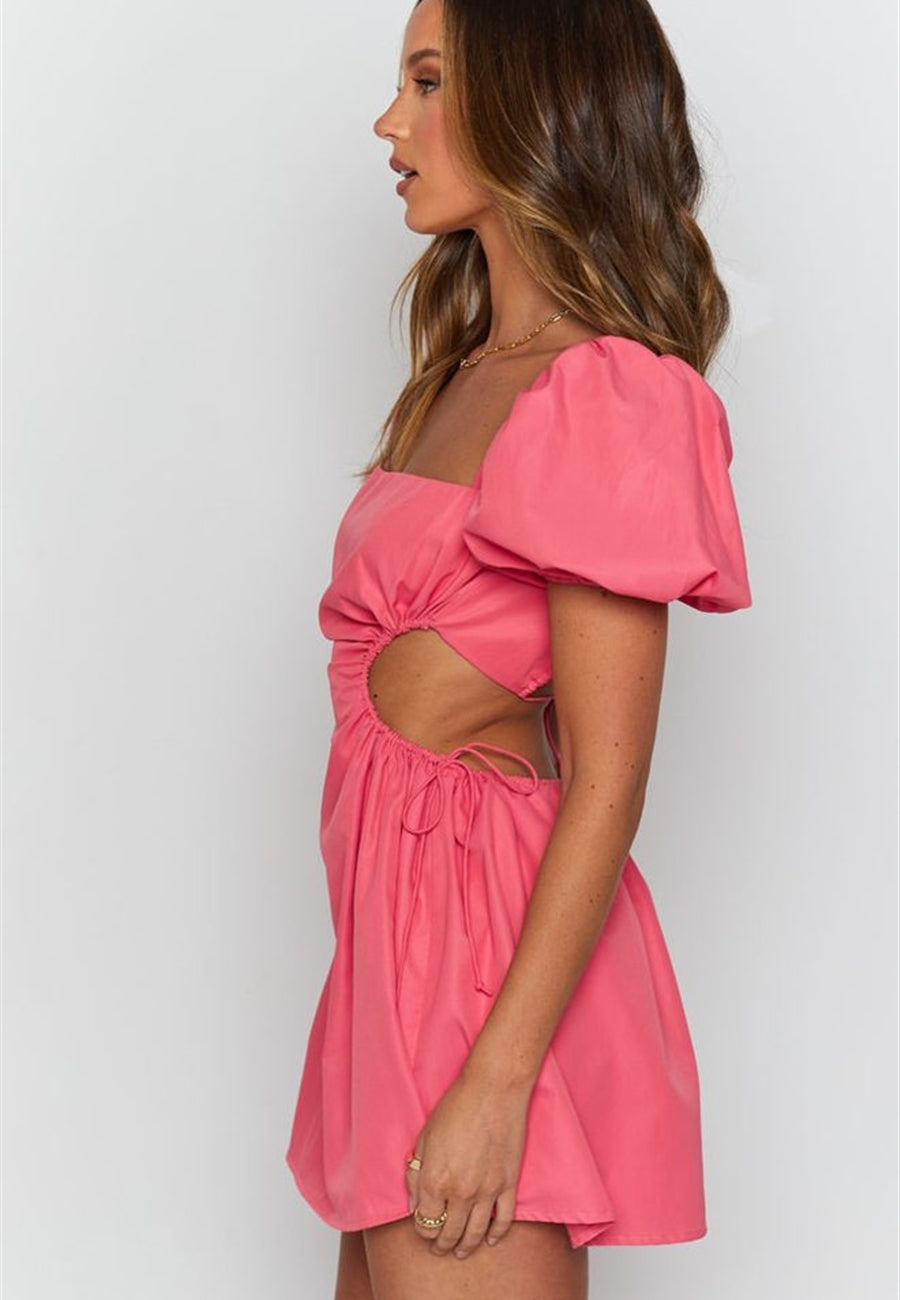 El vestido Anna-Kaci tiene un diseño sexy con aberturas laterales. Tiene un color liso, escote recto, mangas abullonadas, diseño con lazo en la espalda, silueta en forma de A y largo por encima de la rodilla. Combínalo con una gargantilla de perlas y tacones para lograr un look deslumbrante.