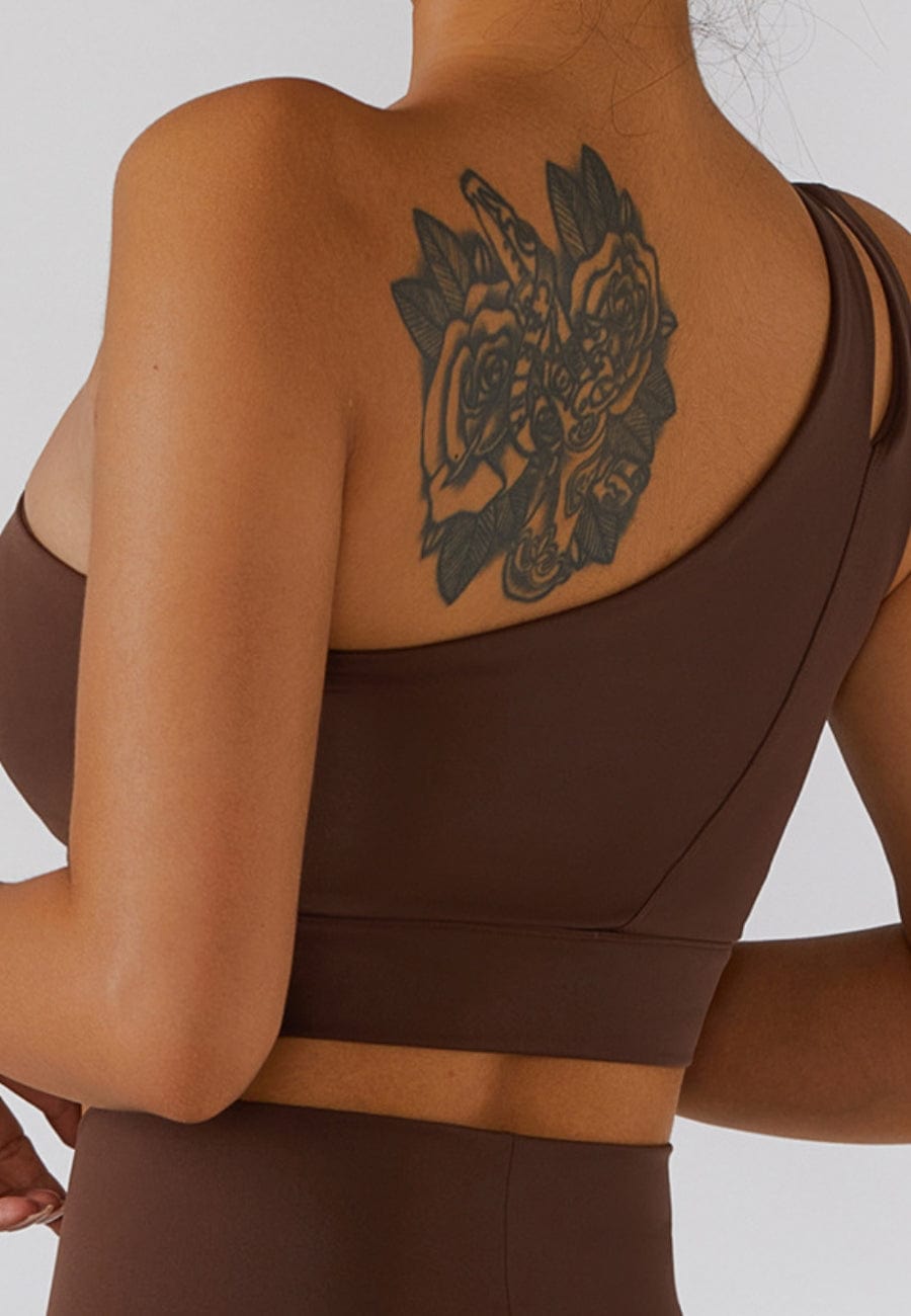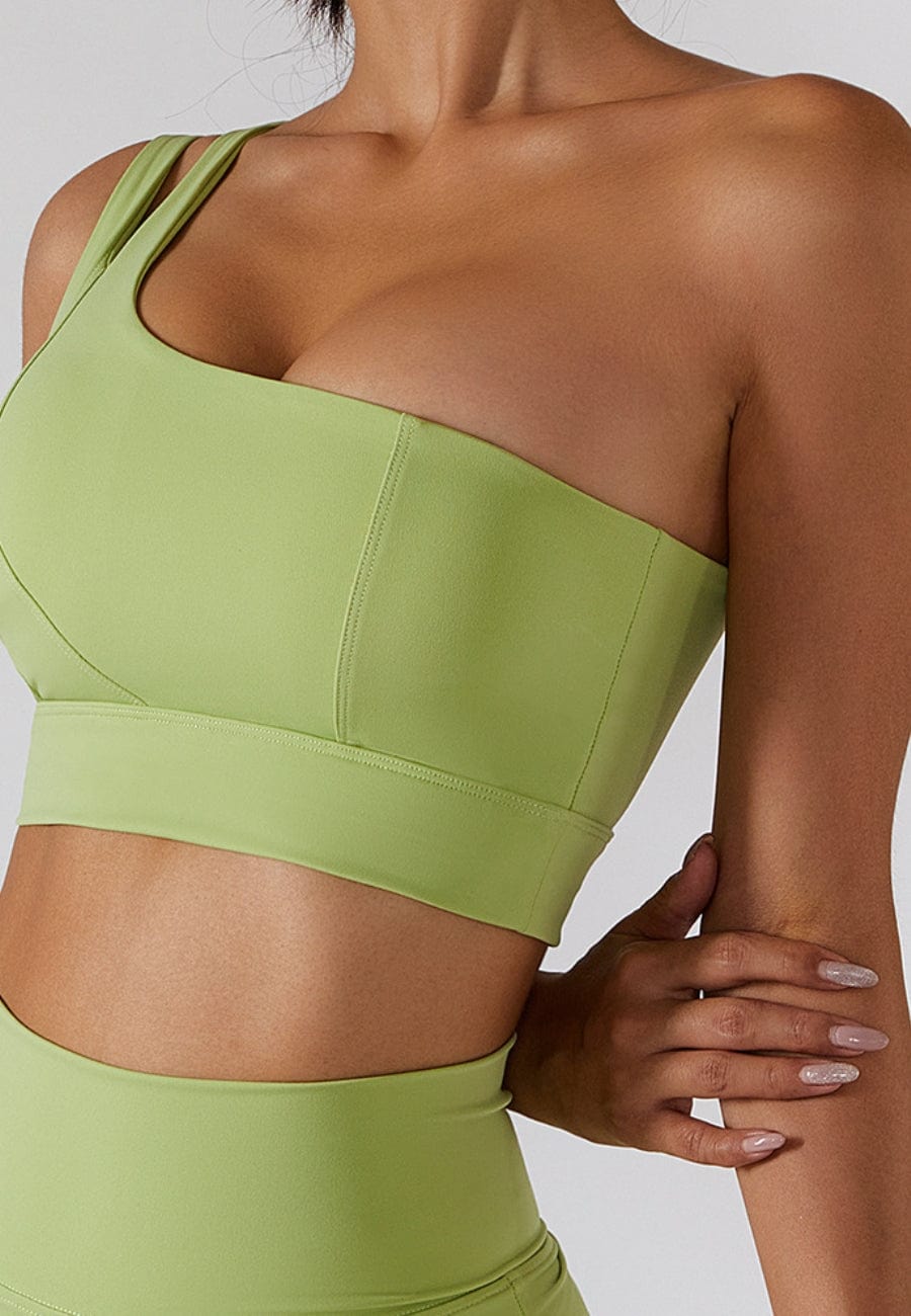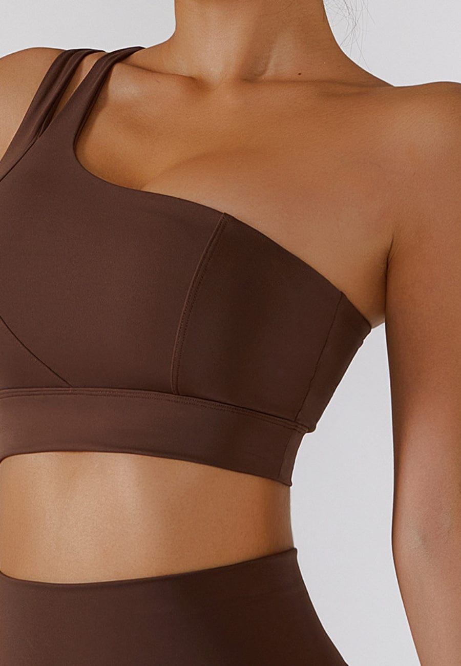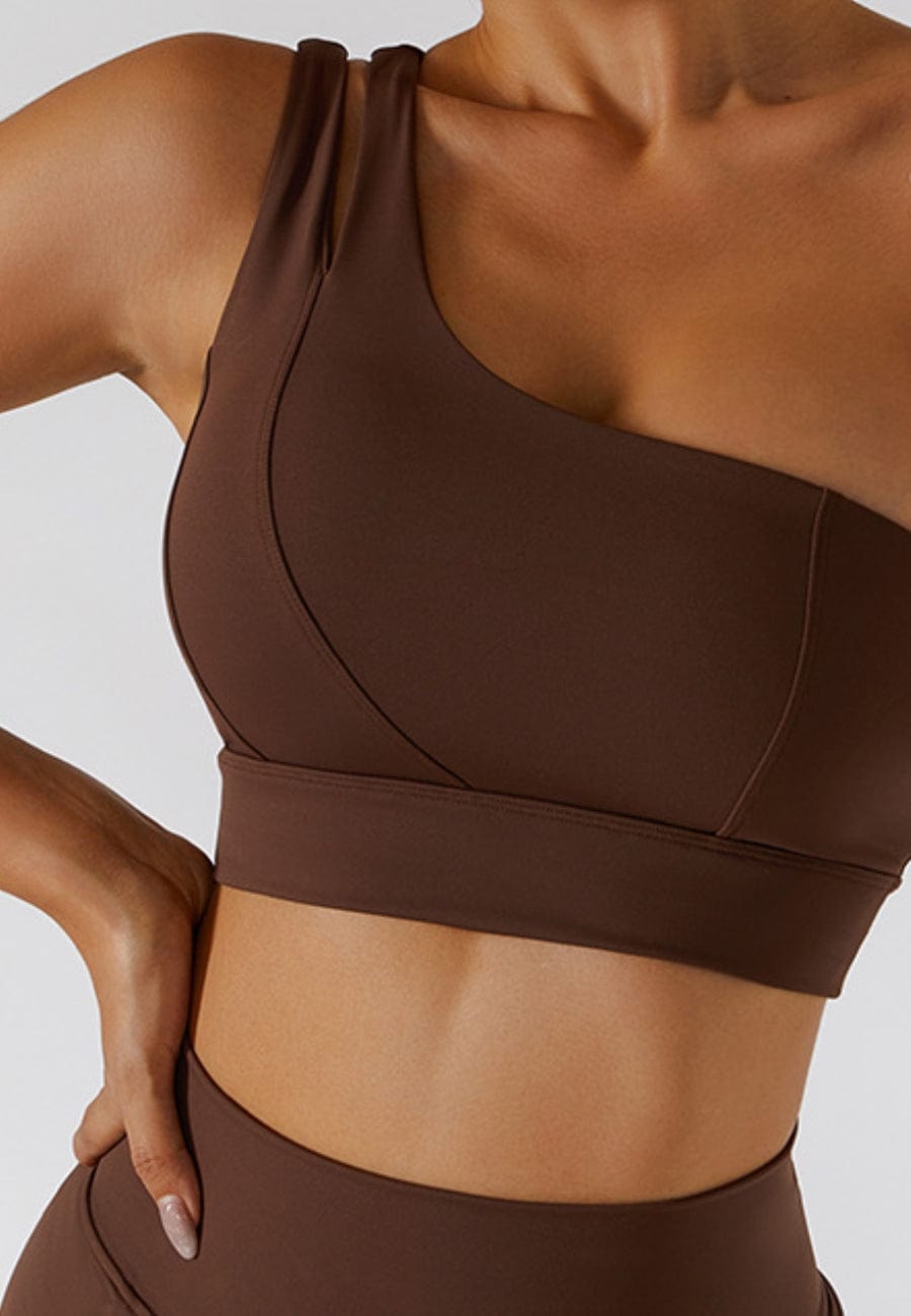 Sujetador deportivo asimétrico de un hombro con doble tirante