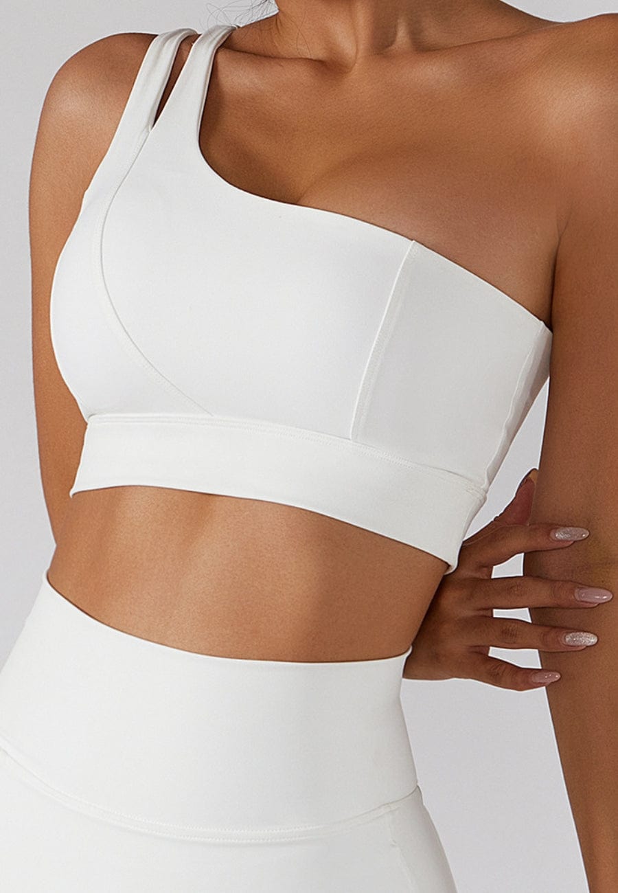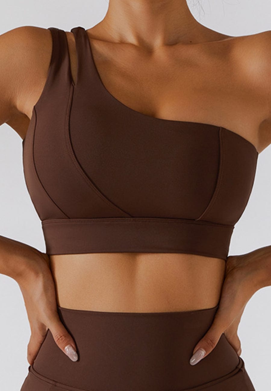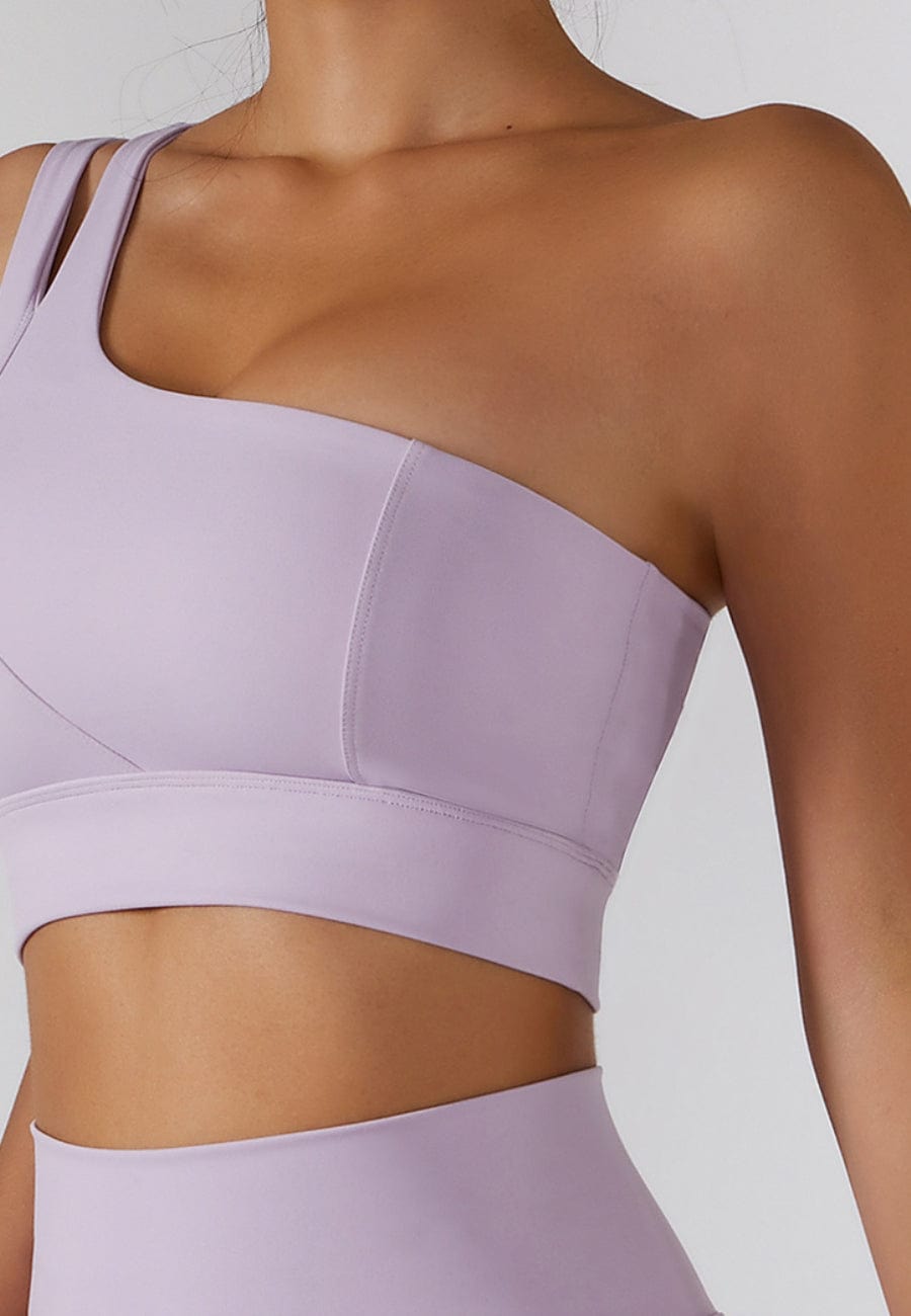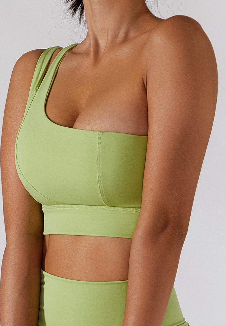 Sujetador deportivo asimétrico de un hombro con doble tirante