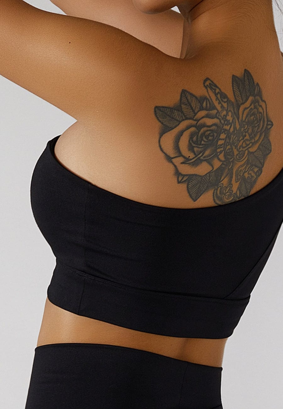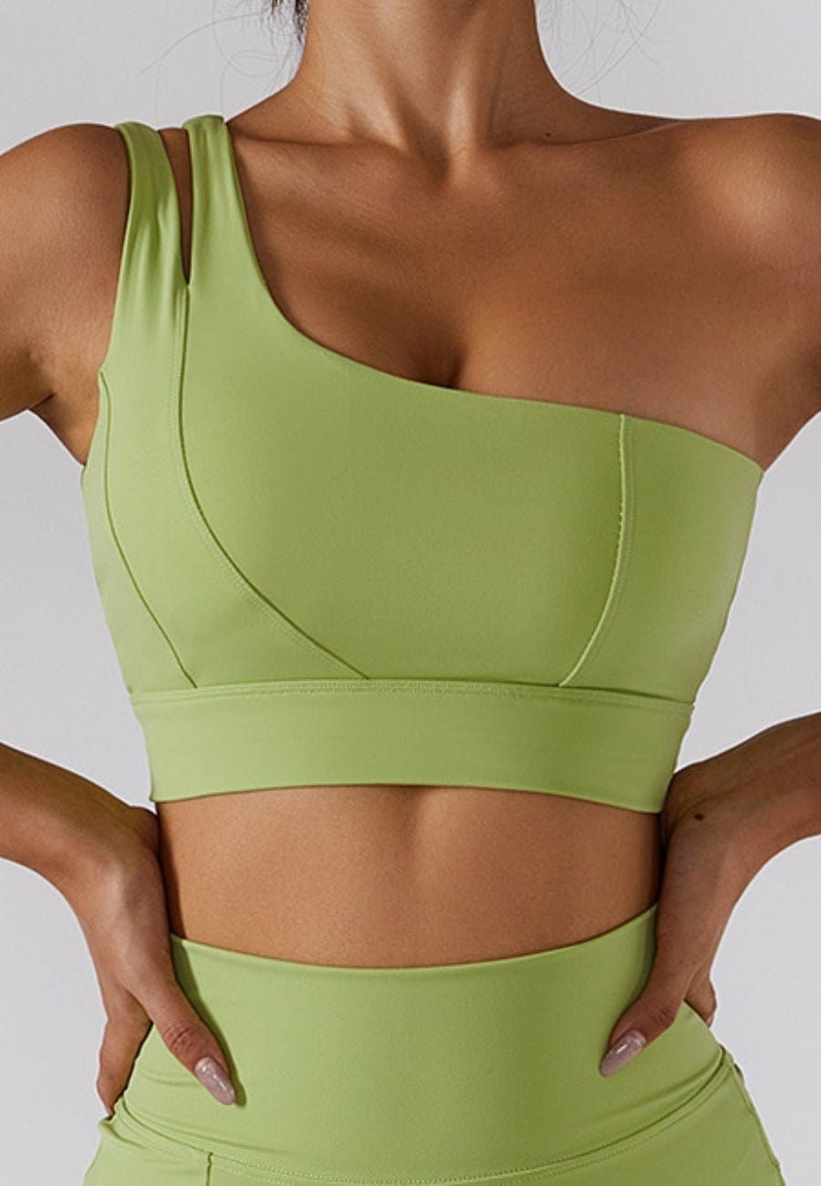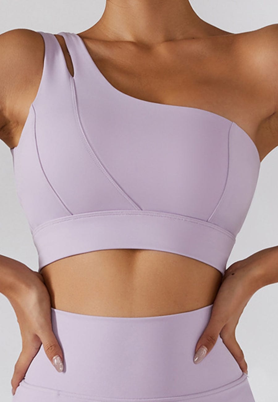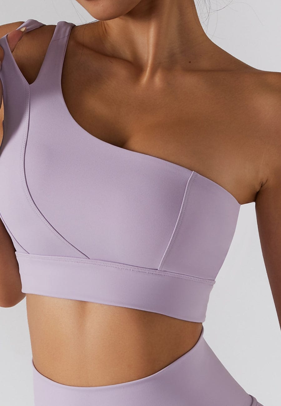 Sujetador deportivo asimétrico de un hombro con doble tirante