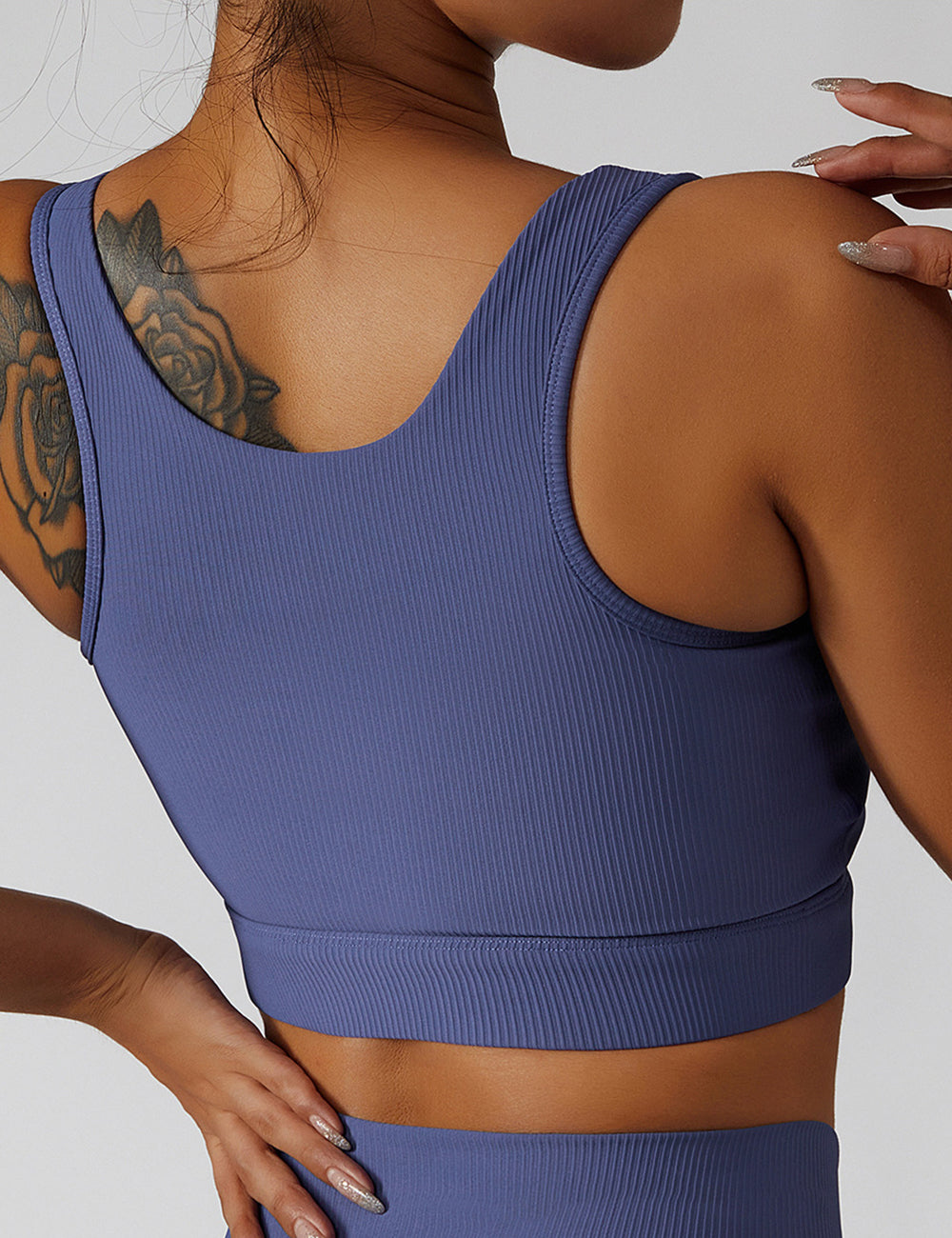 El sujetador deportivo Anna-Kaci está elaborado con un material suave diseñado para brindar comodidad. Presenta un diseño exclusivo con botones en la parte delantera y dos tiras gruesas en ambos lados.