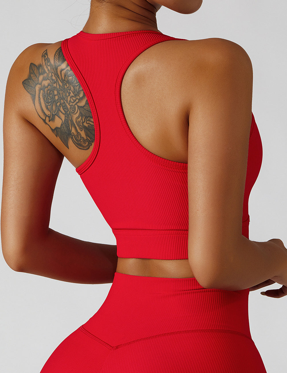 Sujetador deportivo texturizado de corte largo con escote redondo