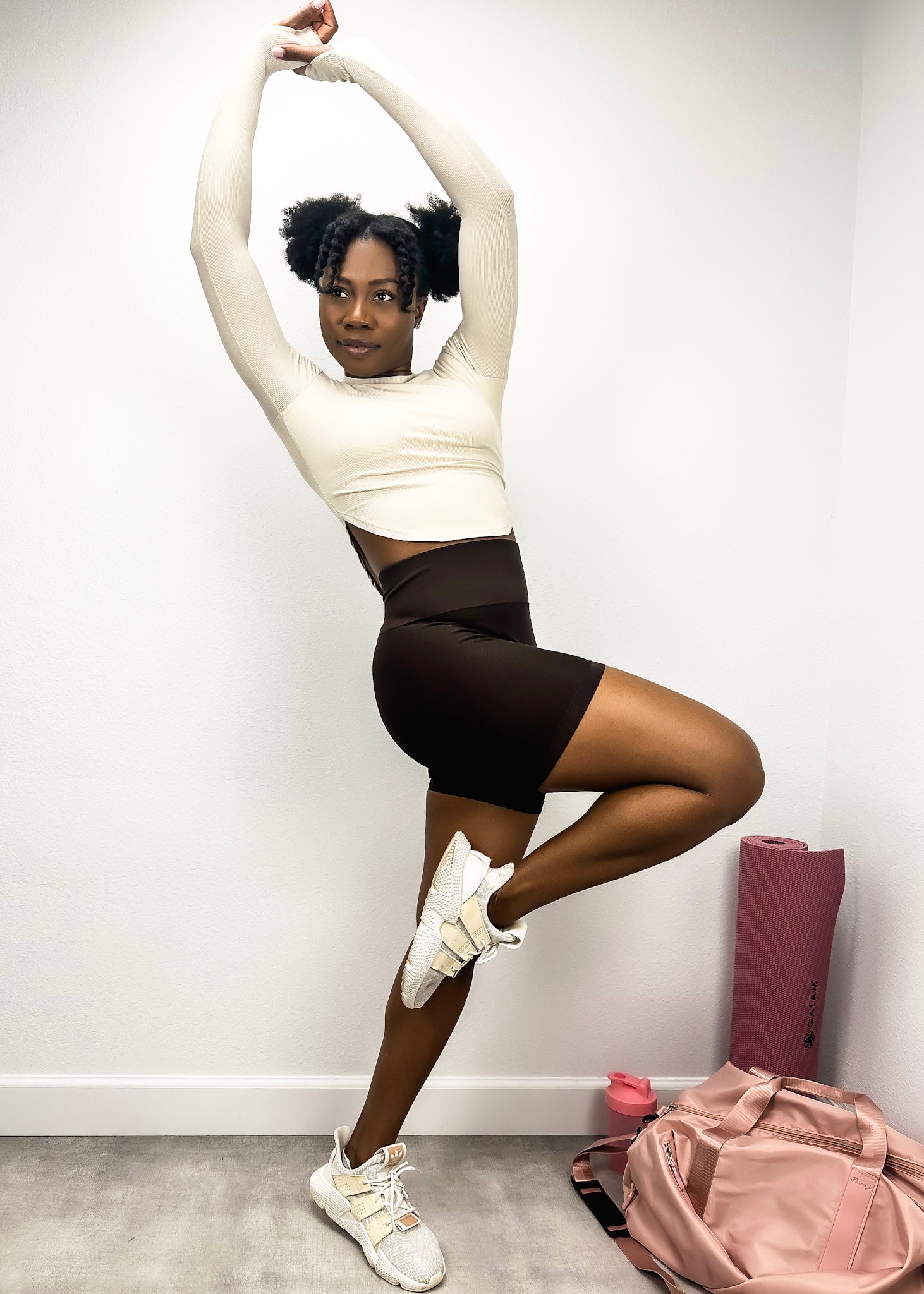 Los shorts Anna-Kaci presentan un corte de talle alto con un patrón de malla en los costados. Presentan un material suave y transpirable y costuras que se adaptan a la forma de tu cintura y caderas.