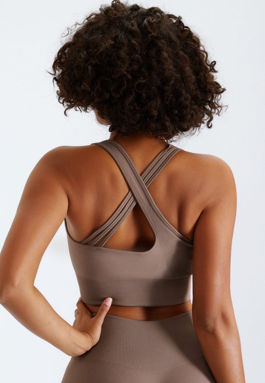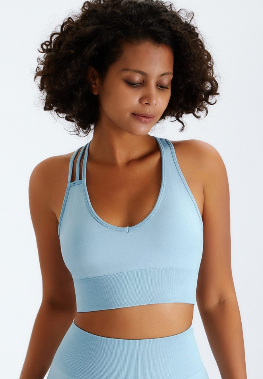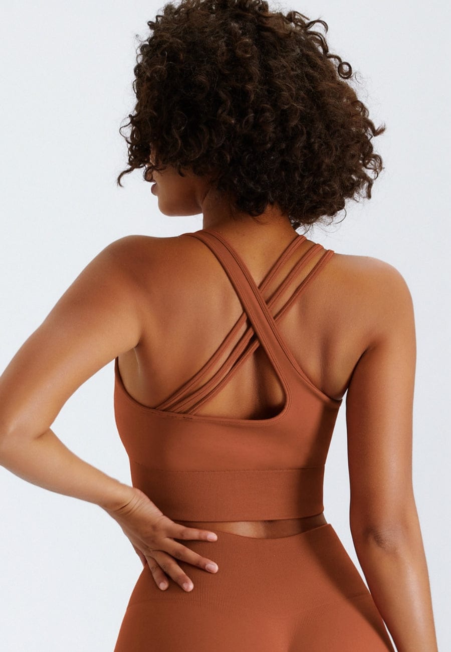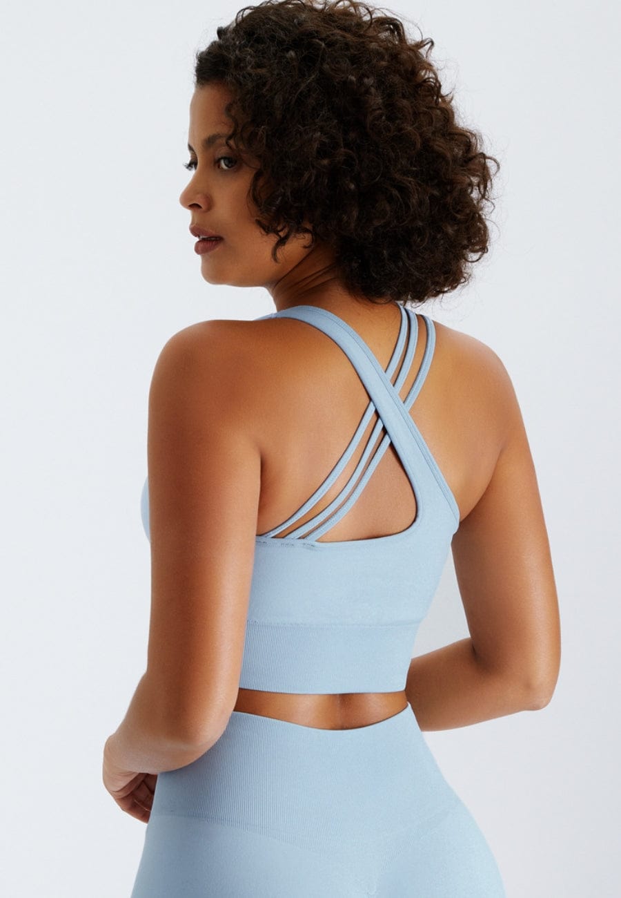 Sujetador deportivo con espalda cruzada y tirantes con aberturas