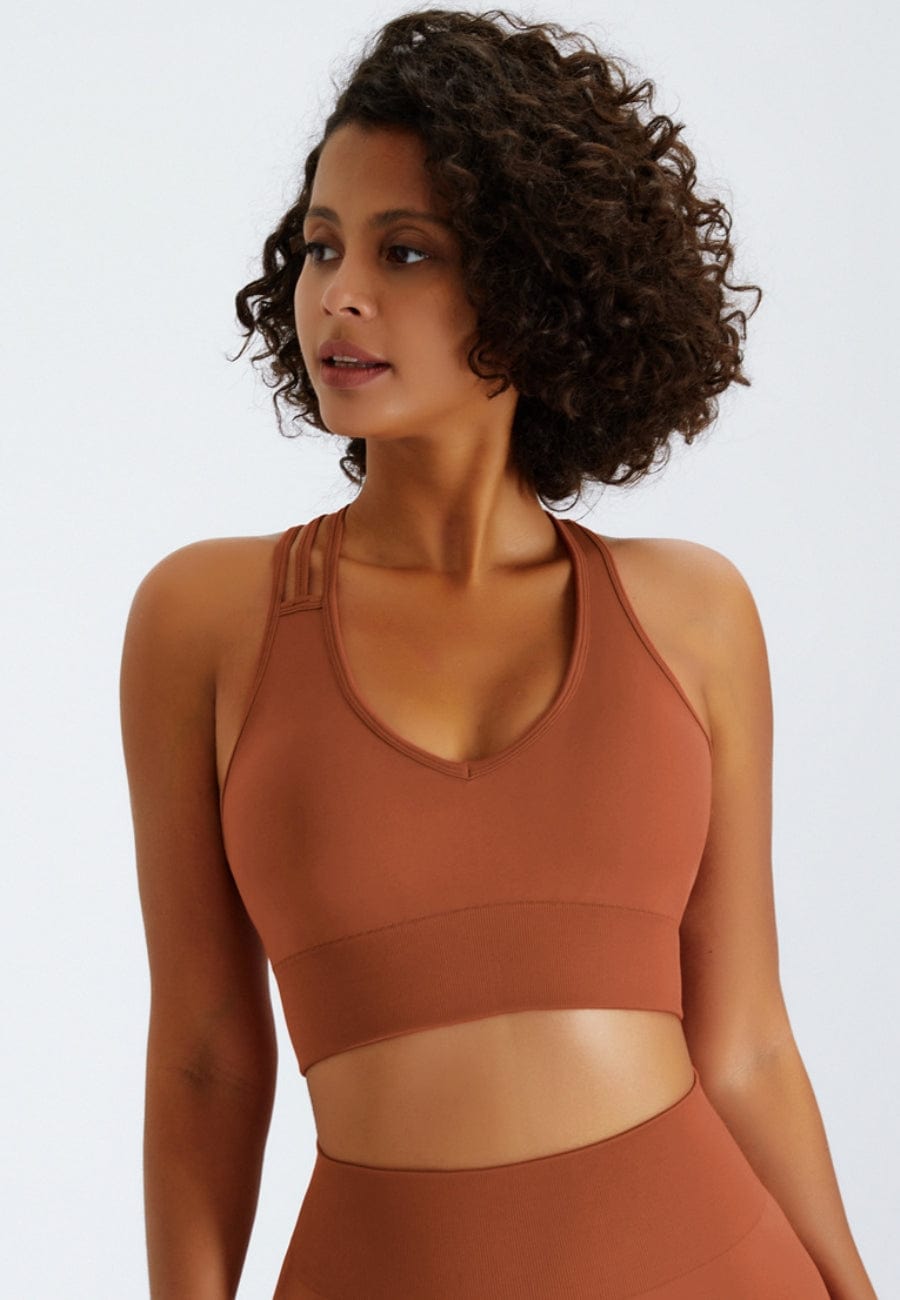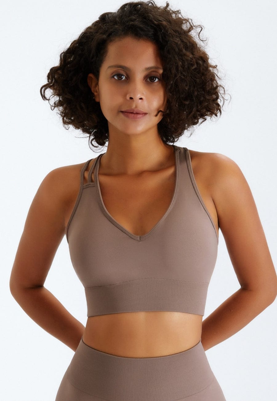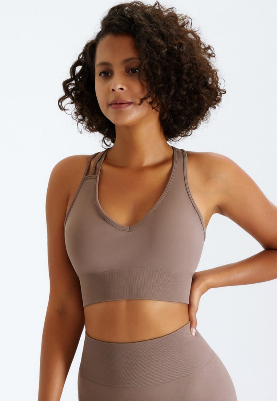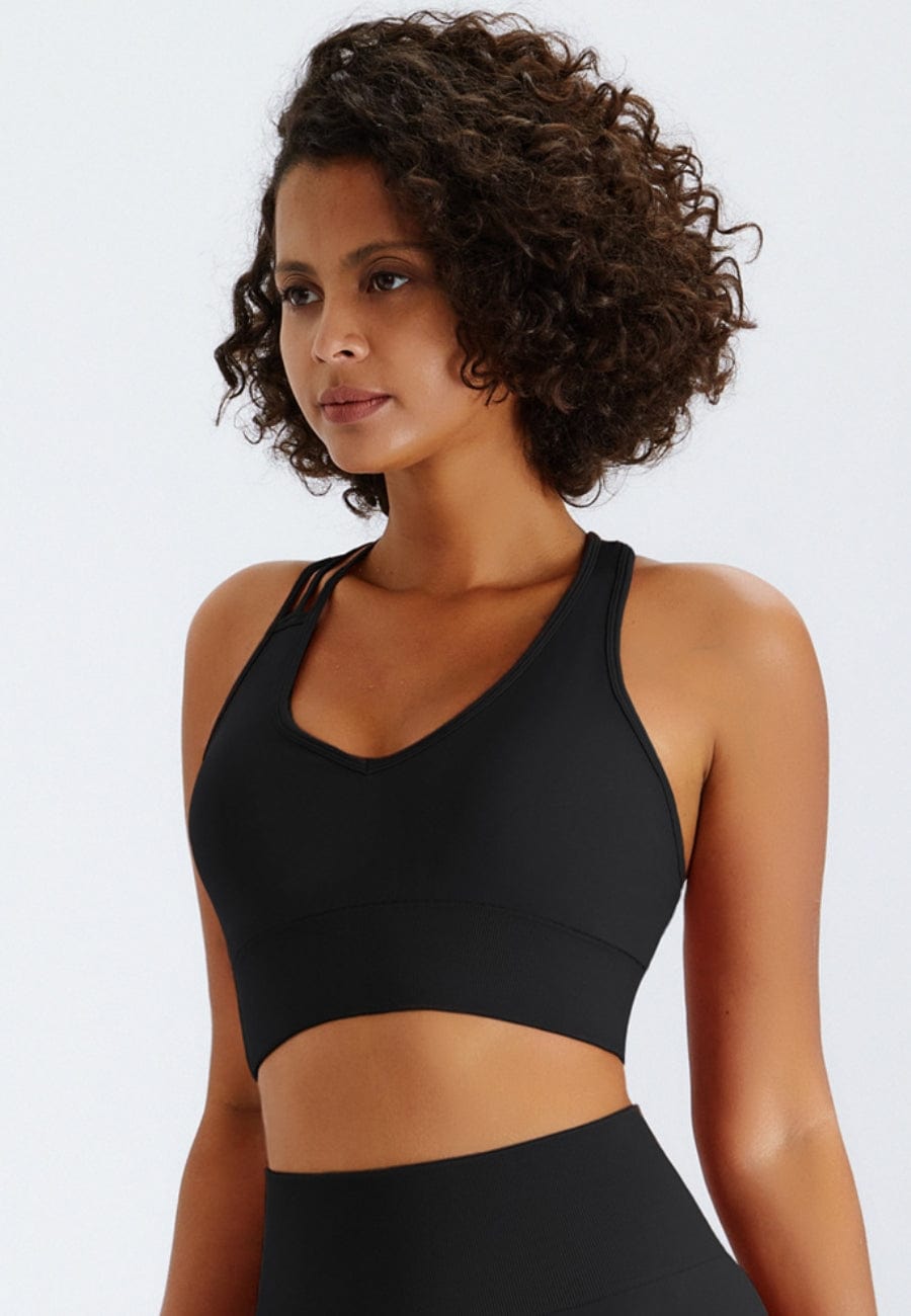 Sujetador deportivo con espalda cruzada y tirantes con aberturas