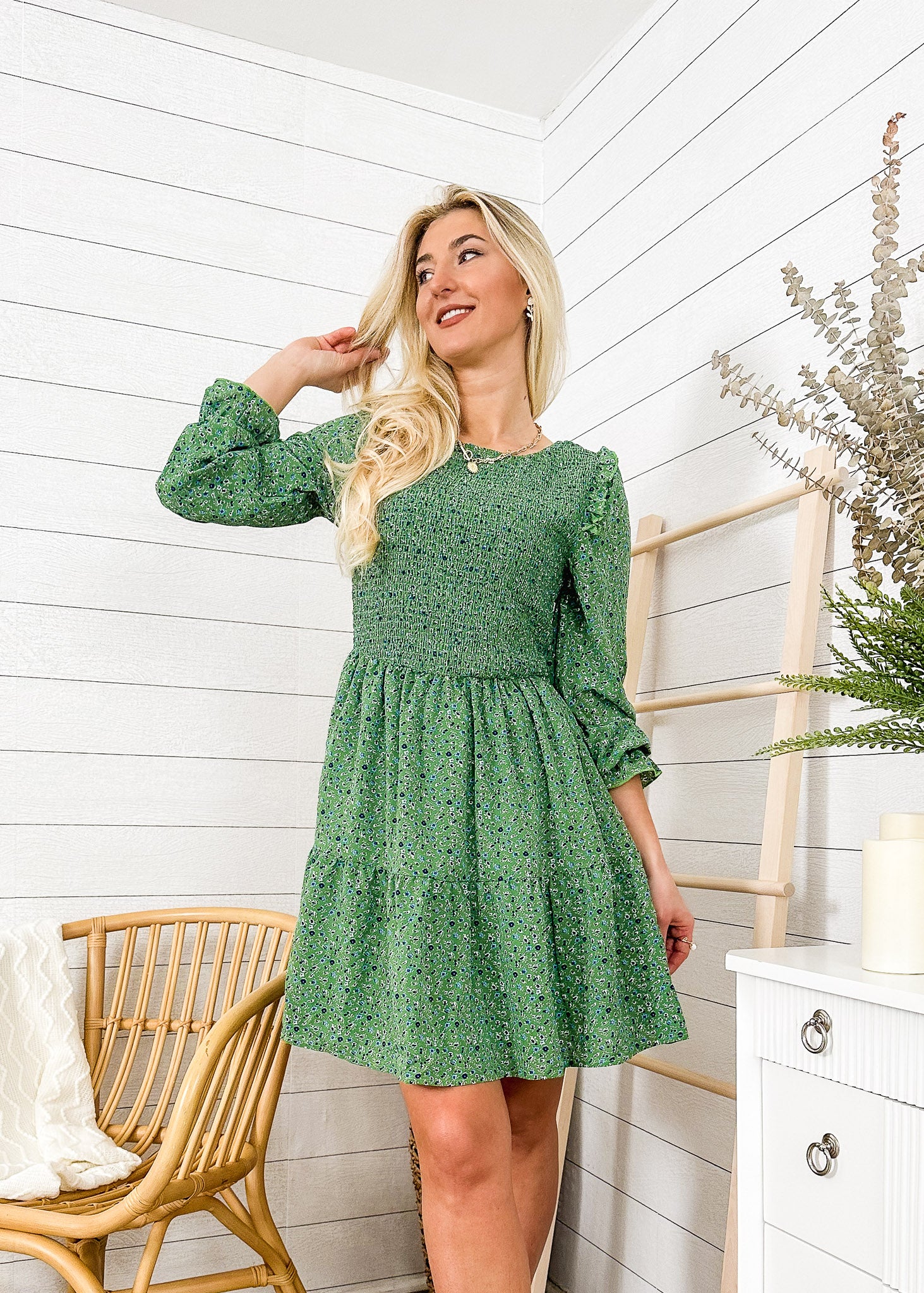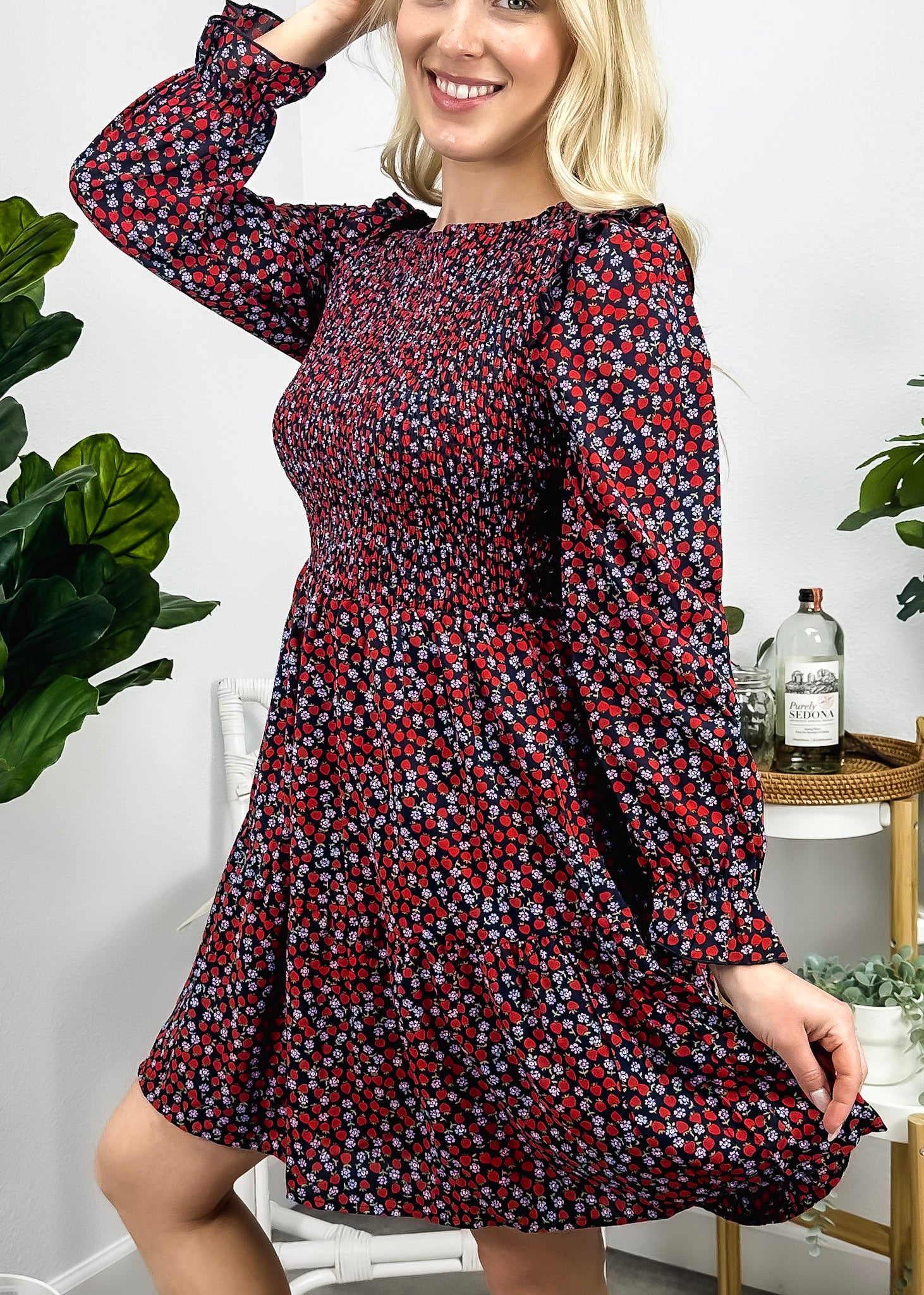 El vestido Anna-Kaci tiene un estampado floral increíblemente lindo. Tiene escote redondo, mangas largas, corpiño fruncido, falda con capas y largo por encima de la rodilla. Combínalo con un sombrero fedora y sandalias para lograr un look fabuloso.