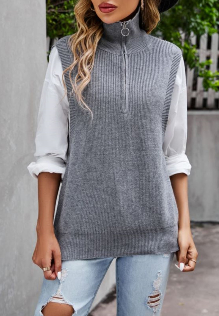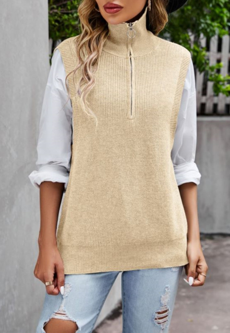 El chaleco Anna-Kaci tiene un bonito detalle de cierre con cremallera. Es de color liso, está confeccionado en tejido acanalado, no tiene mangas y tiene un corte regular. Llévalo con una camisa abotonada y unos jeans para lograr un estilo elegante.