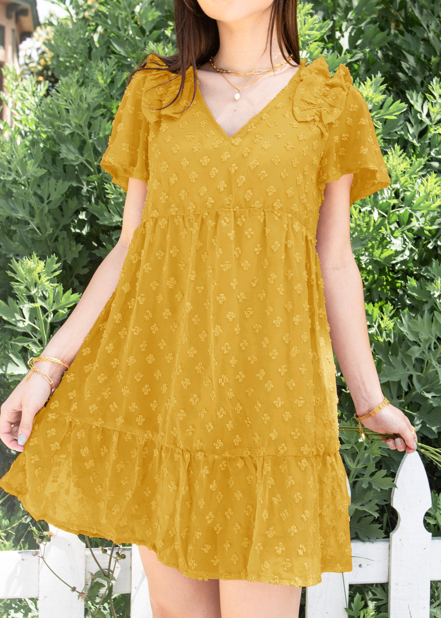 El vestido Anna-Kaci tiene un bonito volante en el hombro. Tiene escote en V, material texturizado, mangas cortas, silueta en forma de A, dobladillo con volante y largo por encima de la rodilla. Combínalo con un delicado collar y tacones para lograr un look maravilloso.