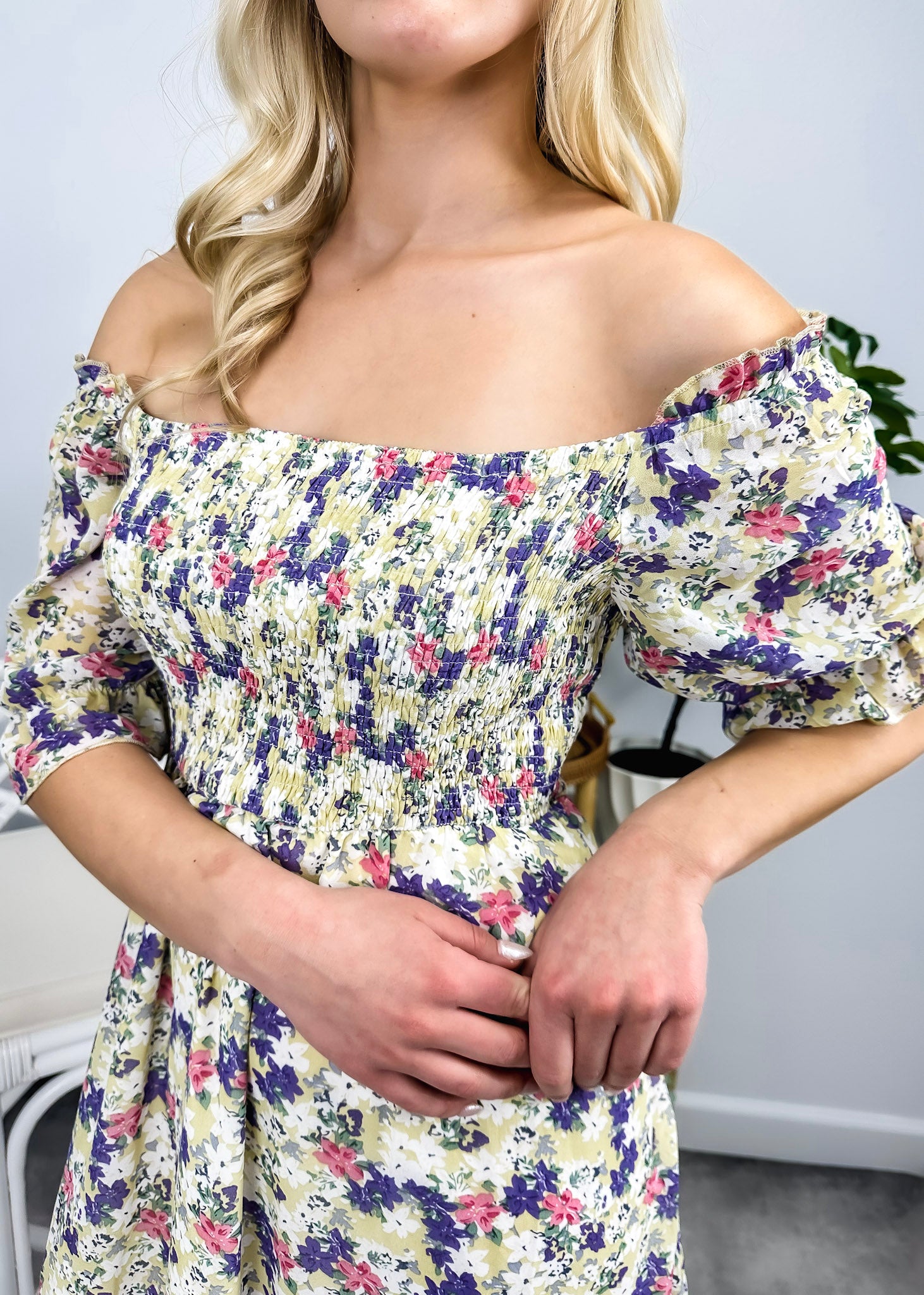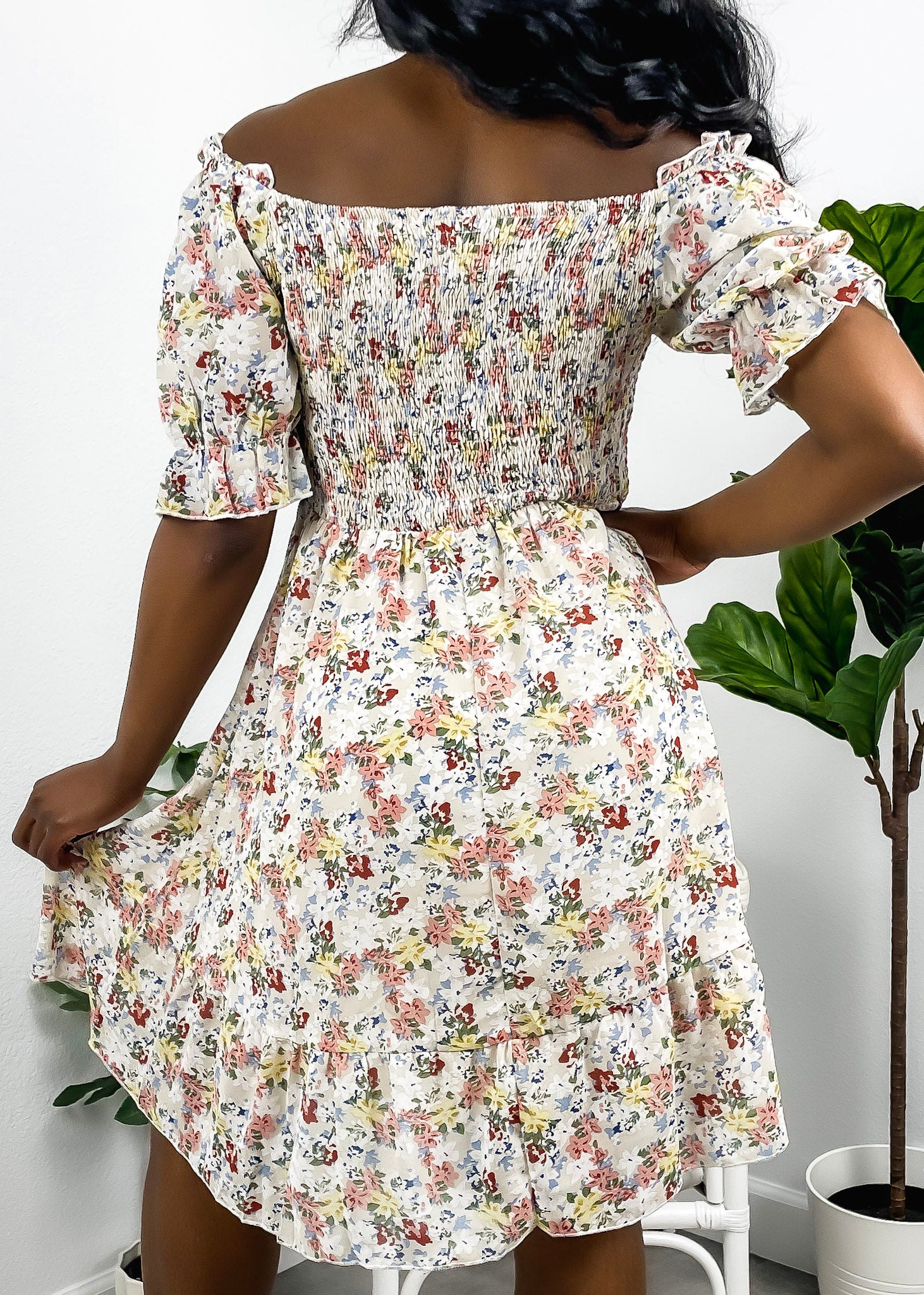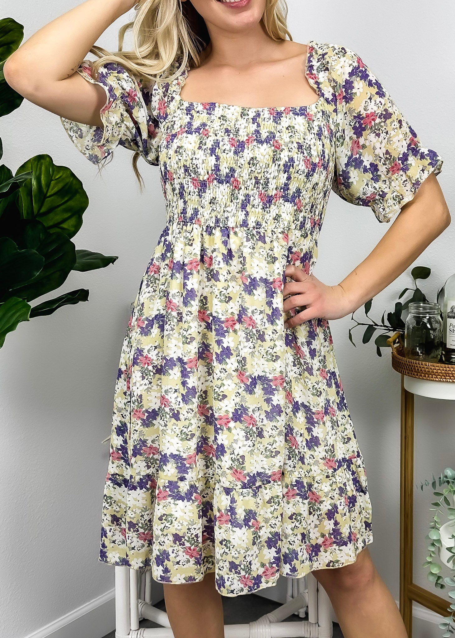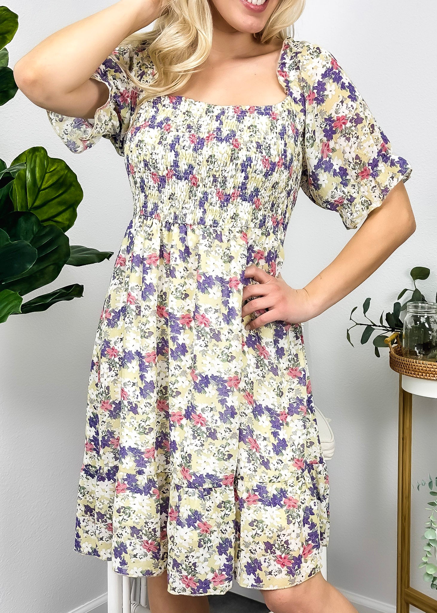 El vestido Anna-Kaci tiene hermosas mangas abullonadas. Tiene escote cuadrado, estampado floral, corpiño fruncido, falda vaporosa, dobladillo con volados y largo por encima de la rodilla. Combínalo con sandalias de tiras y un collar para lograr un look encantador.