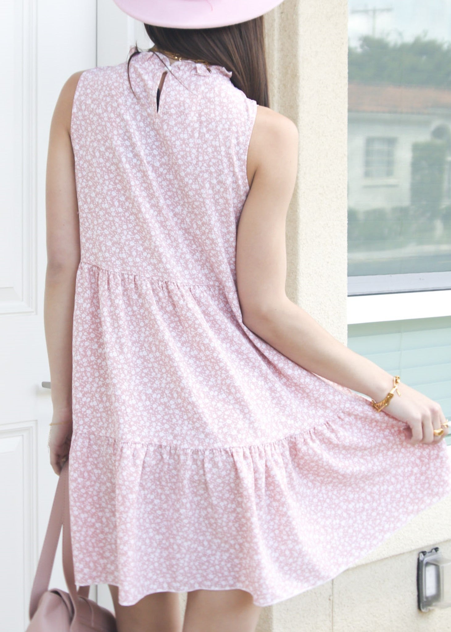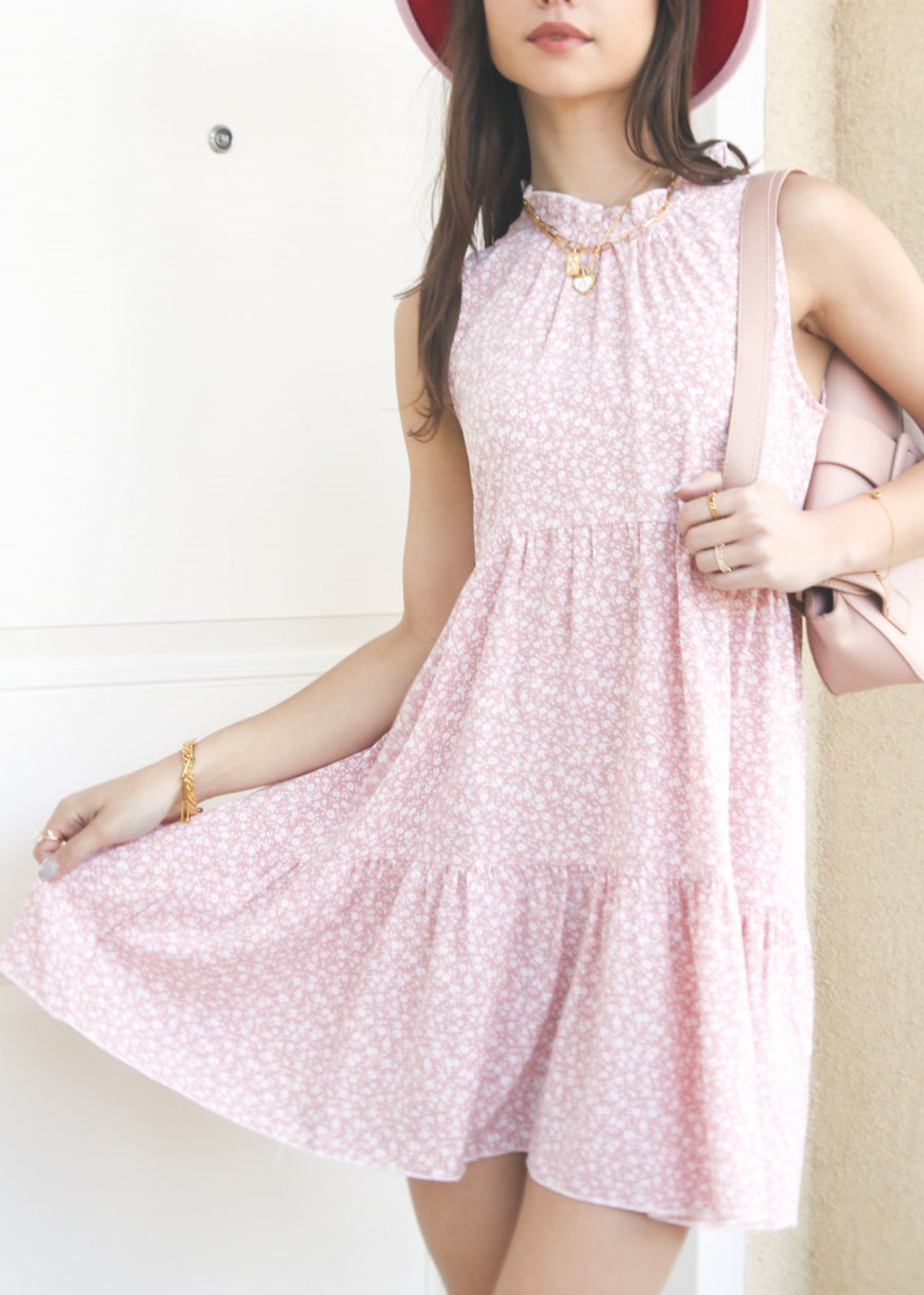 El vestido Anna-Kaci tiene un bonito escote alto con volantes. Tiene un estampado floral, un detalle de escote en forma de cerradura en la espalda, sin mangas, diseño escalonado y largo por encima de la rodilla. Combínalo con una diadema y sandalias para lograr un look delicado.