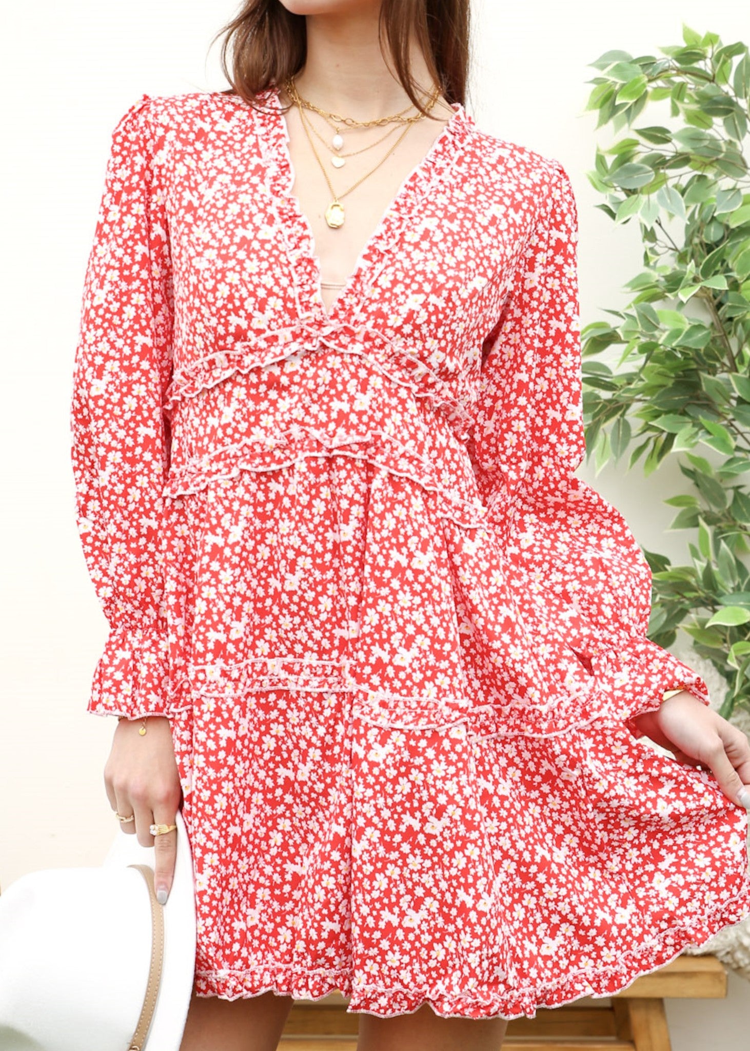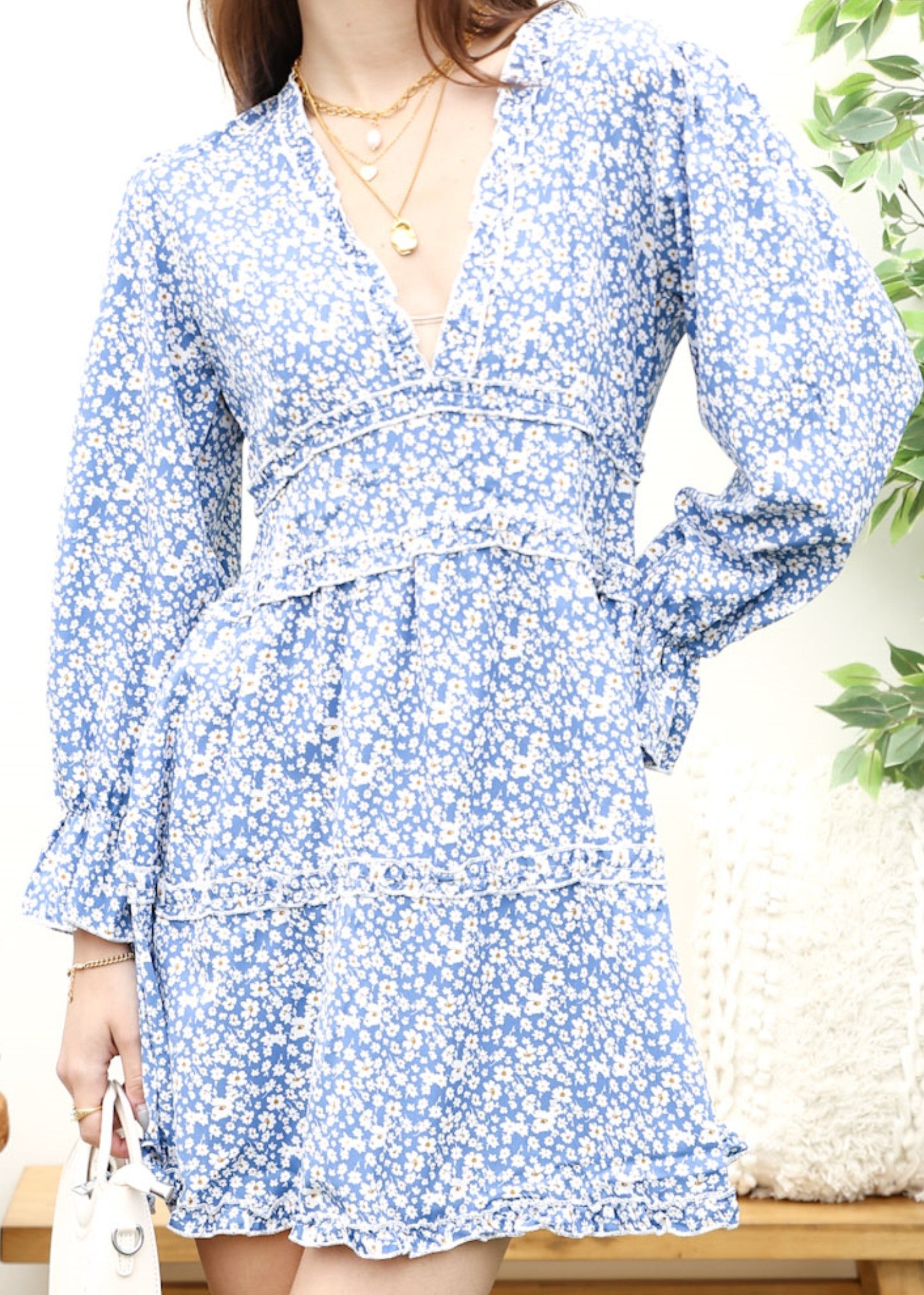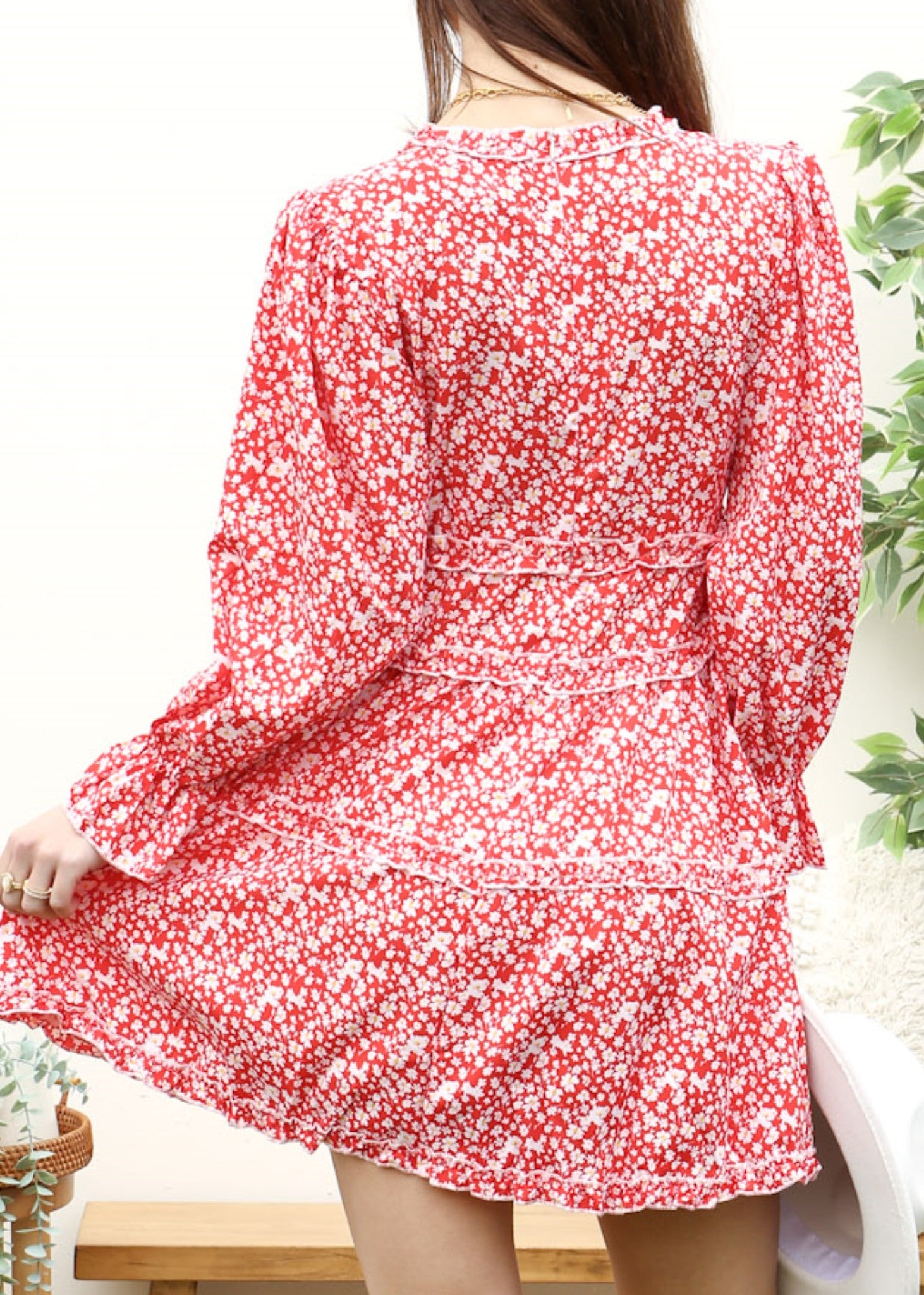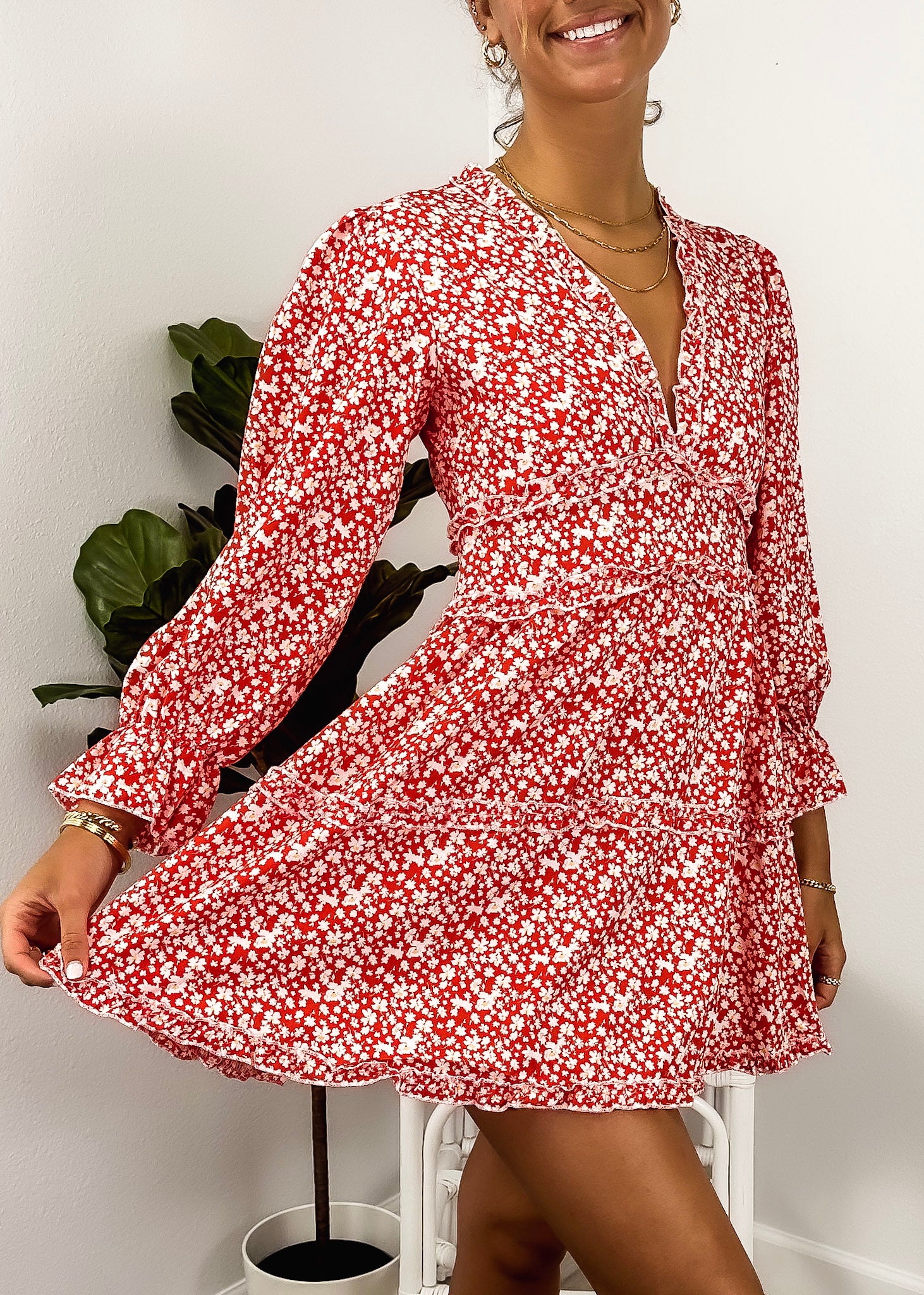 El vestido Anna-Kaci tiene un bonito detalle de volante. Tiene un estampado floral, escote pronunciado, mangas abullonadas, falda vaporosa y largo por encima de la rodilla. Combínalo con un moño para el pelo y tacones para lograr un look femenino.