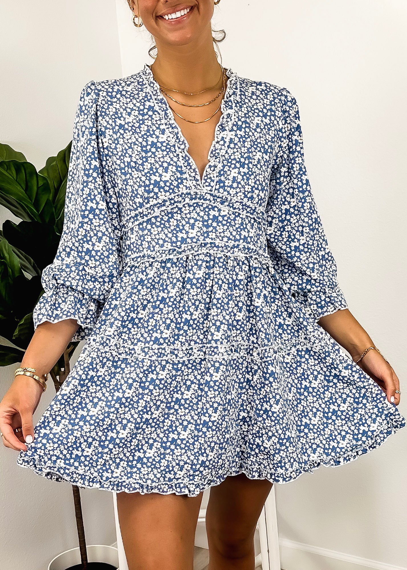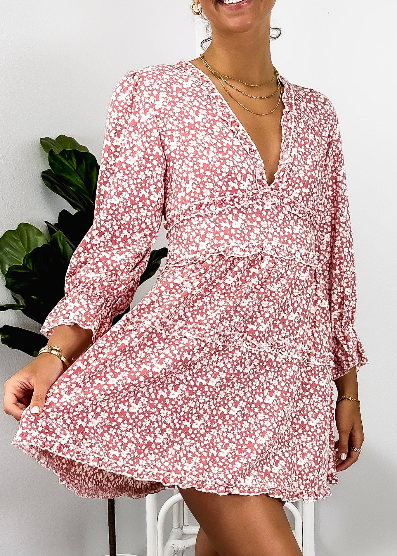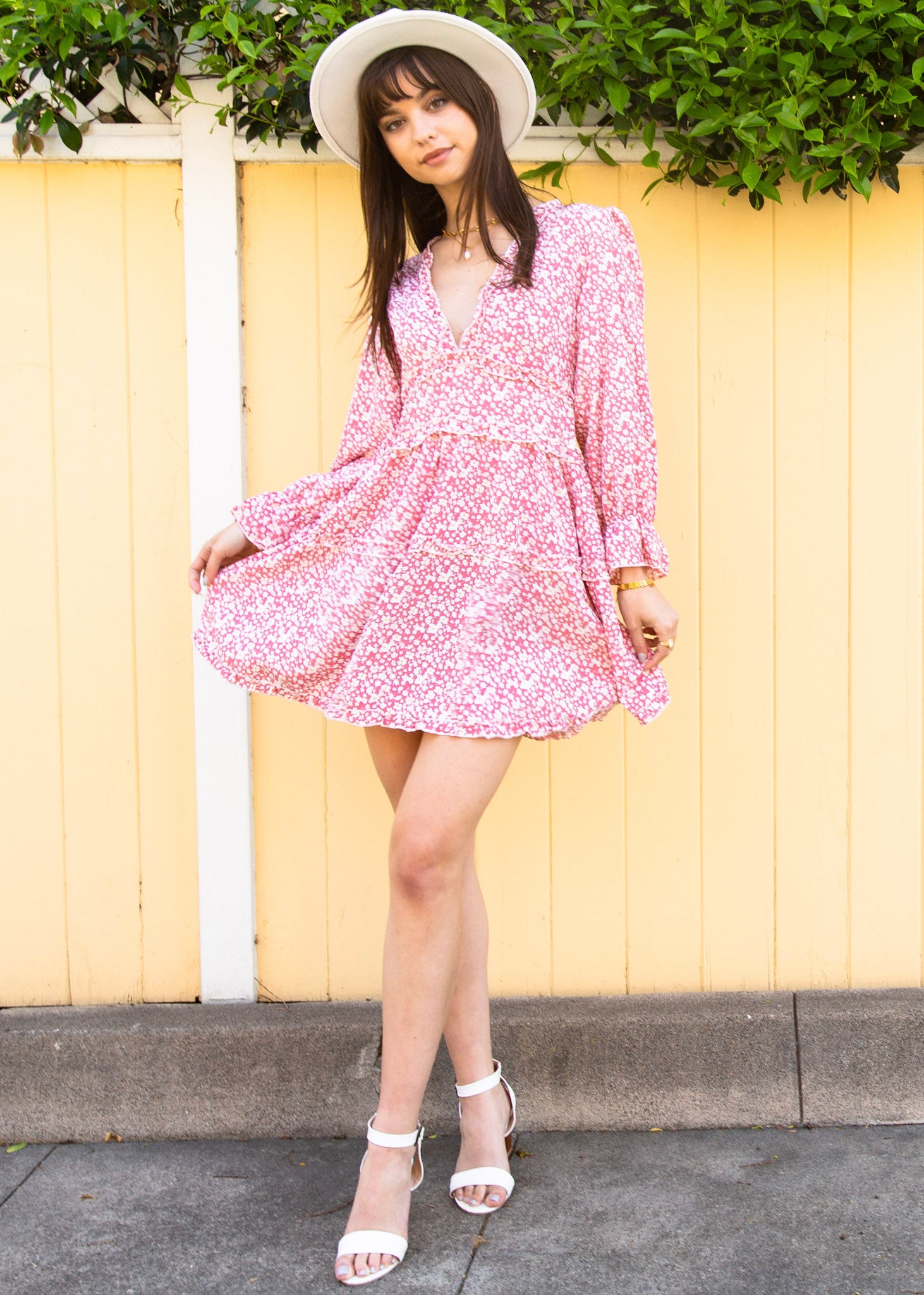 El vestido Anna-Kaci tiene un bonito detalle de volante. Tiene un estampado floral, escote pronunciado, mangas abullonadas, falda vaporosa y largo por encima de la rodilla. Combínalo con un moño para el pelo y tacones para lograr un look femenino.