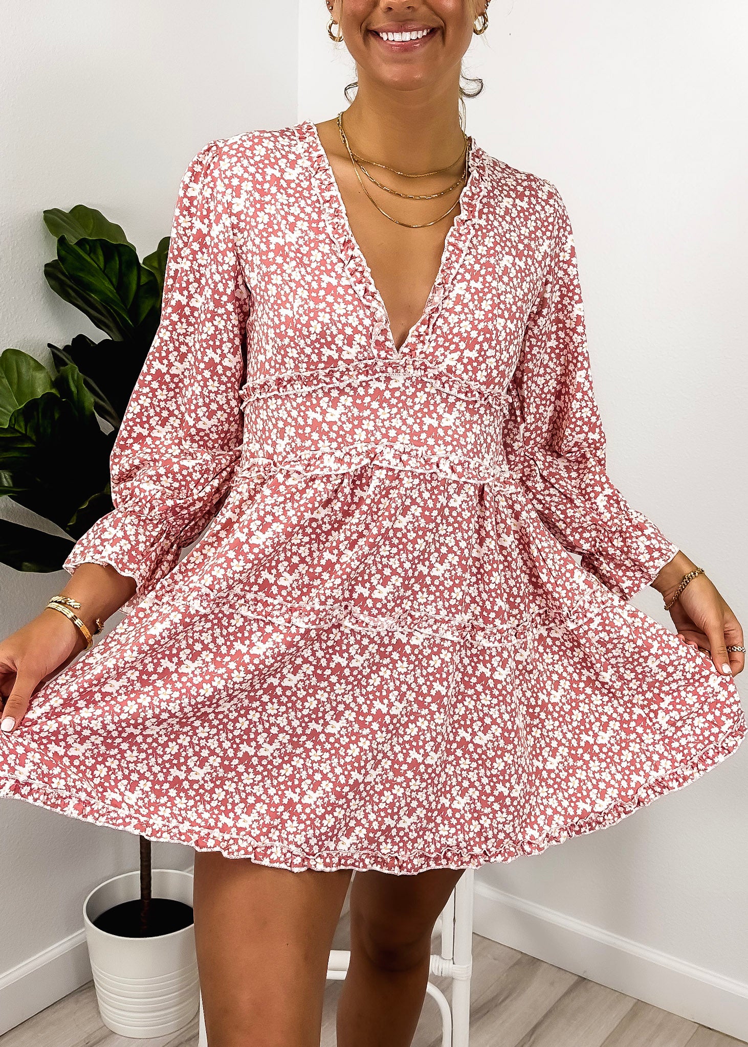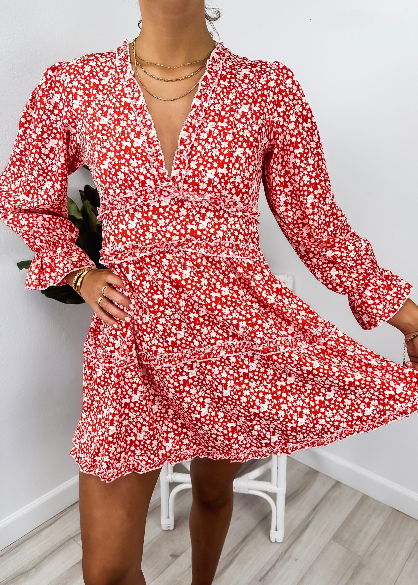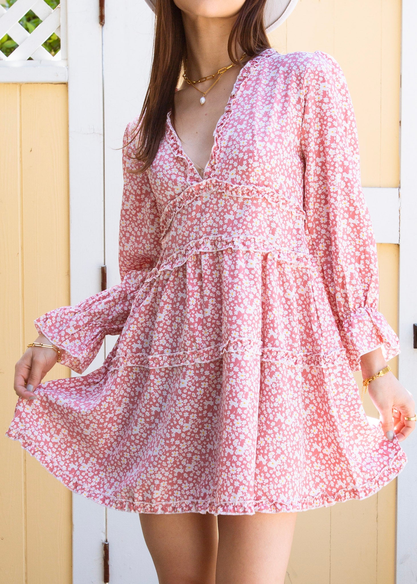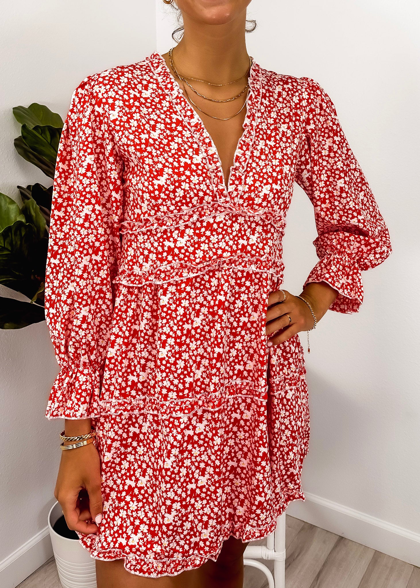 El vestido Anna-Kaci tiene un bonito detalle de volante. Tiene un estampado floral, escote pronunciado, mangas abullonadas, falda vaporosa y largo por encima de la rodilla. Combínalo con un moño para el pelo y tacones para lograr un look femenino.