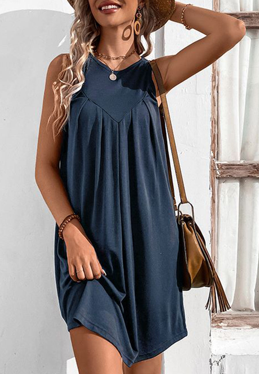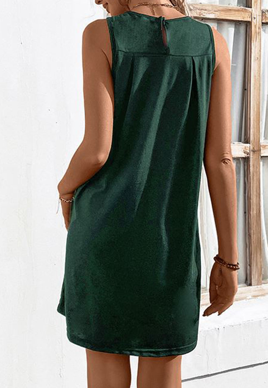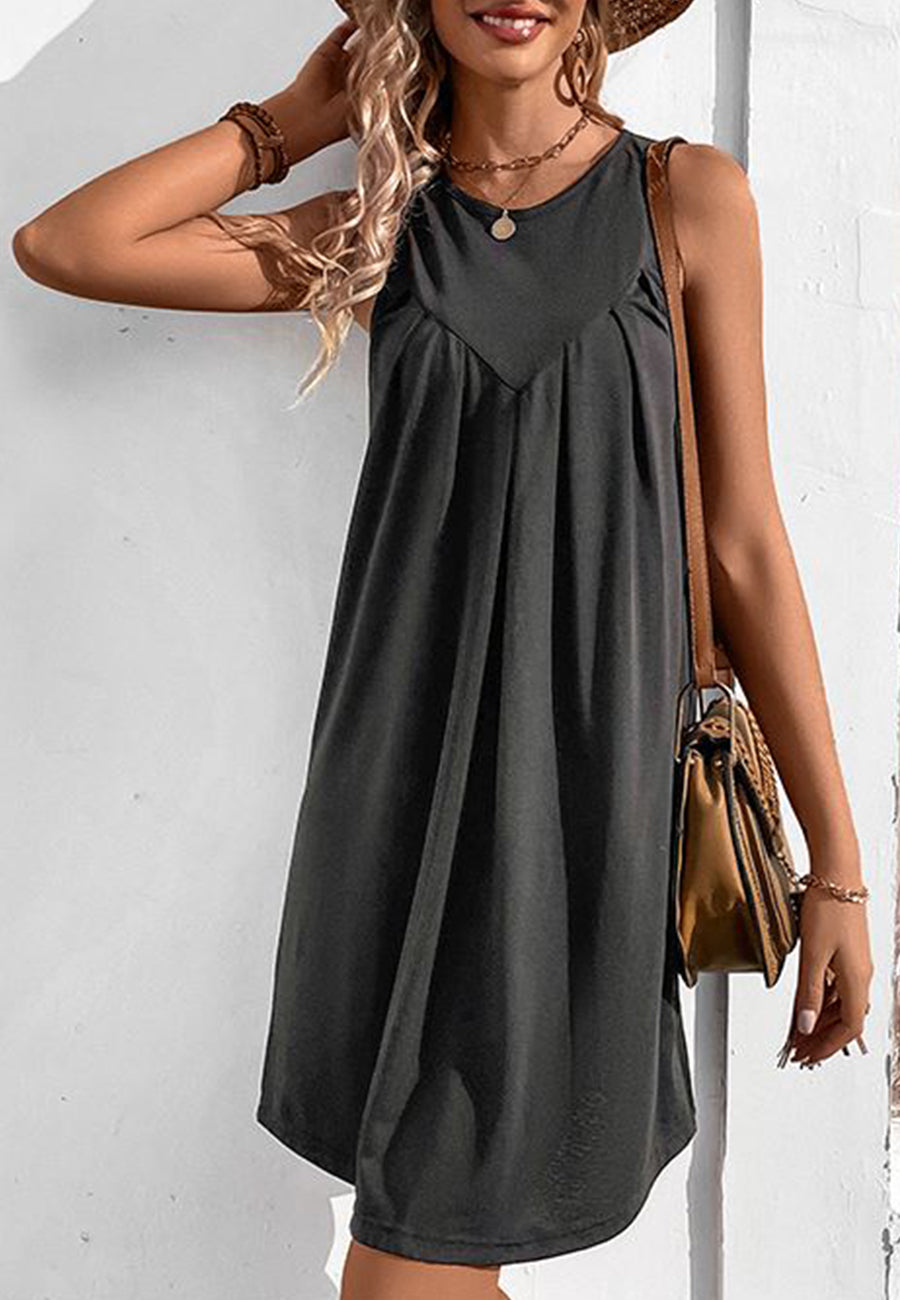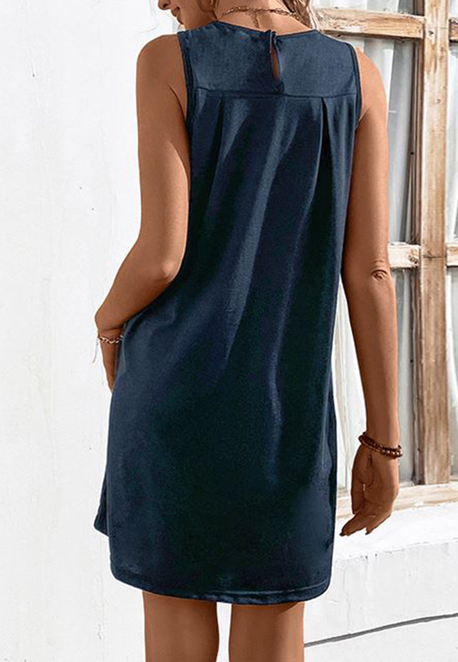 El vestido Anna-Kaci tiene una silueta favorecedora de vestido recto. Es de color liso, tiene escote redondo, no tiene mangas y llega por encima de la rodilla. Combínalo con pendientes llamativos y tacones para lograr un look elegante.