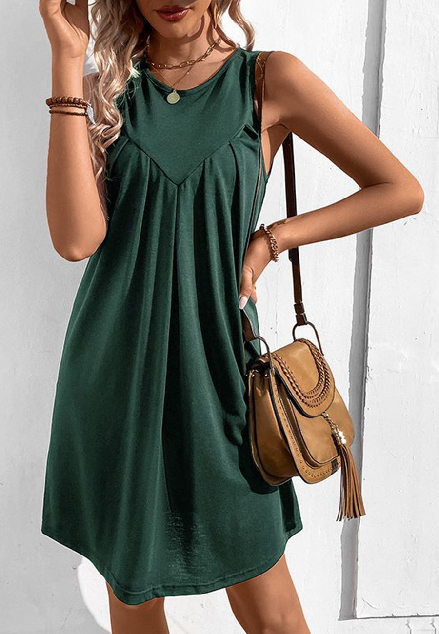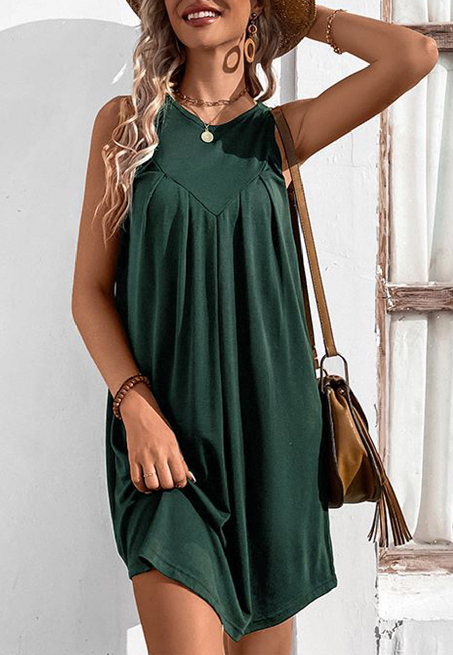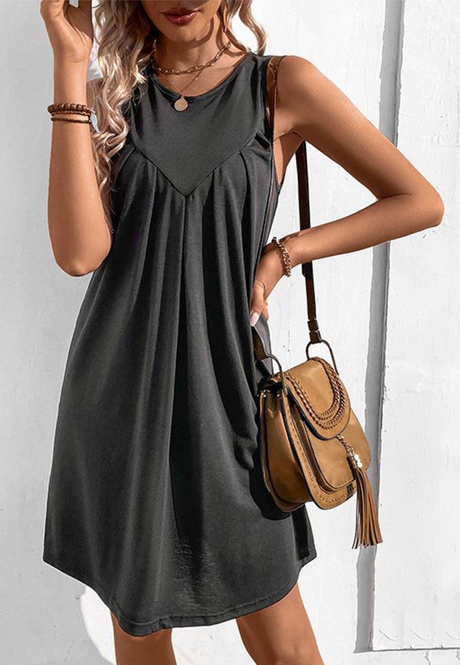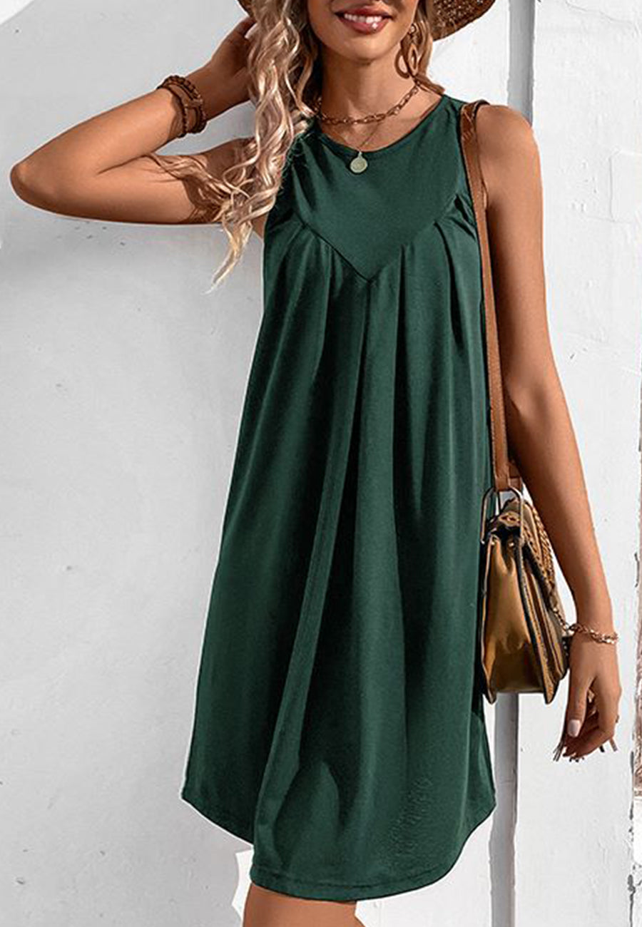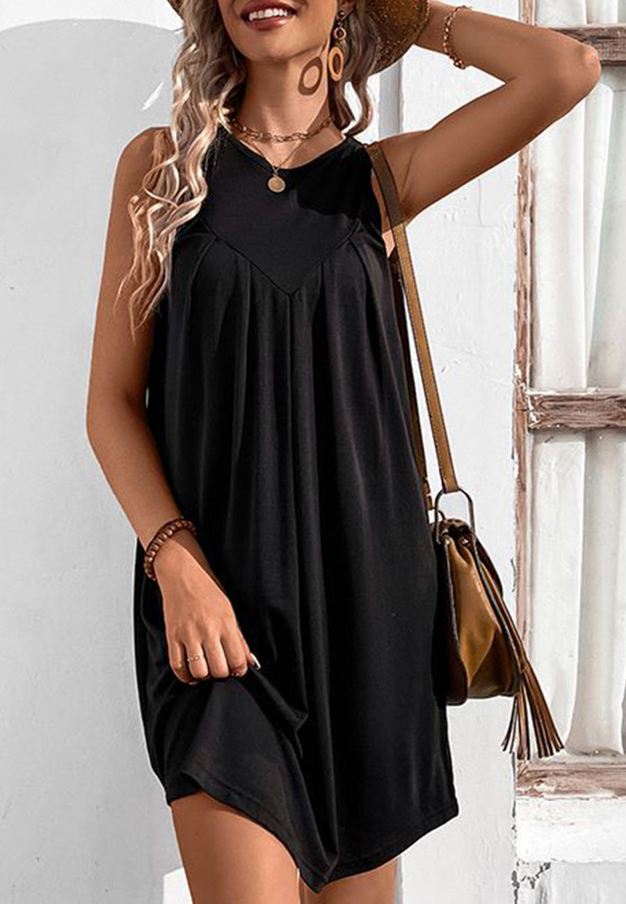 El vestido Anna-Kaci tiene una silueta favorecedora de vestido recto. Es de color liso, tiene escote redondo, no tiene mangas y llega por encima de la rodilla. Combínalo con pendientes llamativos y tacones para lograr un look elegante.