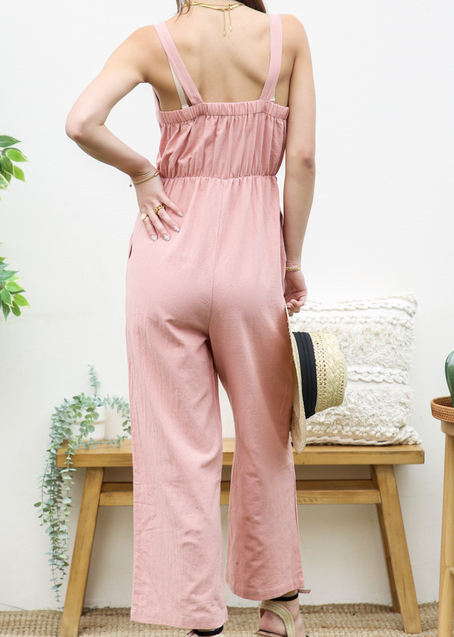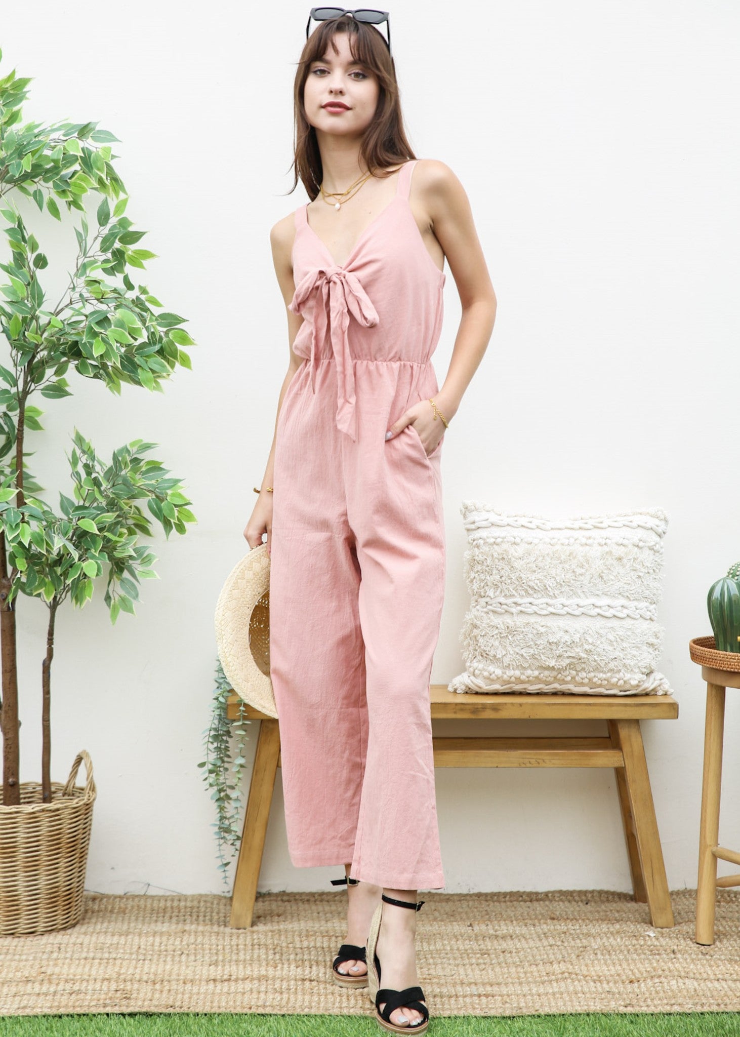 El mono Anna-Kaci tiene un bonito diseño con lazo en la parte delantera. Tiene un color liso, tirantes finos, corte recto y largo por encima del tobillo. Combínalo con un bolso y tacones para lograr un look fantástico.