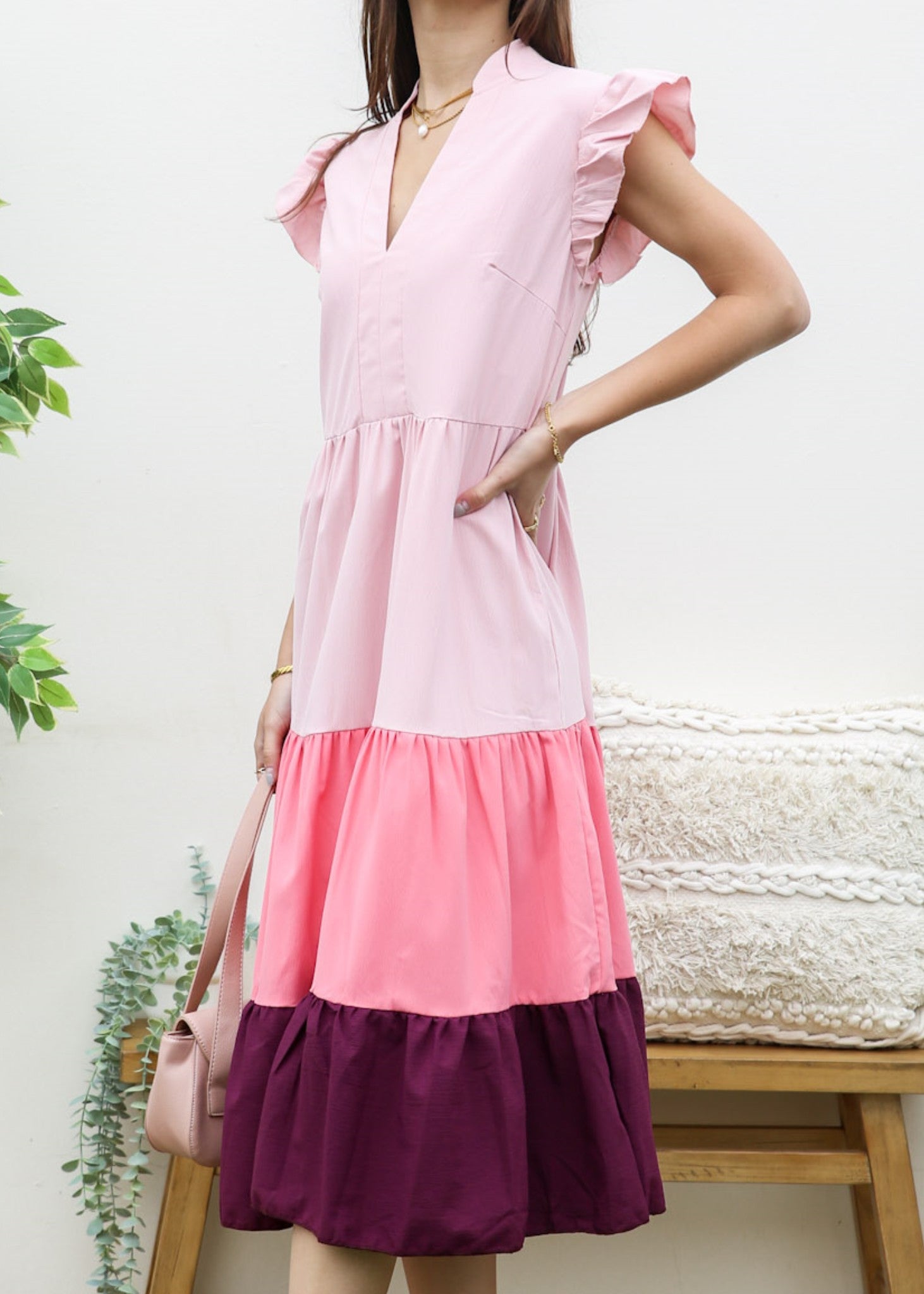 El vestido Anna-Kaci tiene un patrón de bloques de colores único. Tiene escote en V, mangas con volados, falda suelta y largo por debajo de la rodilla. Combínalo con una diadema y sandalias para lograr un look lindo.