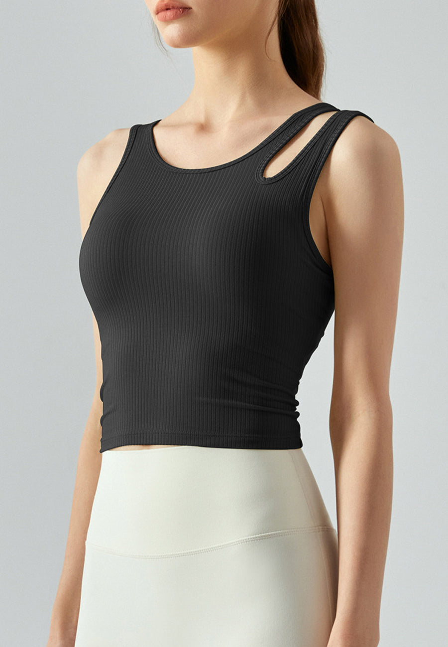 La camiseta Anna-Kaci tiene un corte único en el hombro. Es de color liso, está confeccionada en tejido acanalado, no tiene mangas y tiene un corte ajustado. Combínala con jeans de cintura alta y sandalias para lograr un look encantador.