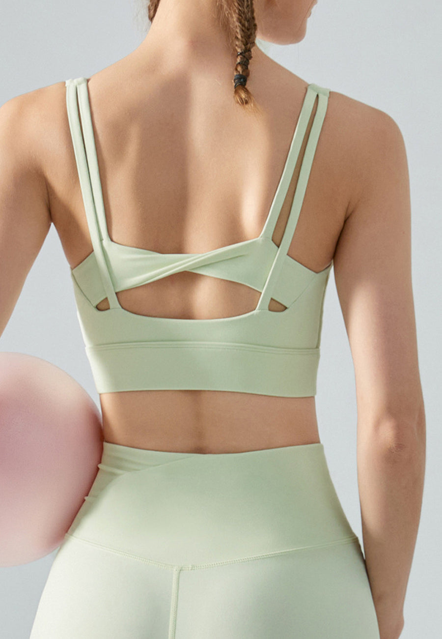 La blusa Anna-Kaci tiene un diseño moderno de doble tira en la espalda. Tiene un color liso, escote redondo, sin mangas, detalle de espalda torcida, corte ajustado y largo corto. Combínala con pantalones cortos de ciclista y zapatillas para lograr un estilo moderno.