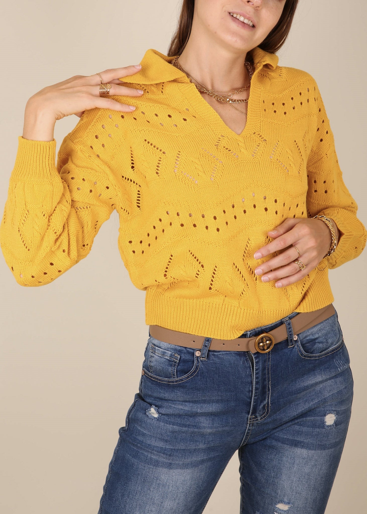 El suéter Anna-Kaci está elaborado con un bonito tejido de punto con ojales. Tiene un color liso, cuello, hombros caídos, mangas largas y un corte holgado. Combínalo con jeans deshilachados y botas para lograr un hermoso look.