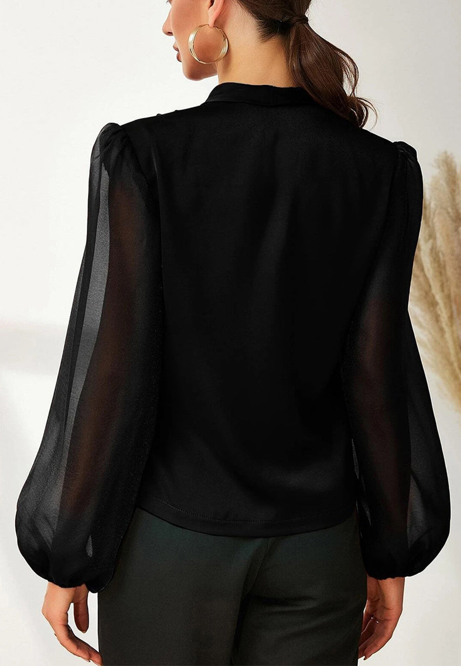 La blusa Anna-Kaci tiene hermosas mangas estilo obispo. Es de color liso, tiene escote cruzado y un corte regular. Combínala con pantalones pitillo y tacones para lograr un look sofisticado.