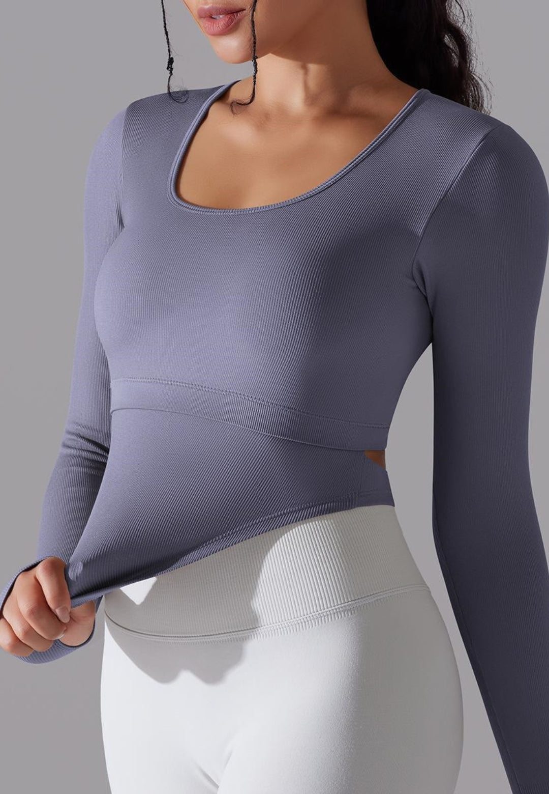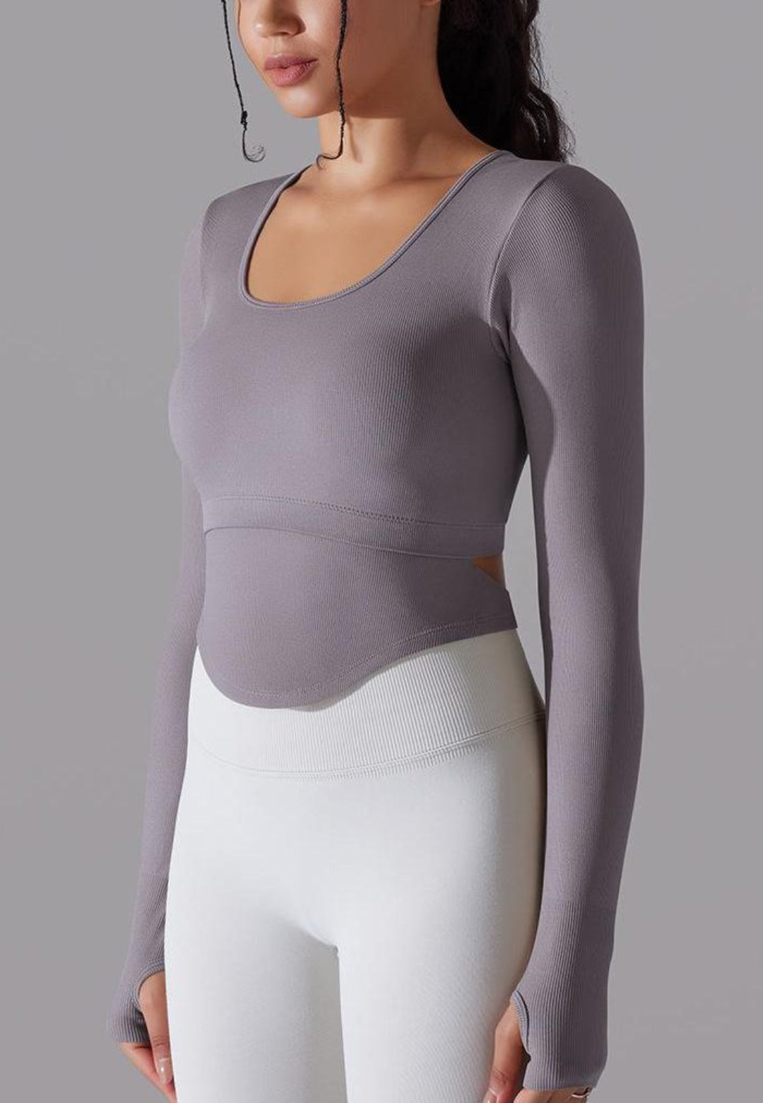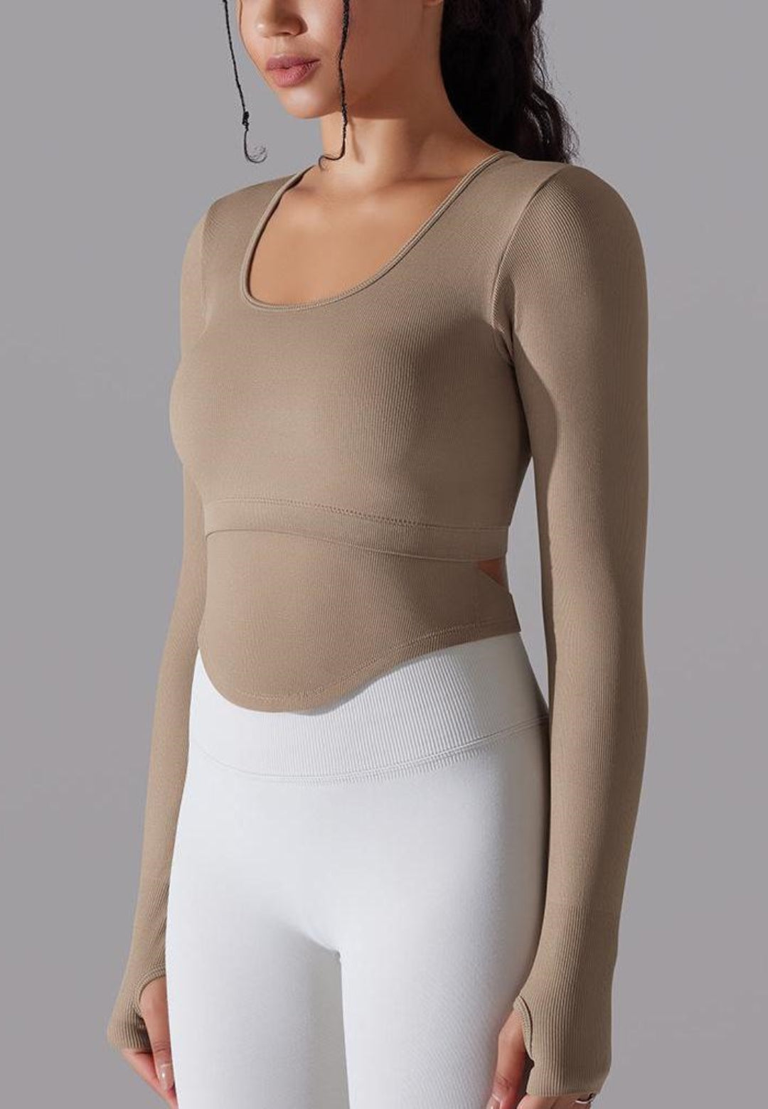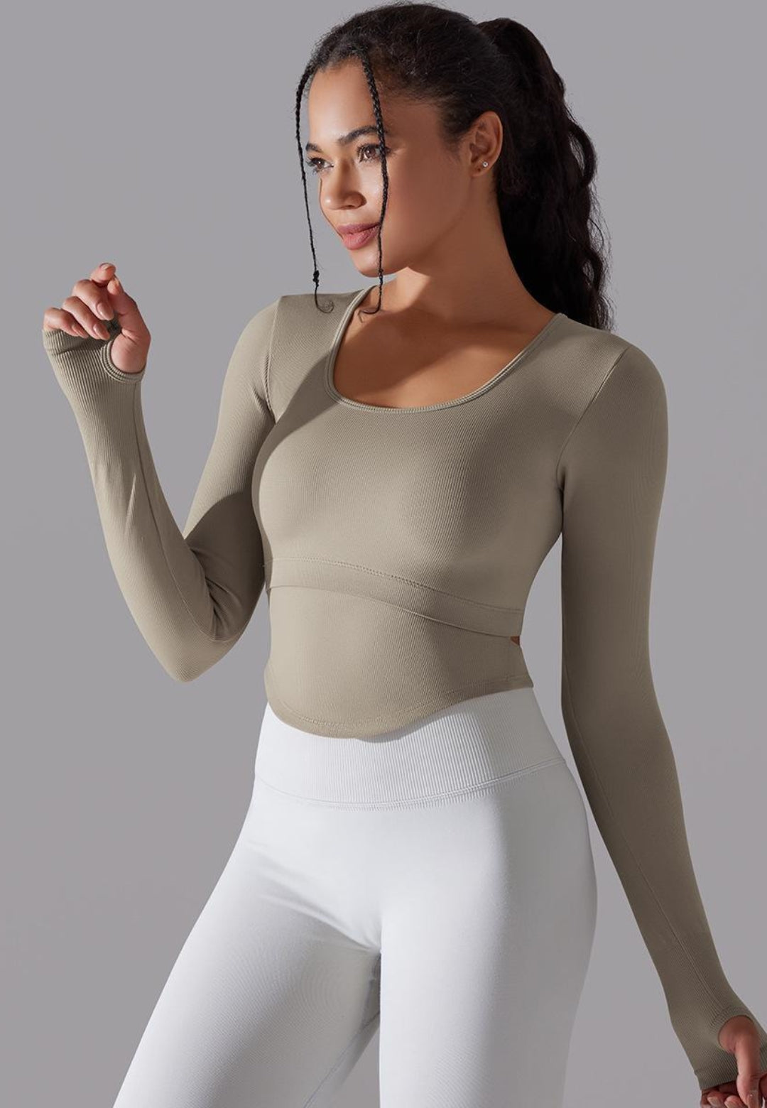 La parte superior tiene un bonito escote en la espalda. Está confeccionada en tejido de punto, tiene escote en U, mangas largas, dobladillo curvo y silueta ajustada. Combínala con pantalones deportivos y zapatillas para lucir un look maravilloso.