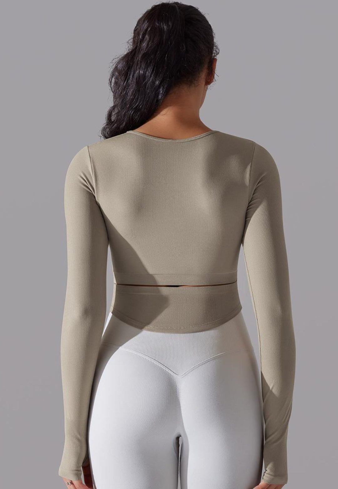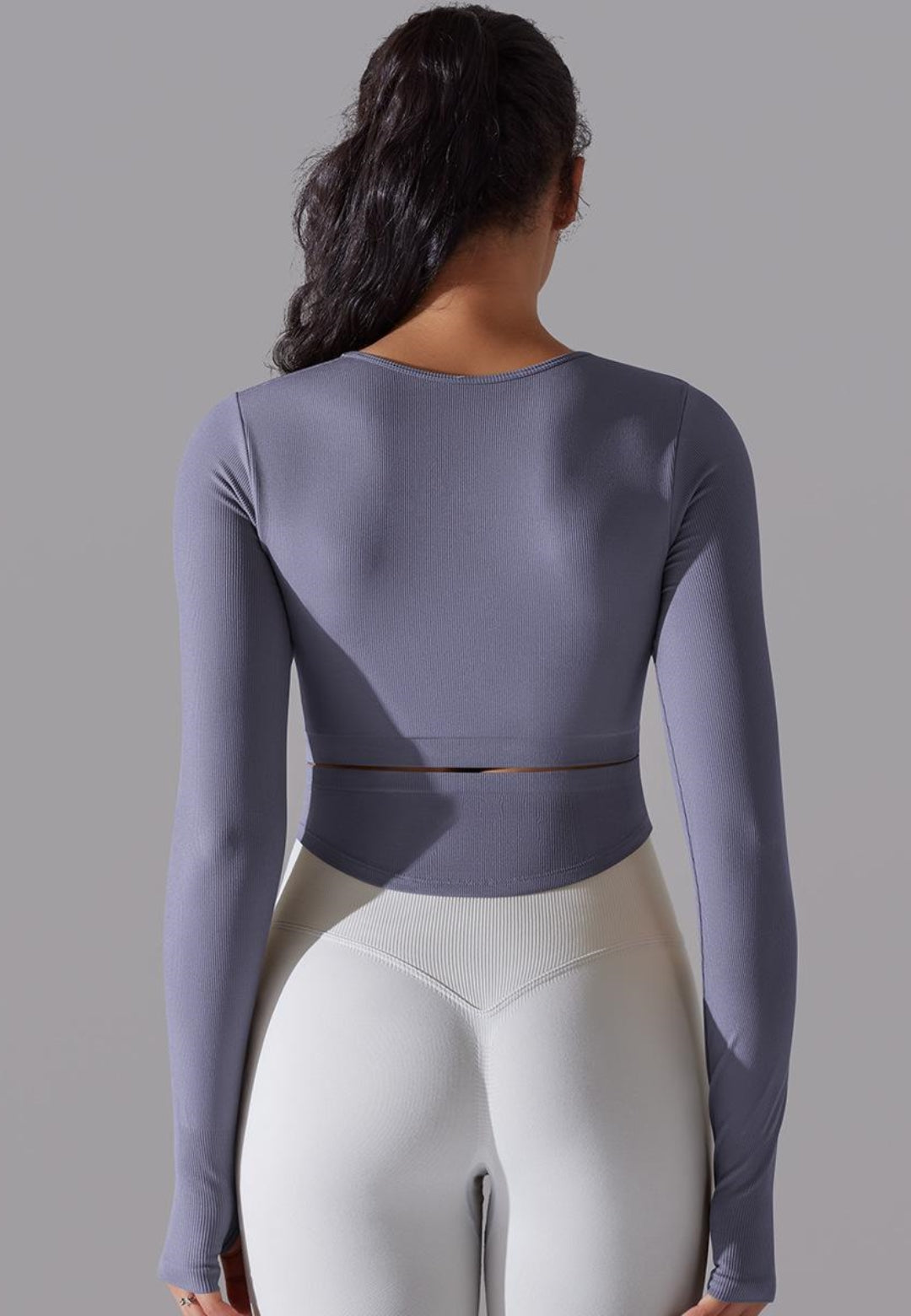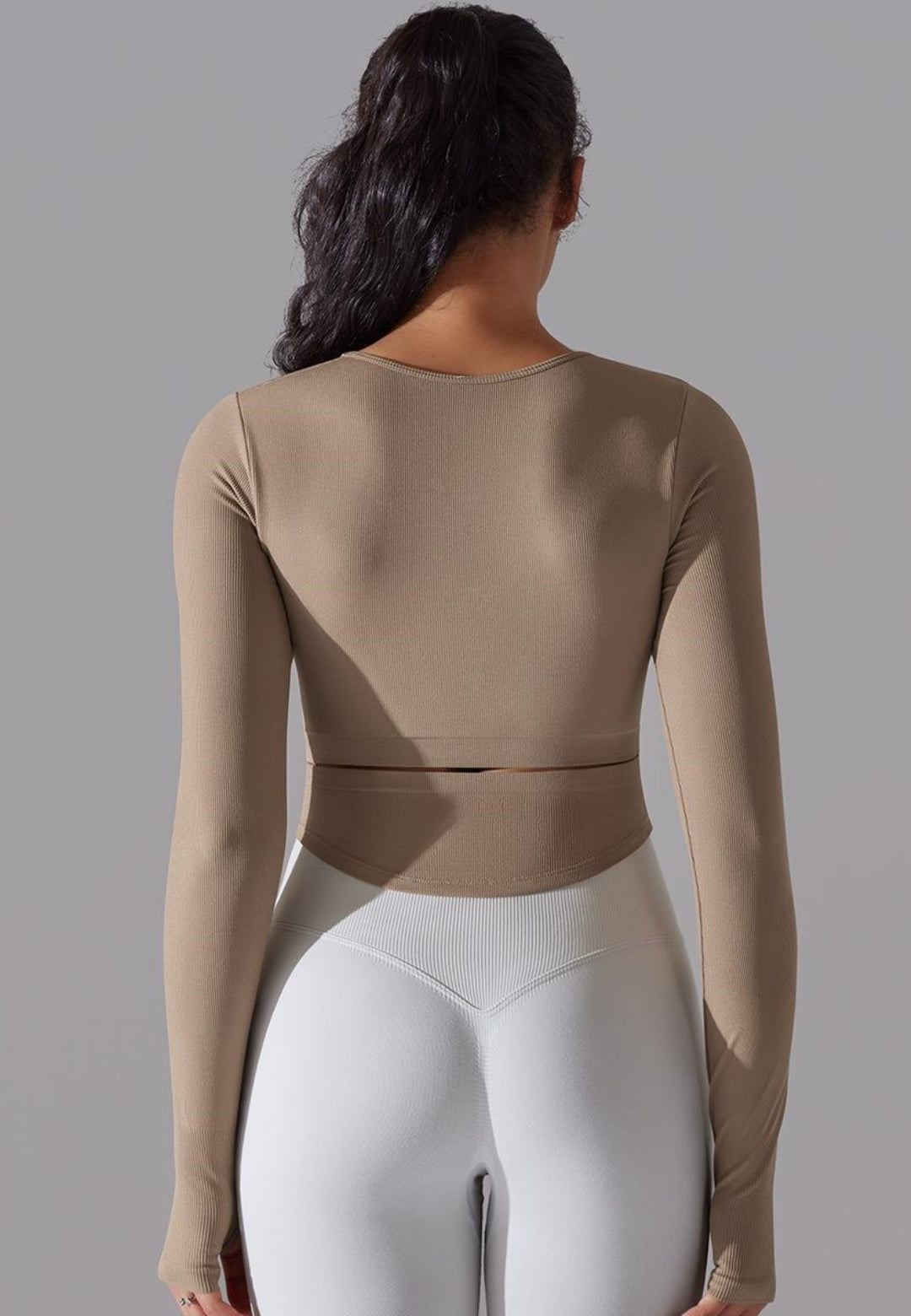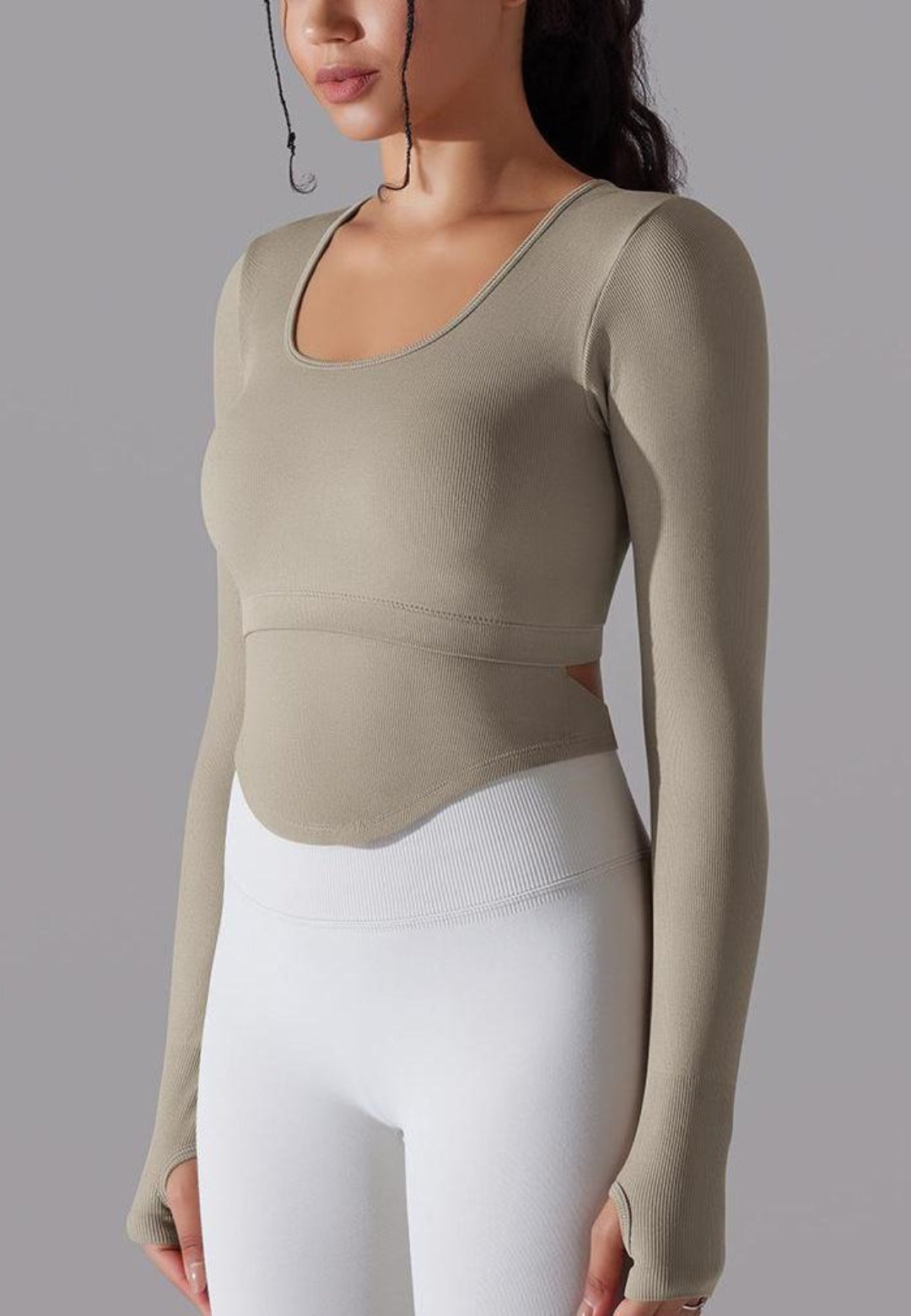 La parte superior tiene un bonito escote en la espalda. Está confeccionada en tejido de punto, tiene escote en U, mangas largas, dobladillo curvo y silueta ajustada. Combínala con pantalones deportivos y zapatillas para lucir un look maravilloso.