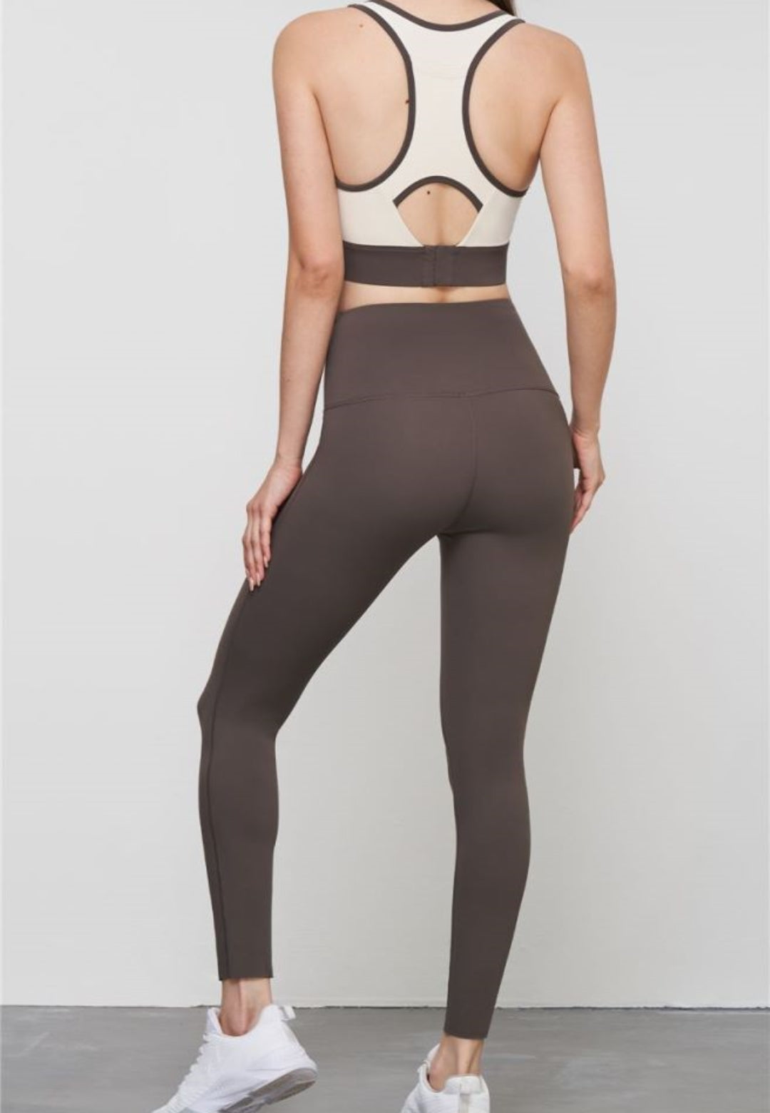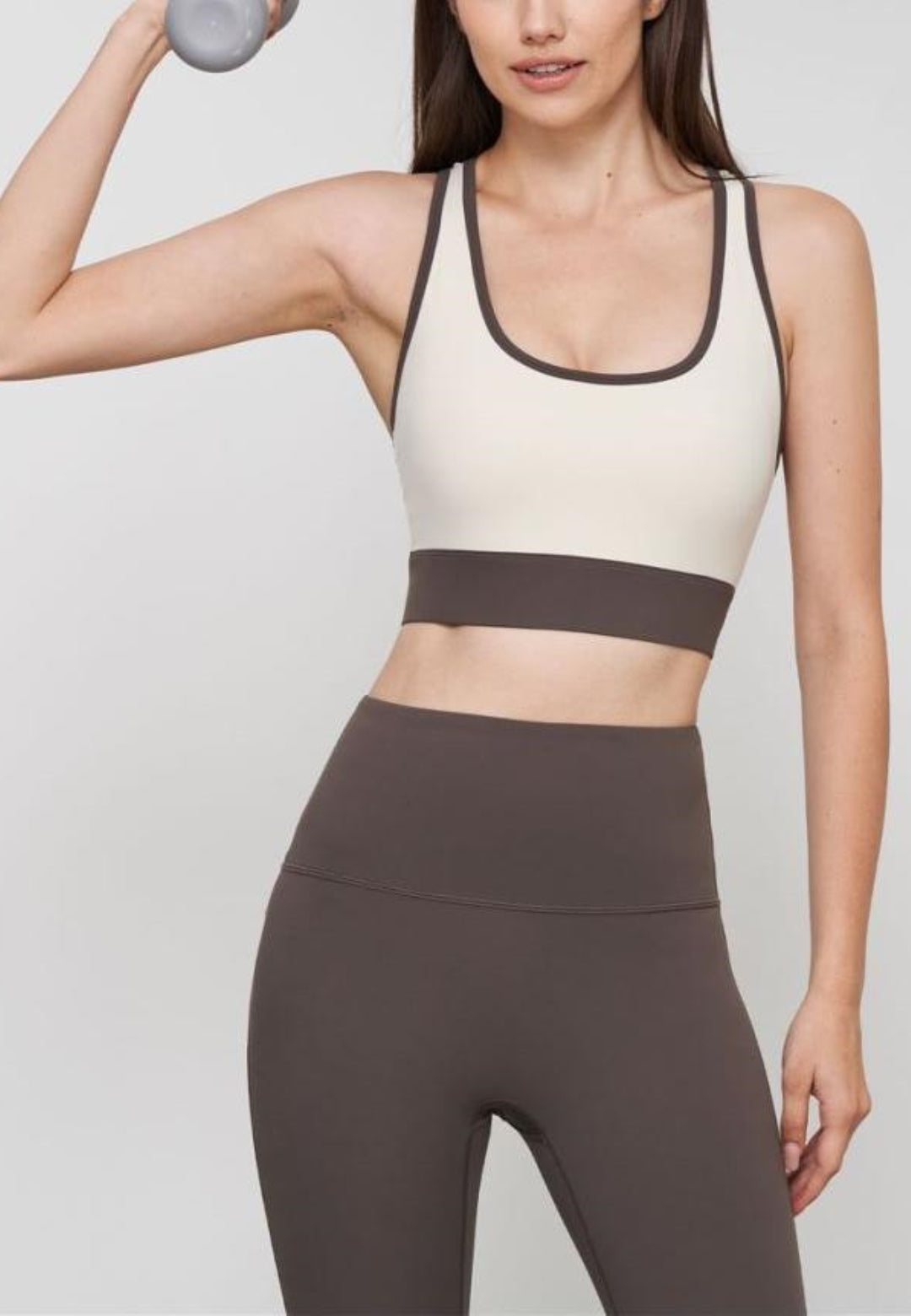 El sujetador deportivo tiene un escote en U, un diseño de dos tonos y un ajuste ceñido al cuerpo. Combínalo con leggings y zapatillas para lograr un look divertido.