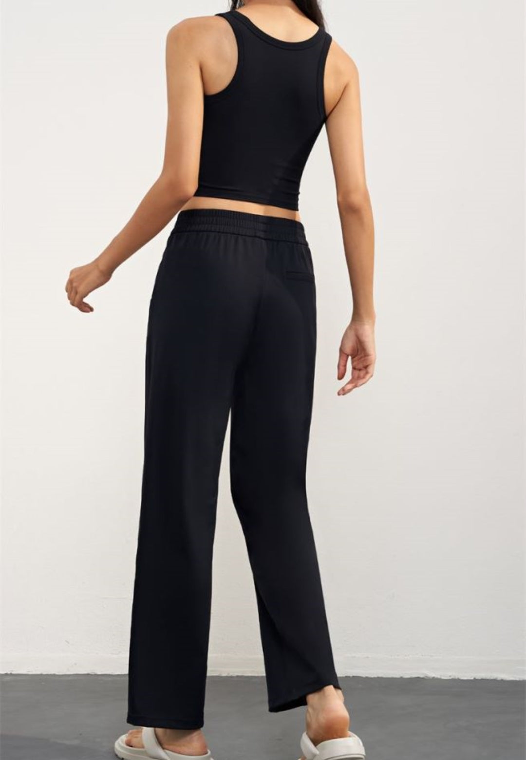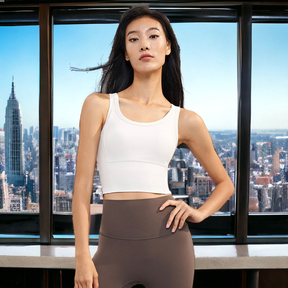 La parte superior tiene un escote redondo clásico. Es de color liso, sin mangas y tiene un largo corto. Combínala con leggings y zapatillas para lograr un estilo relajado.