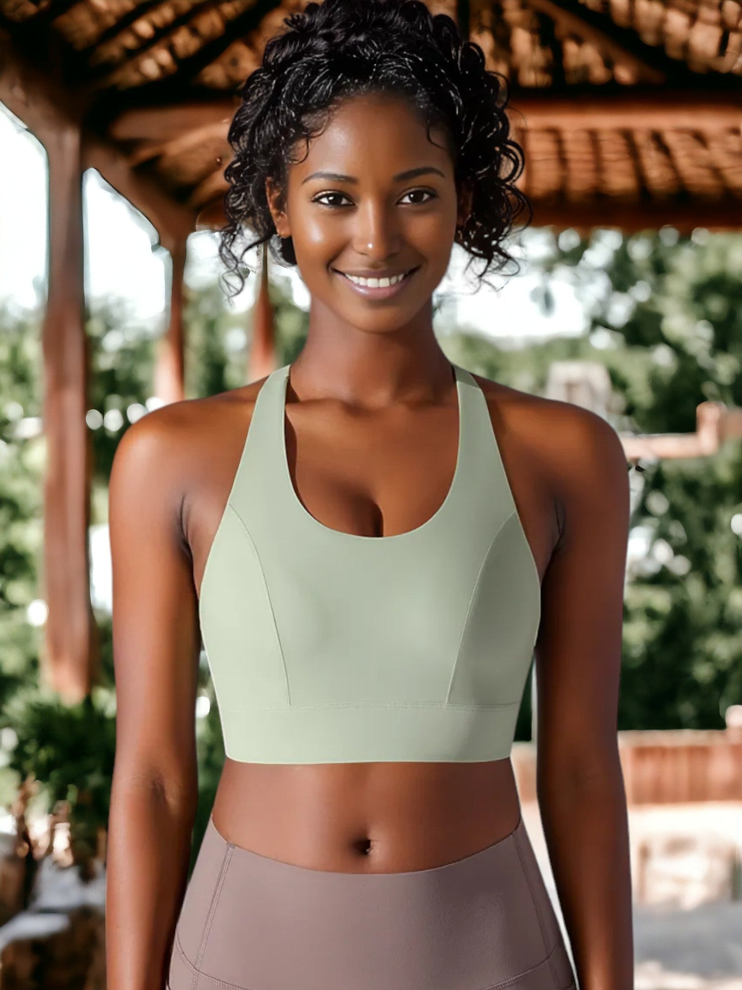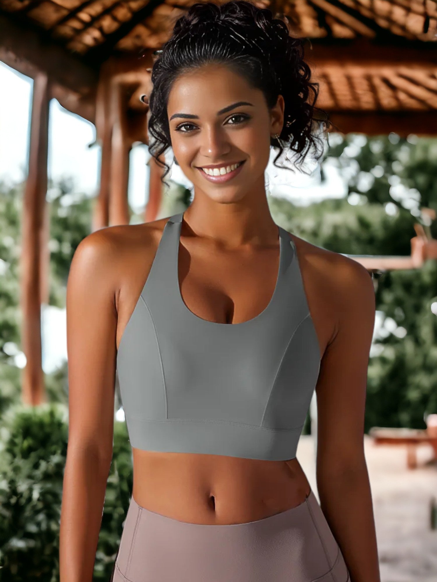 Sujetador deportivo sin costuras con escote en U y espalda cruzada