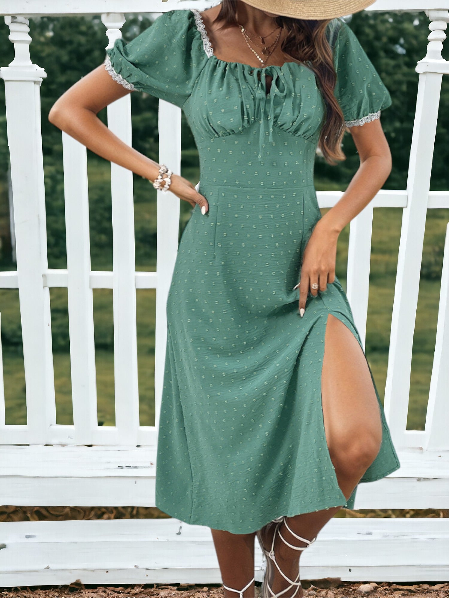 Descubra la elegancia atemporal con nuestro vestido vintage con abertura y escote cuadrado. Este vestido, confeccionado con una exquisita atención al detalle, combina el encanto vintage con un estilo moderno. Con un favorecedor escote cuadrado y una abertura sutil pero seductora, es perfecto para cualquier ocasión. ¡Compre ahora y destaque con esta pieza clásica!