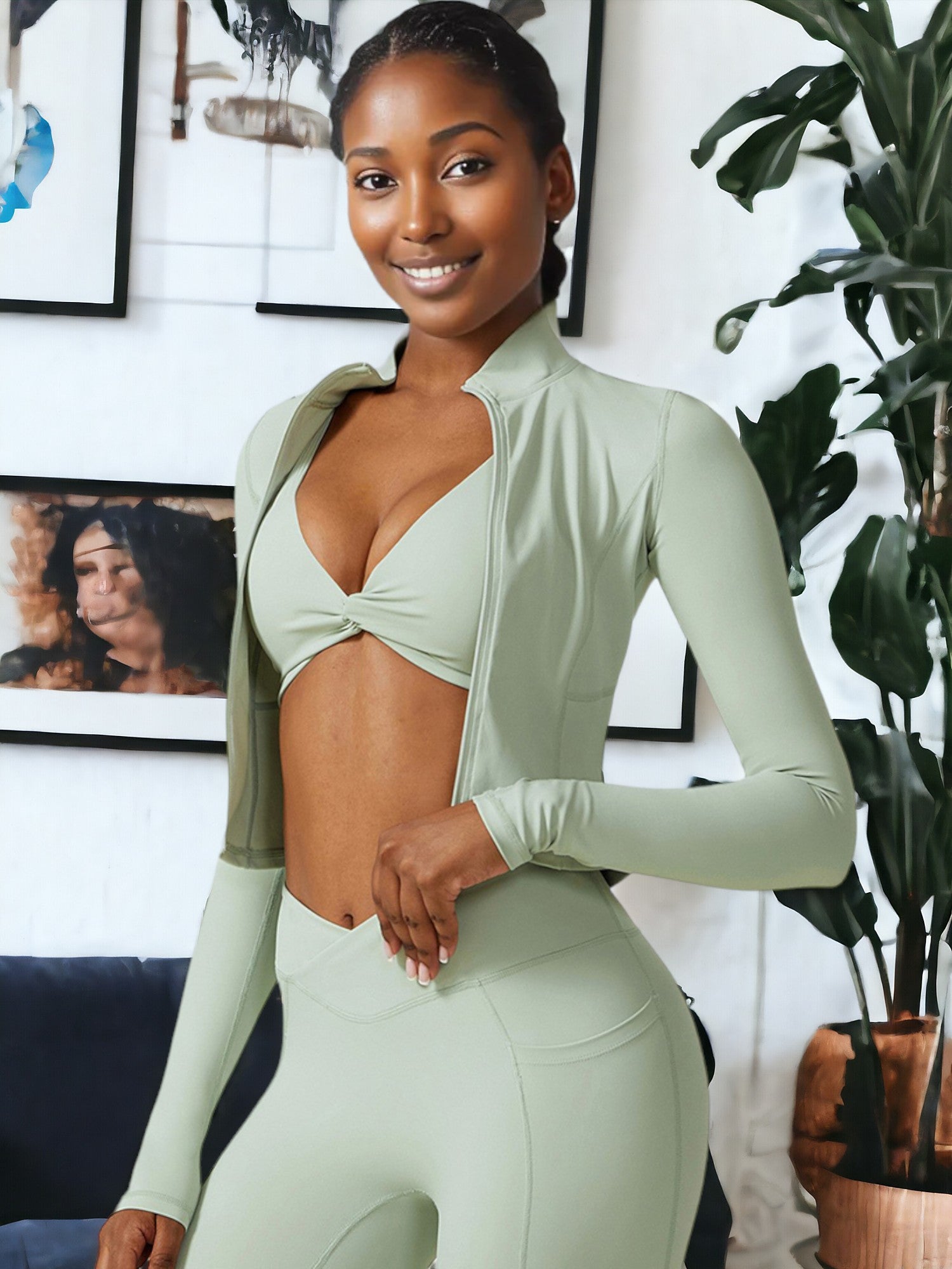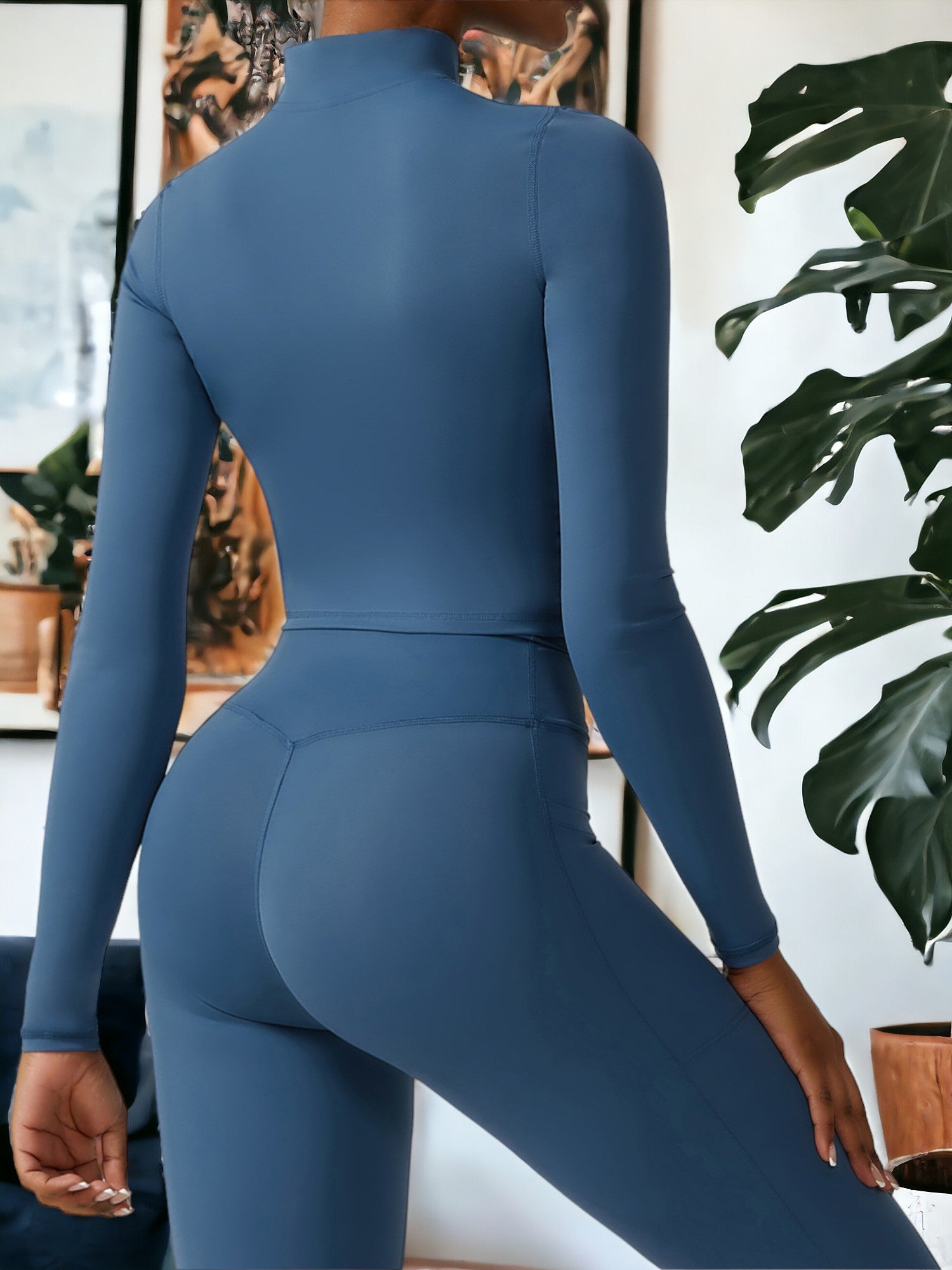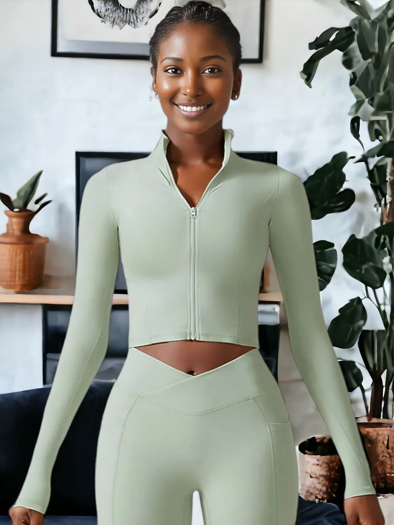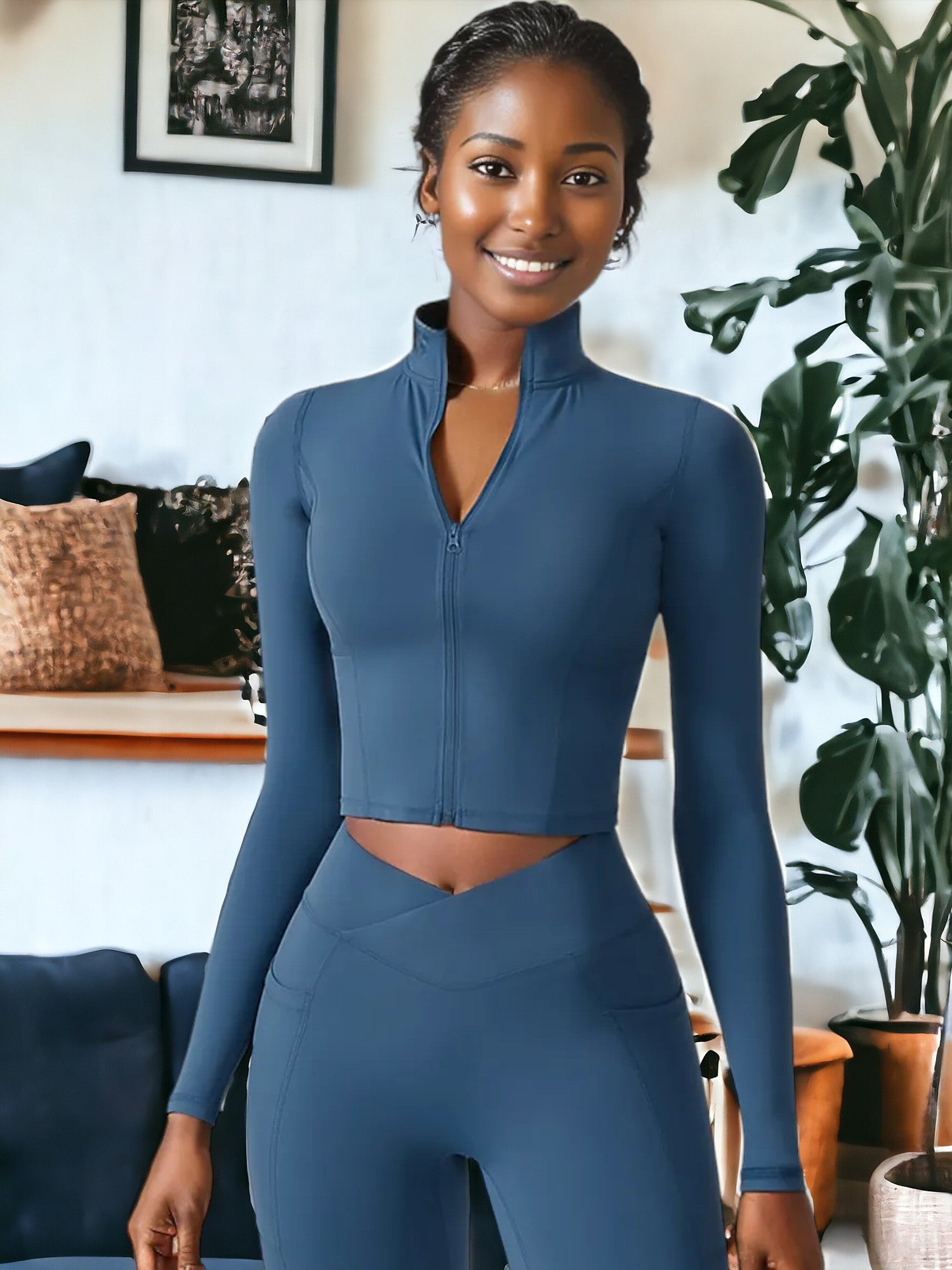 Chaqueta deportiva ajustada de secado rápido con cremallera frontal y mangas largas