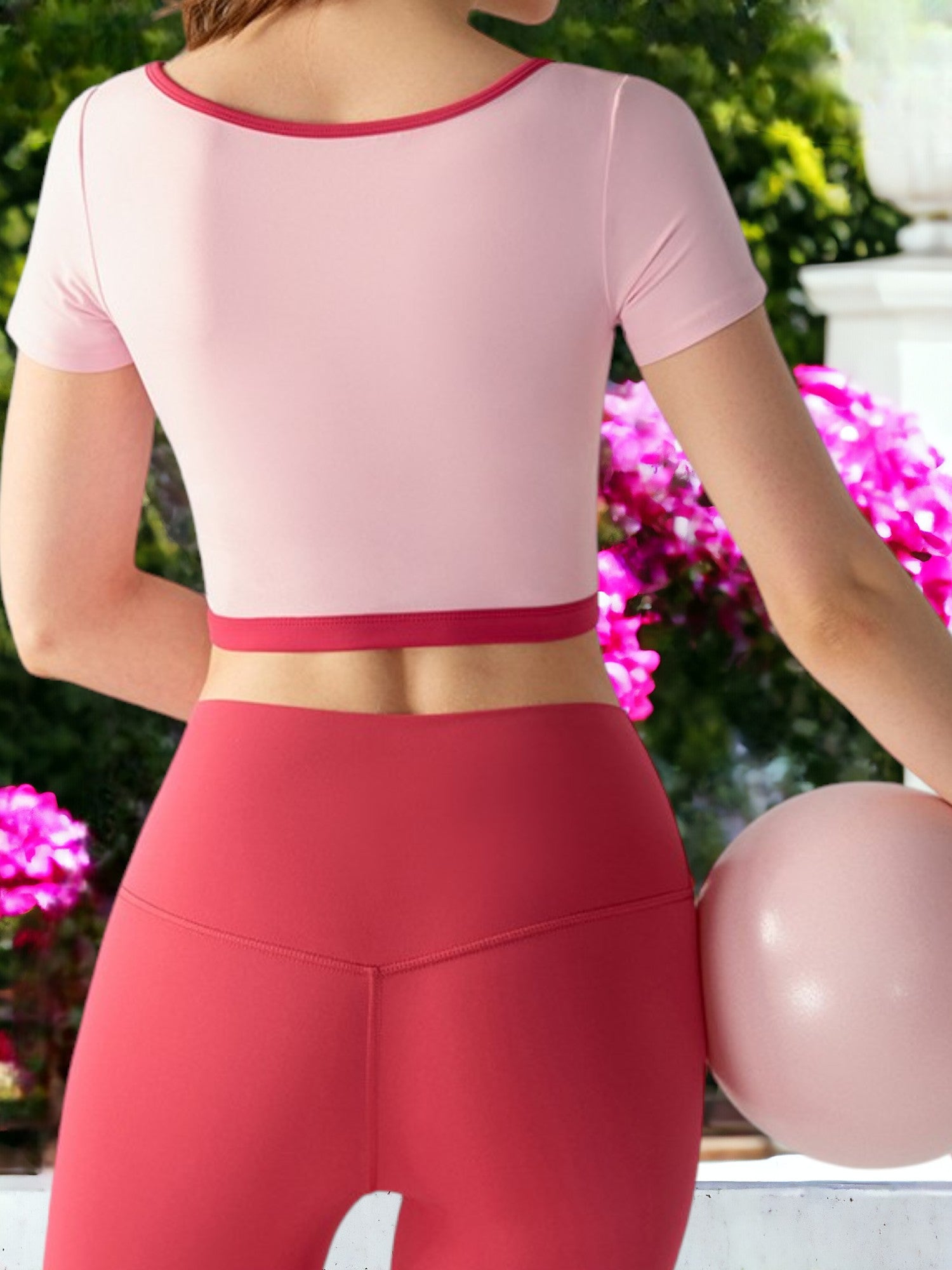Top de yoga de dos piezas con mangas cortas y protección para el pecho