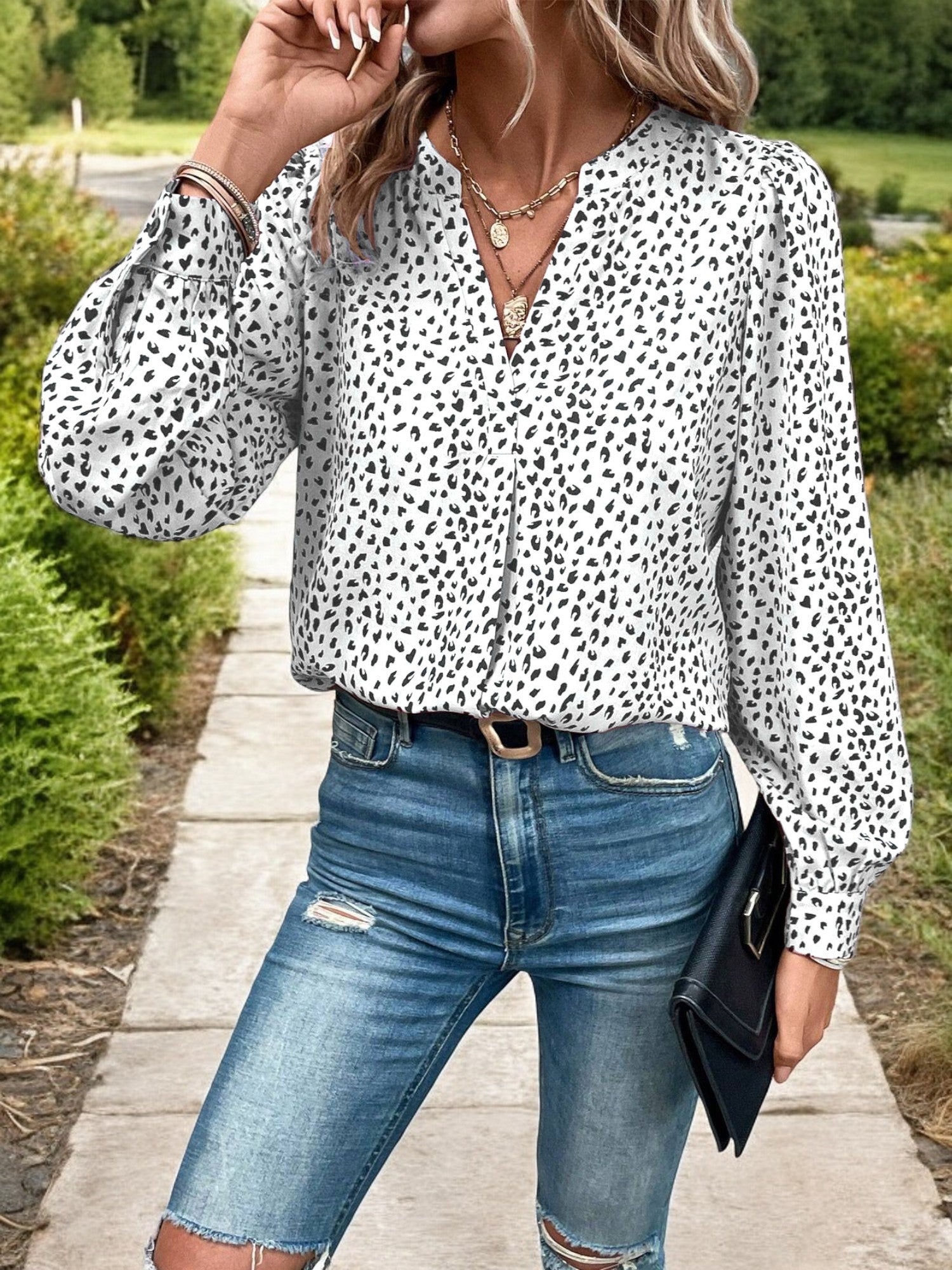 La blusa de cuello alto con estampado geométrico y manga larga para mujer de Anna-Kaci es una incorporación sofisticada y elegante a tu guardarropa. Esta blusa, confeccionada con un tejido ligero y transpirable, presenta un diseño de cuello alto y un llamativo estampado geométrico que añade un toque moderno a su silueta clásica. Las mangas largas proporcionan cobertura y comodidad, lo que la hace perfecta para los días más fríos. Ideal tanto para ocasiones informales como formales, esta blusa versátil combina sin esfuerzo con jeans, faldas o pantalones a medida para lograr un look elegante y refinado. Perfecta para una mamá en movimiento o para cualquier persona que ame la ropa moderna pero práctica, esta blusa de cuello alto con estampado geométrico es imprescindible para cualquier temporada.