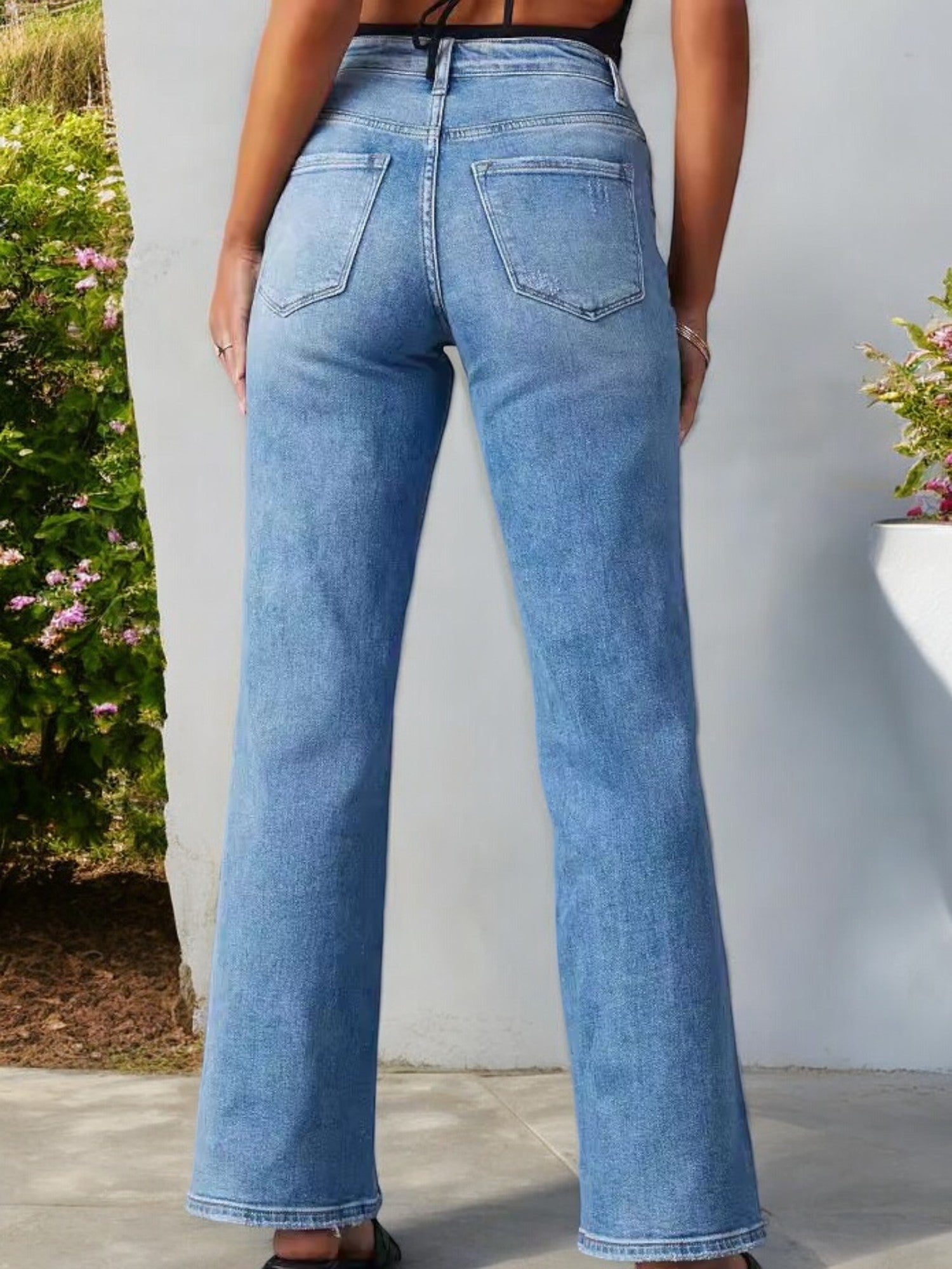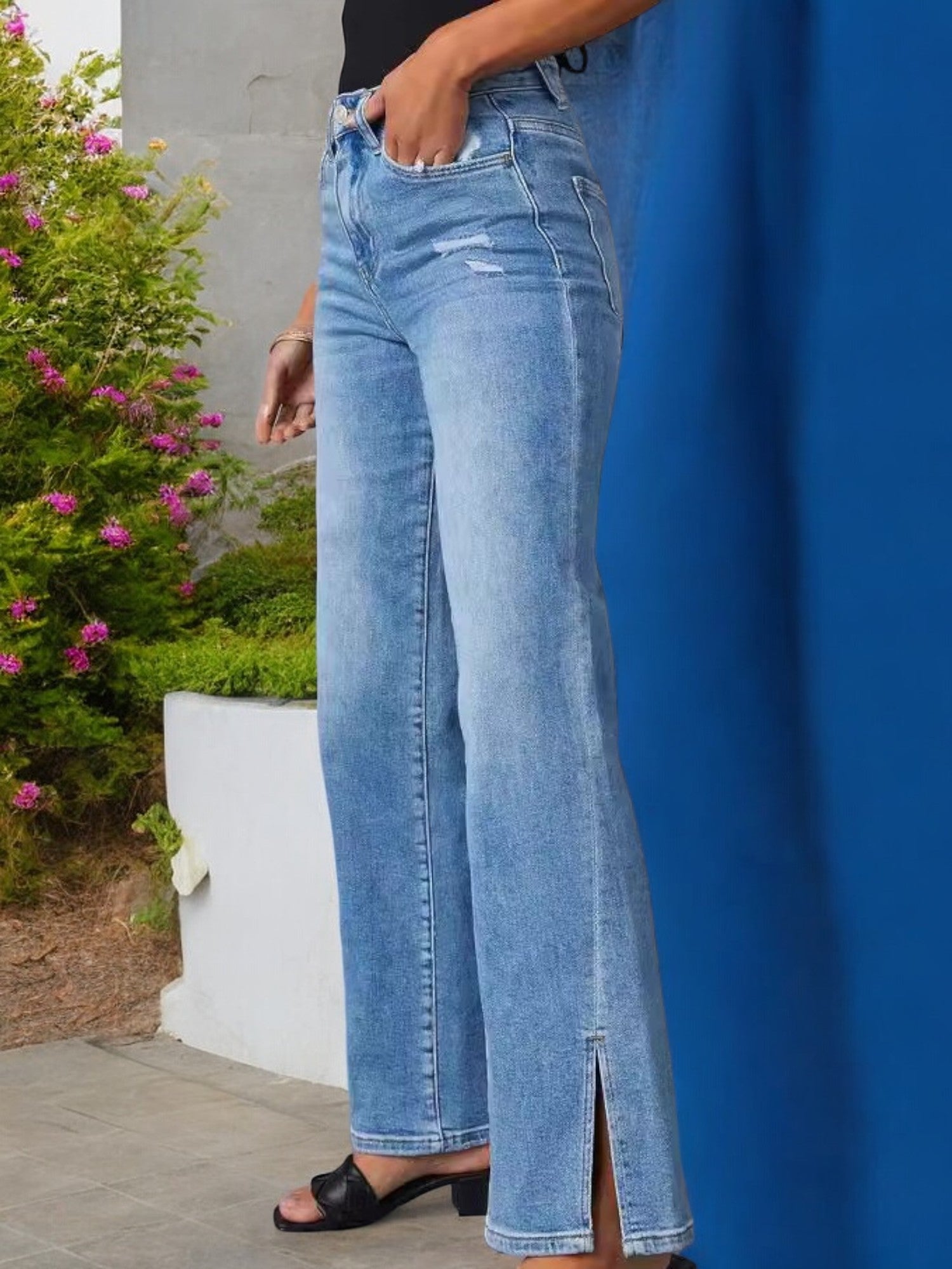 Vaqueros de tiro alto y pierna ancha para mujer de Anna-Kaci con detalle de abertura en el dobladillo delantero