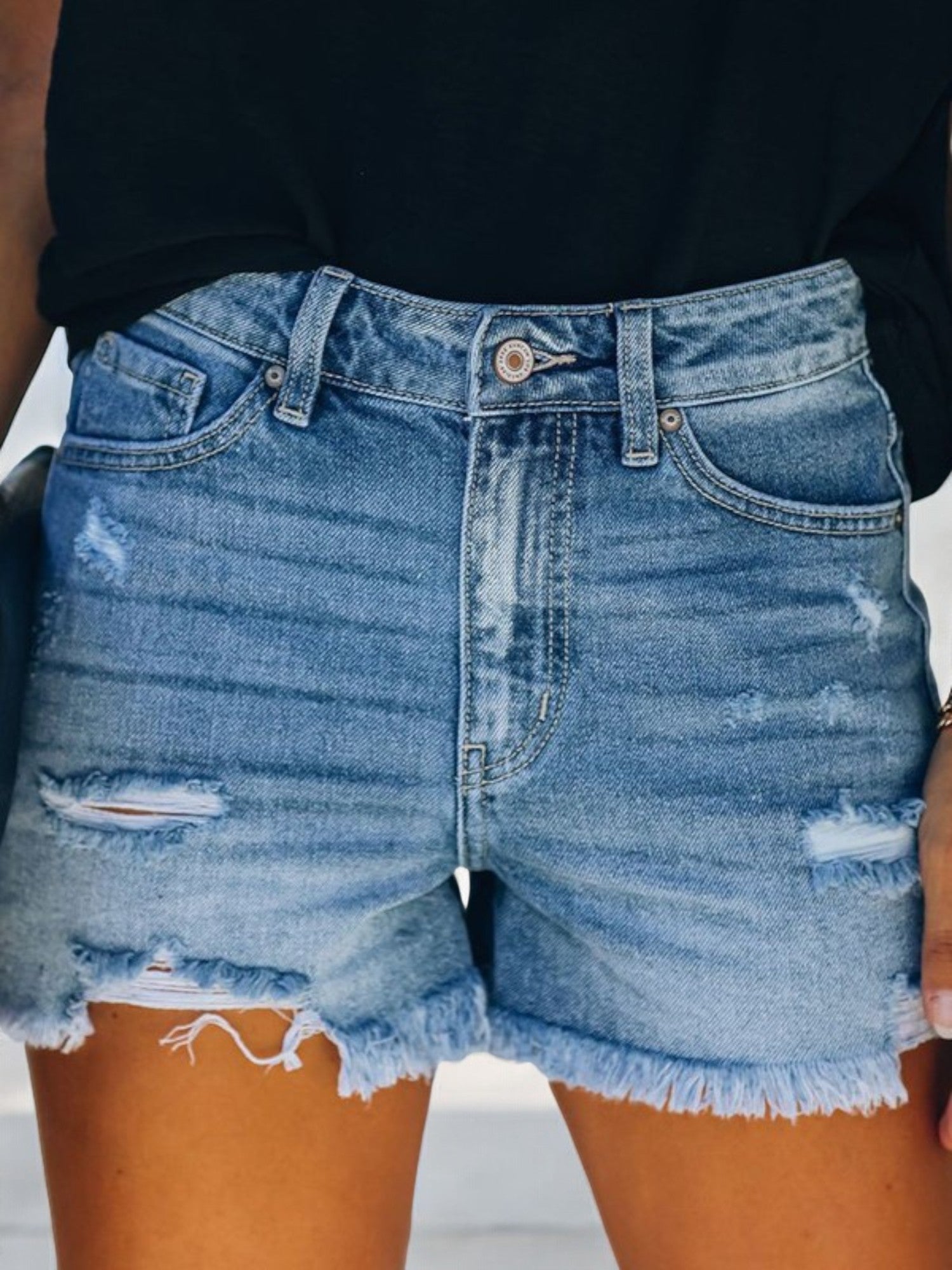 Pantalones cortos de mezclilla desgastados para mujer de Anna-Kaci con dobladillo deshilachado y diseño clásico de cinco bolsillos