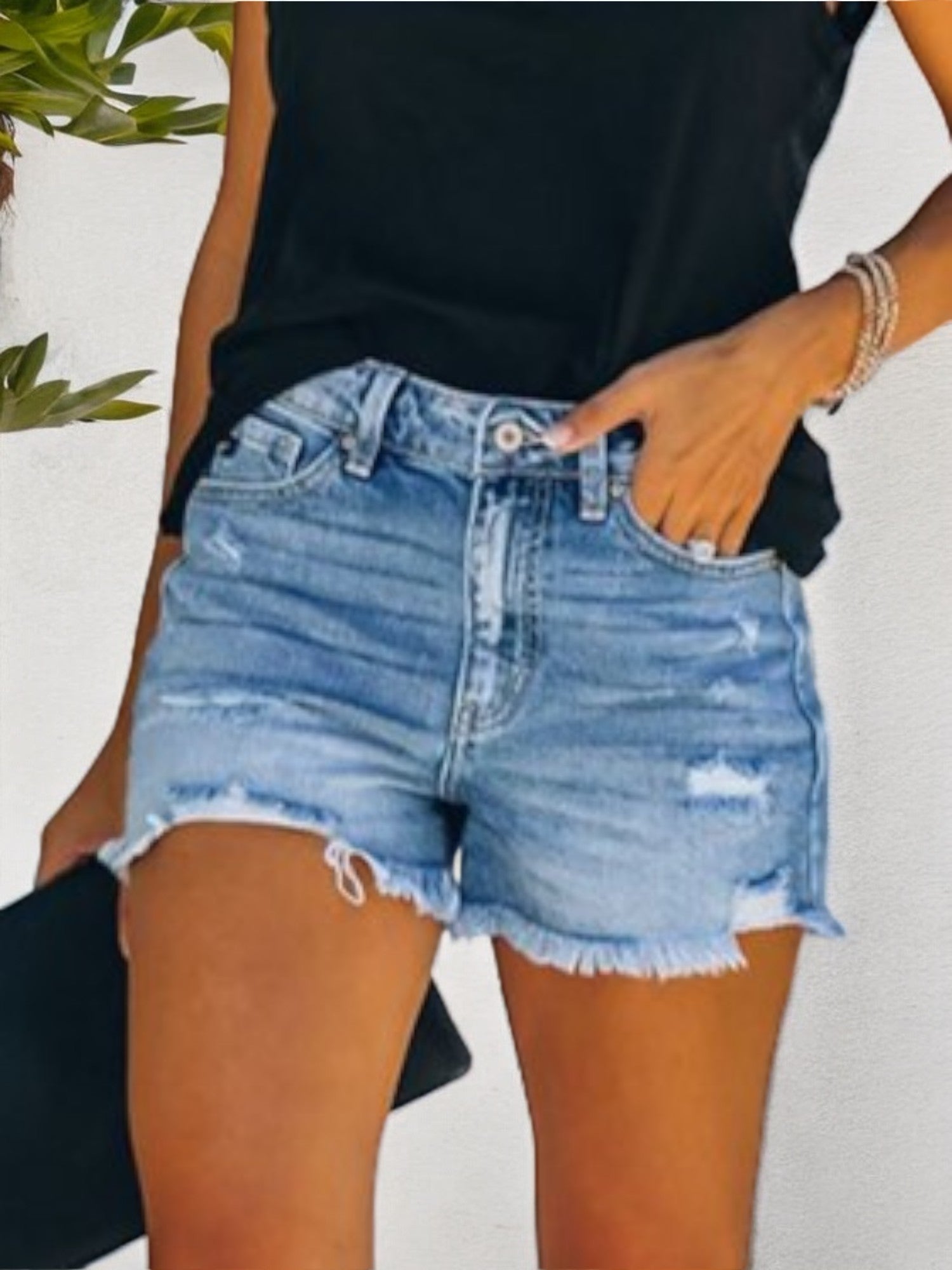 Los shorts de mezclilla desgastada para mujer Anna-Kaci con dobladillo deshilachado y diseño clásico de cinco bolsillos son una prenda imprescindible para tu guardarropa de verano. Estos shorts, confeccionados con mezclilla de alta calidad, presentan un elegante diseño desgastado y un dobladillo deshilachado moderno, lo que les da un aspecto elegante e informal. El diseño clásico de cinco bolsillos ofrece funcionalidad y estilo, mientras que el ajuste cómodo garantiza que puedas usarlos todo el día. Perfectos para combinar con tus camisetas, musculosas o blusas favoritas, estos shorts versátiles son ideales para todo, desde salidas a la playa hasta paseos casuales por la ciudad. Adopta un estilo sencillo y cómodo con estos shorts de mezclilla desgastados esenciales.