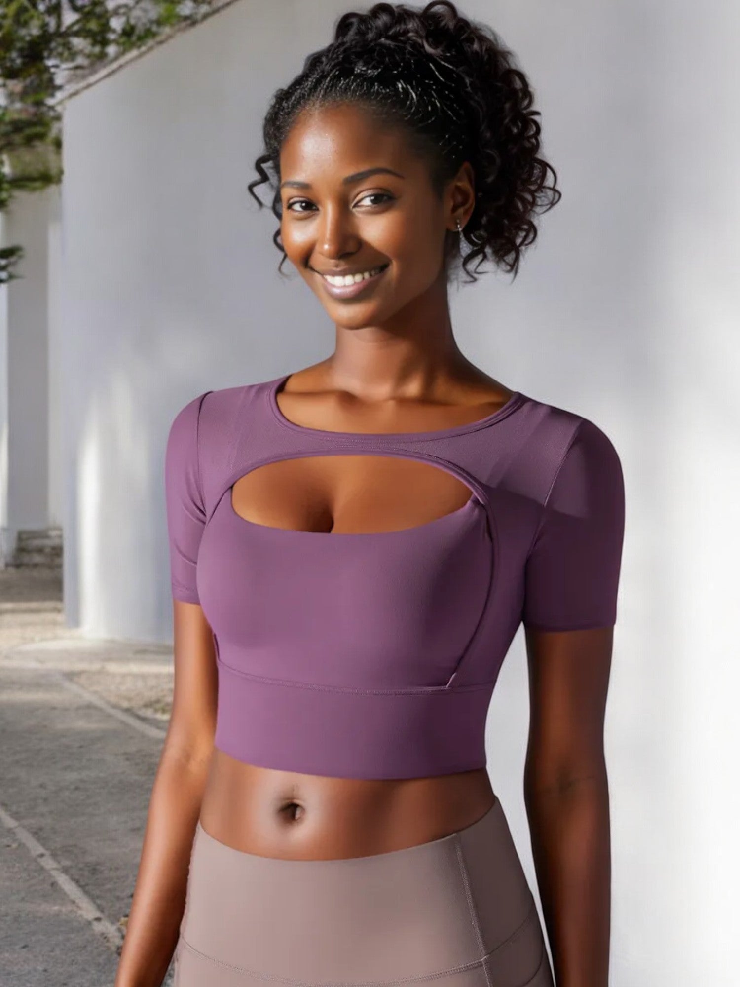 El top deportivo de manga corta con aberturas para mujer de Anna-Kaci con tejido transpirable está diseñado para brindar estilo y funcionalidad durante tus entrenamientos. Este top corto presenta un diseño exclusivo con aberturas que agrega un toque moderno al mismo tiempo que mejora la ventilación. El tejido transpirable garantiza que te mantengas fresca y cómoda, lo que lo hace ideal para entrenamientos de alta intensidad o sesiones de yoga. Las mangas cortas ofrecen un ajuste favorecedor y un movimiento sin restricciones, perfecto para cualquier estilo de vida activo. Combina este elegante top corto con leggings o pantalones cortos de cintura alta para lograr un look deportivo completo que se adapte perfectamente al gimnasio o a las salidas informales.